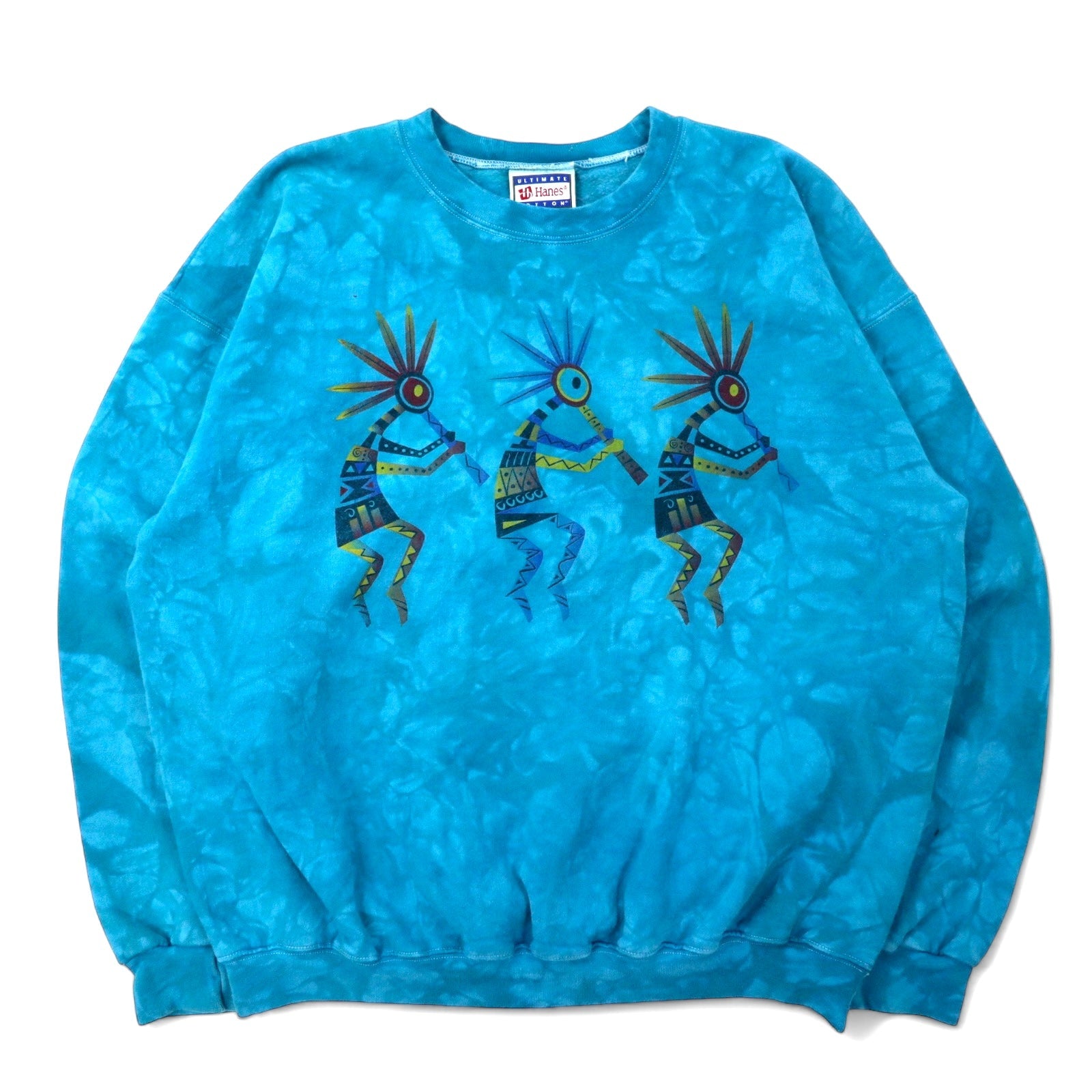 Hanes 90年代 インディアン プリント スウェット L ブルー タイダイ コットン ココペリ