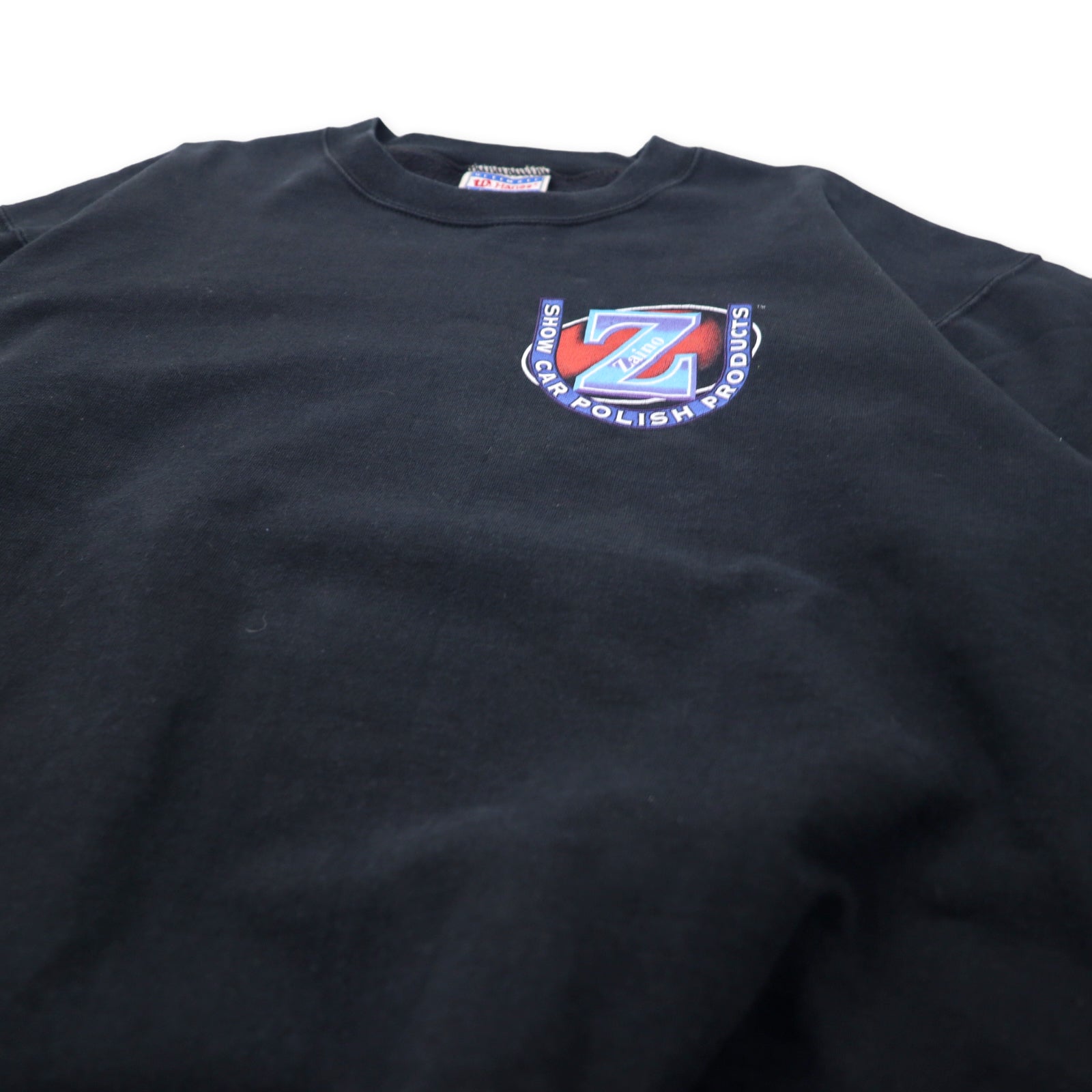 Hanes 90年代 プリントスウェット M ブラック コットン 裏起毛 Zaino バックプリント メキシコ製