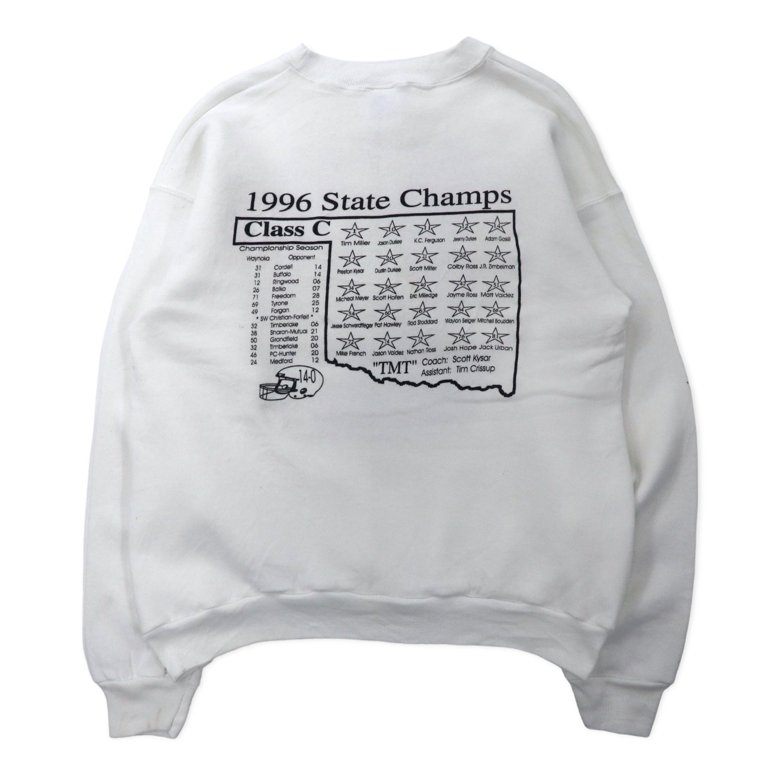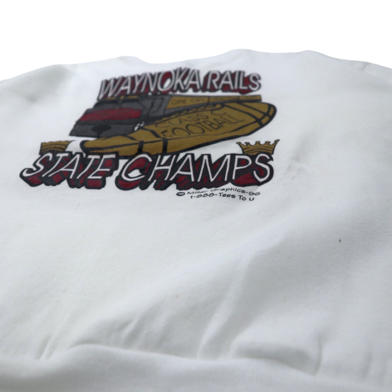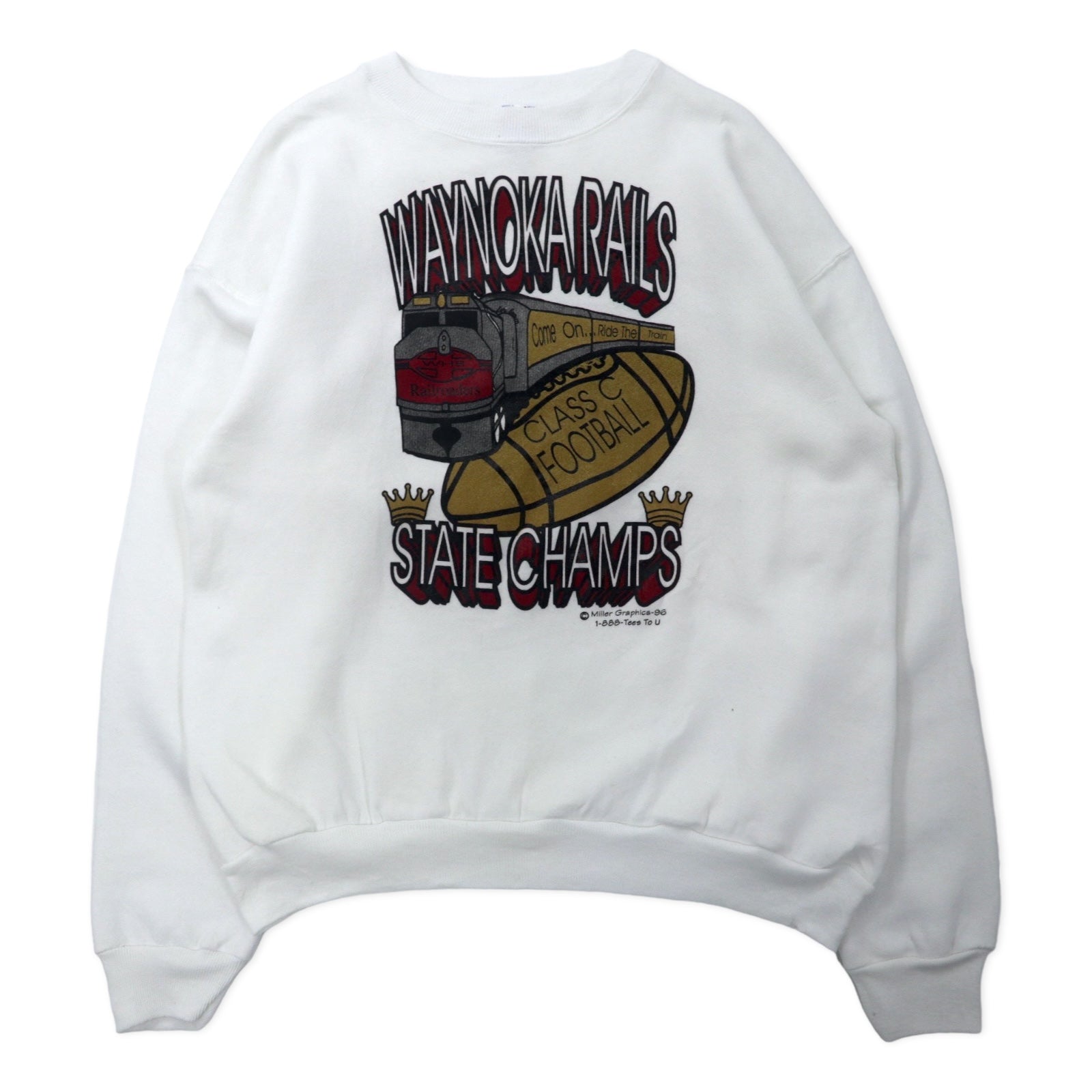 Hanes USA製 90年代 ACTIVE WEAR フットボール プリント スウェット L ホワイト コットン 裏起毛 両面プリント WAYNOKA RAILS