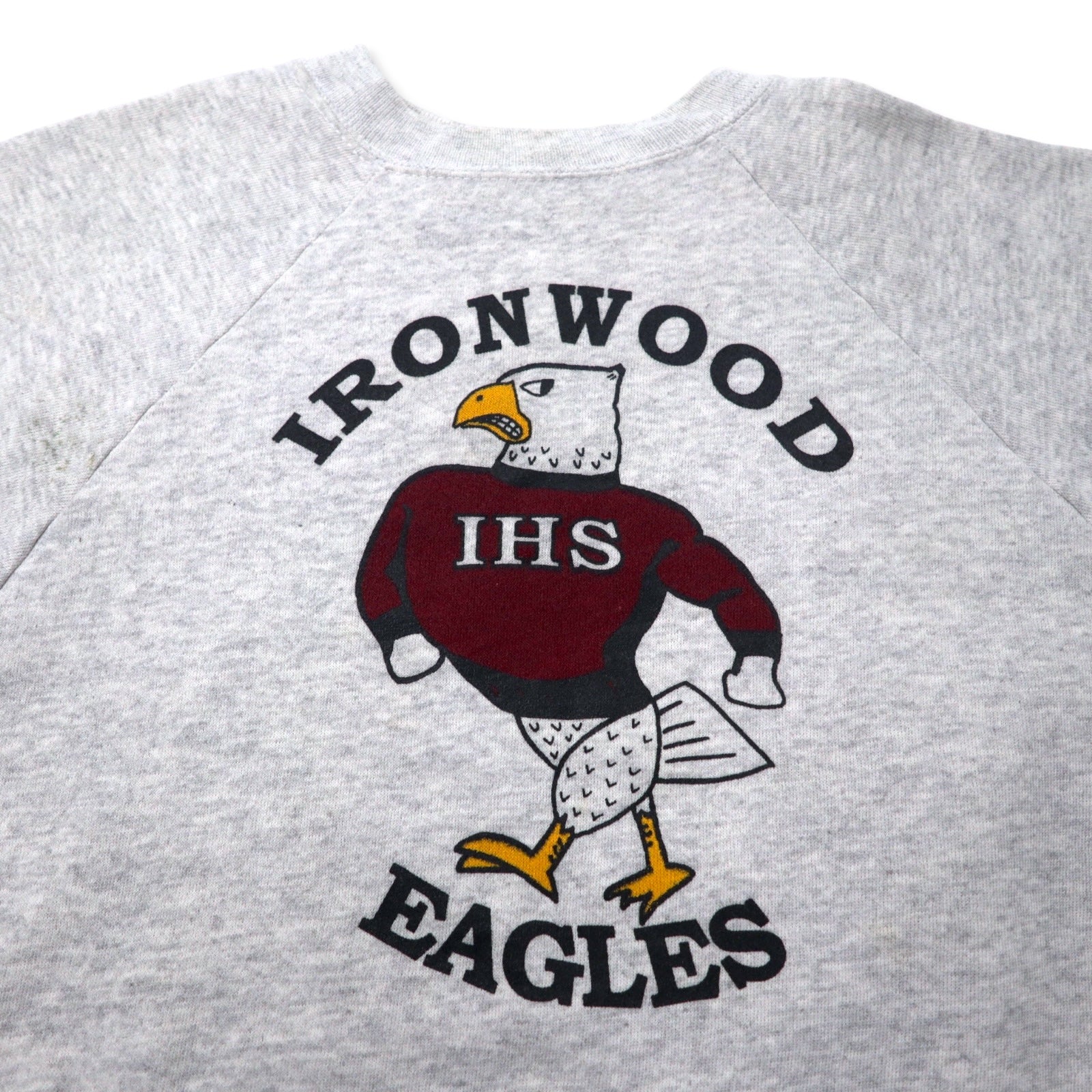Hanes USA製 90年代 ACTIVEWEAR フットボール プリント スウェット XL グレー コットン IRON WOOD EAGLES