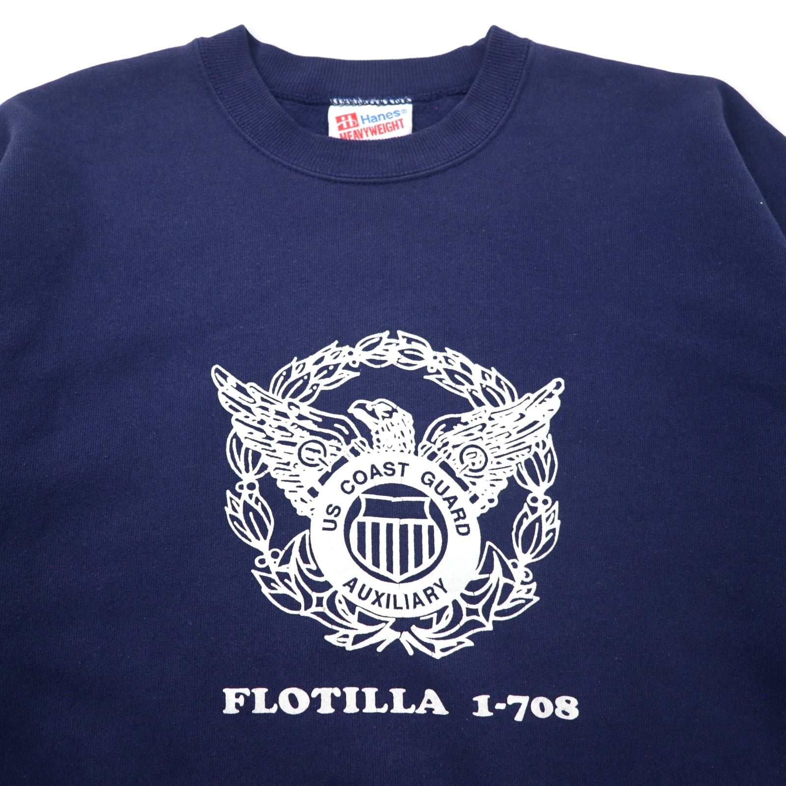 Hanes USA製 90年代 USCG プリント スウェット L ネイビー コットン 裏起毛 HEAVYWEIGHT ビッグサイズ