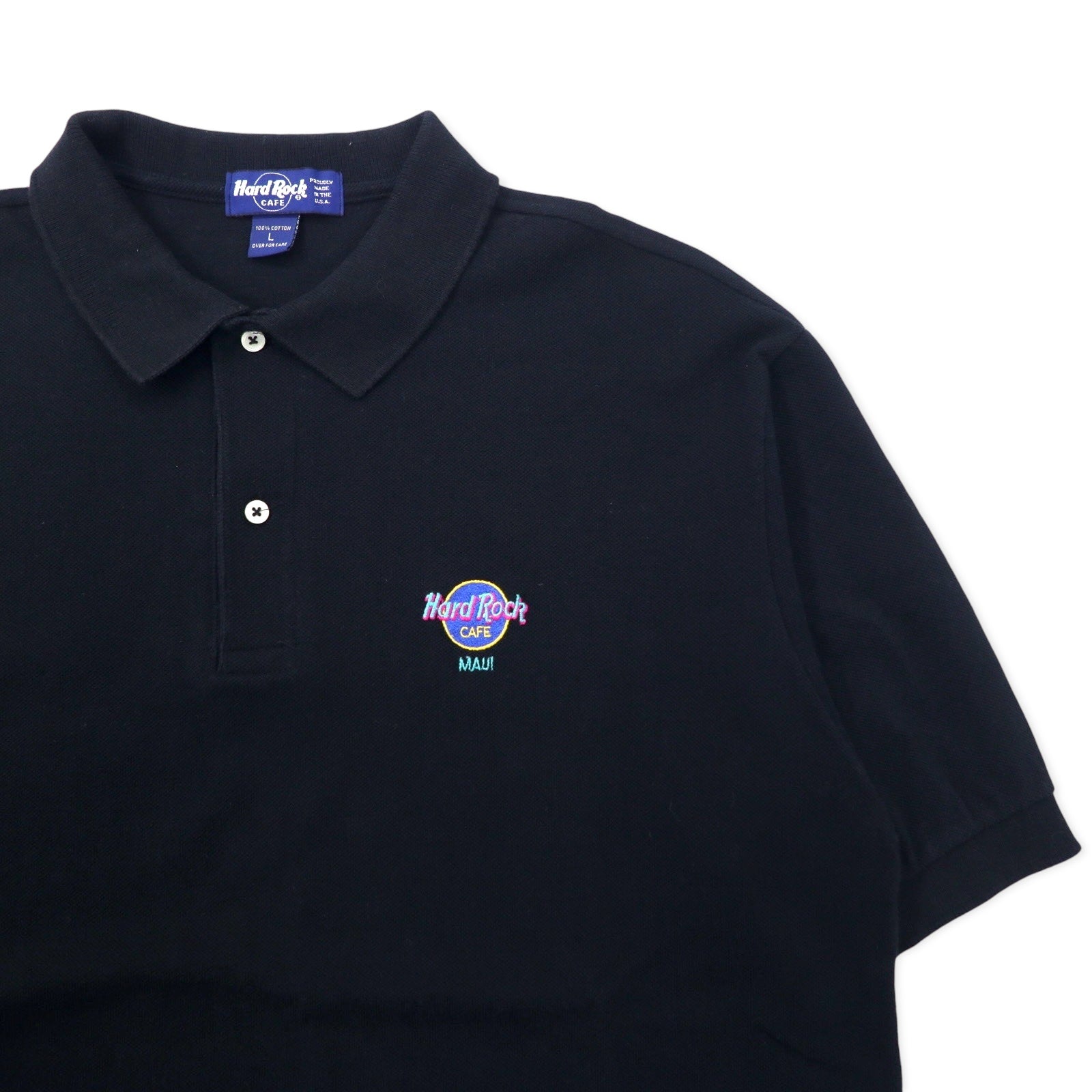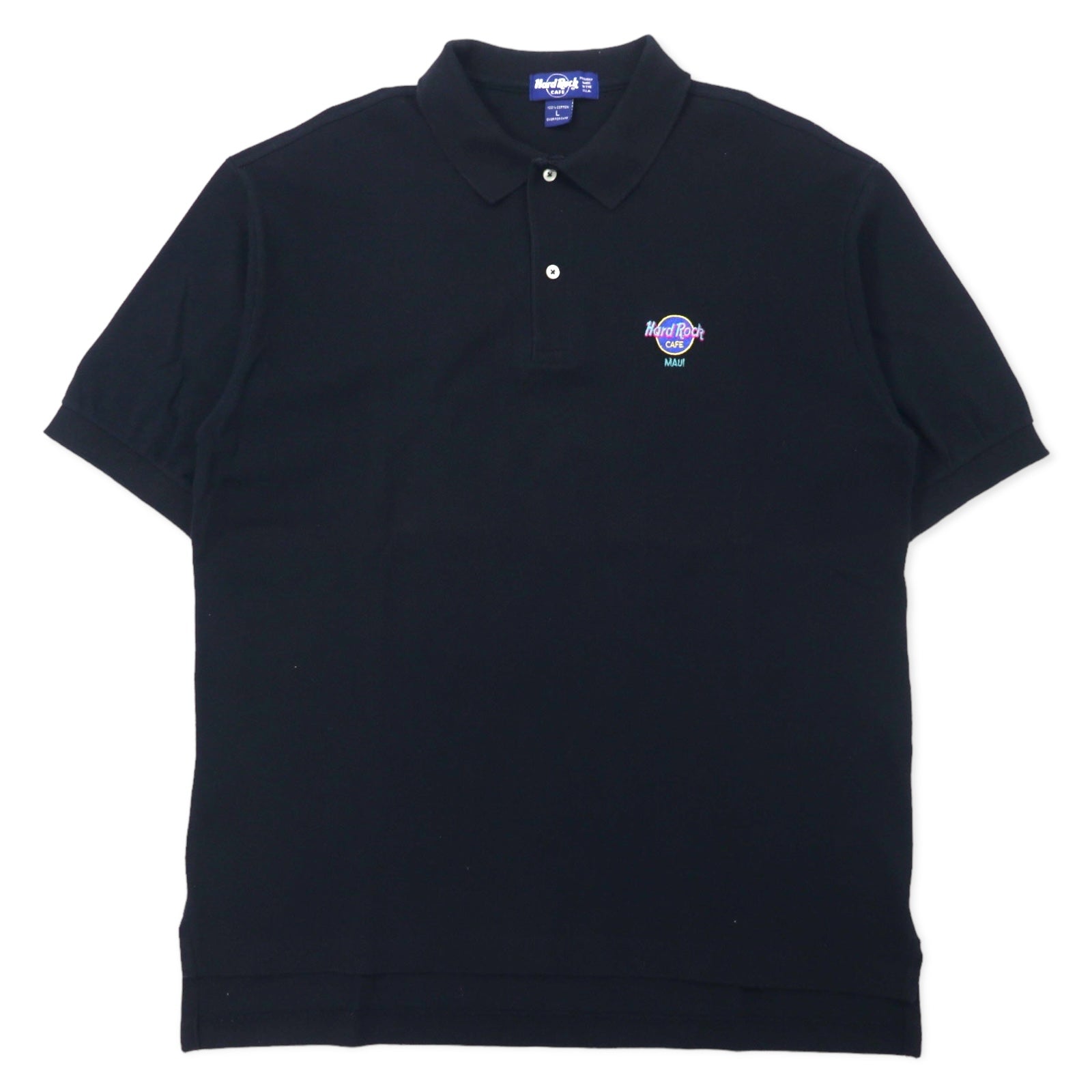 HARD ROCK CAFE USA製 ポロシャツ L ブラック コットン ワンポイントロゴ刺繍 ビッグサイズ