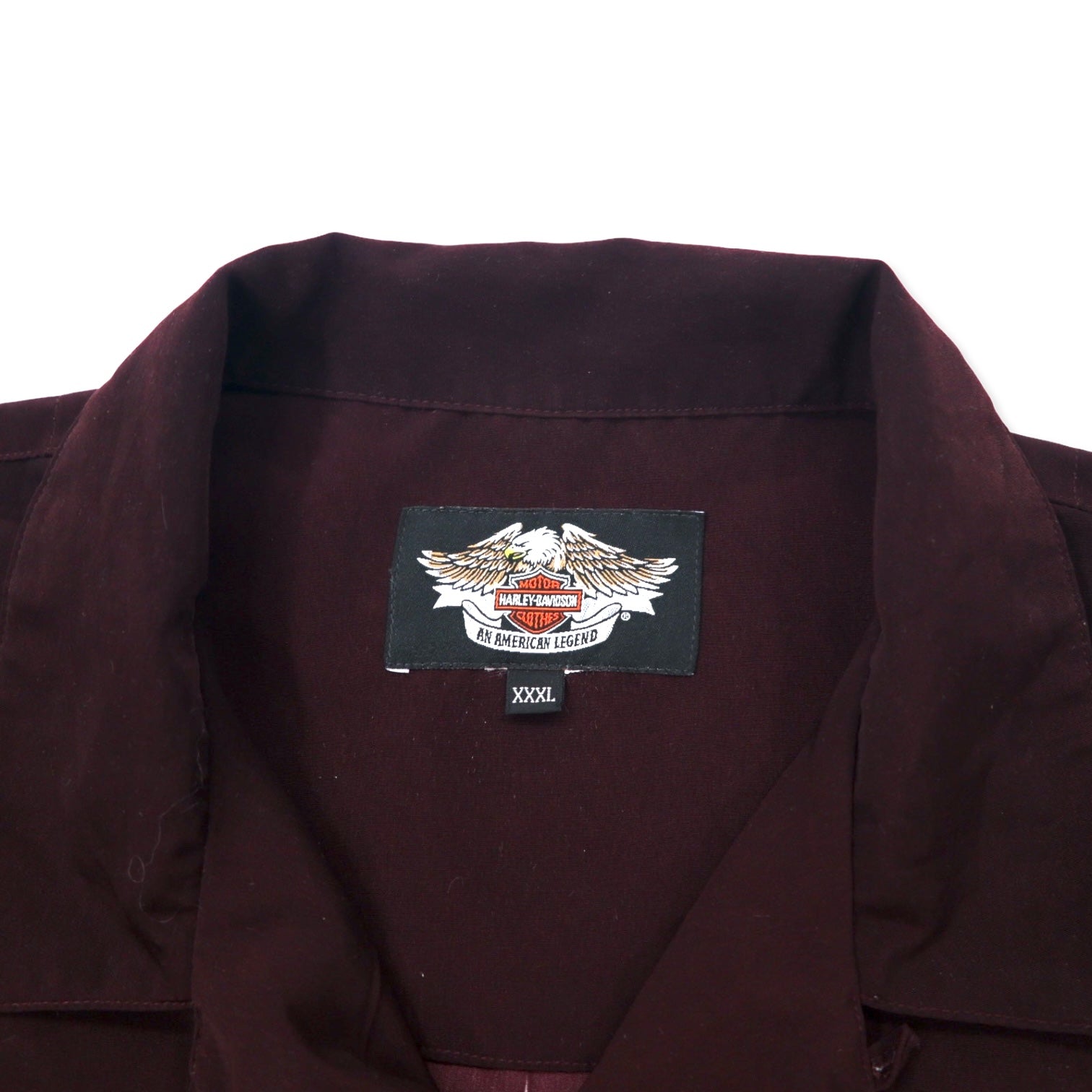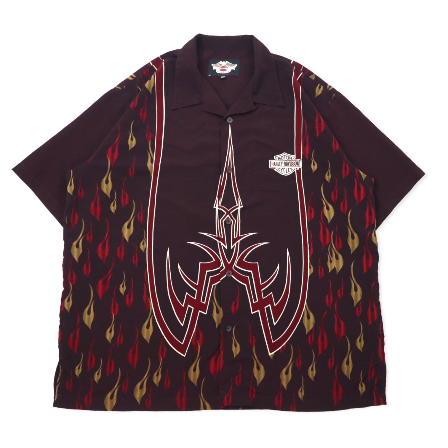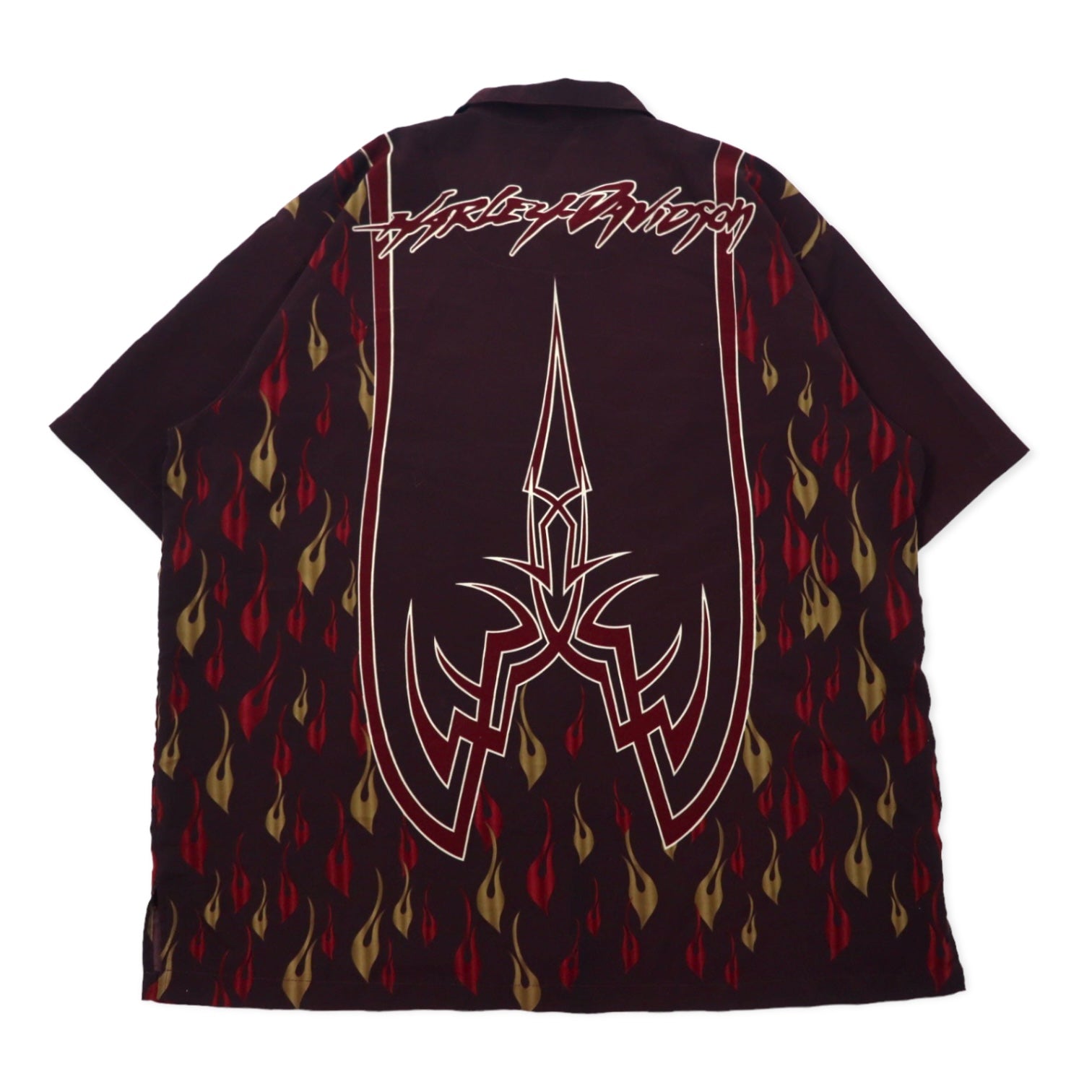 HARLEY DAVIDSON オープンカラー アロハシャツ 半袖 ポリシャツ XXXL ボルドー 総柄 ポリエステル ファイヤーパターン ワンポイントロゴ刺繍 ビッグサイズ
