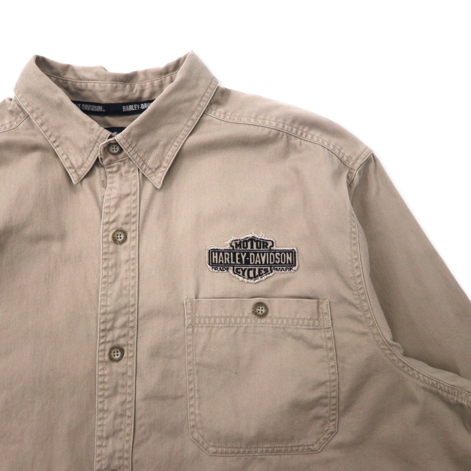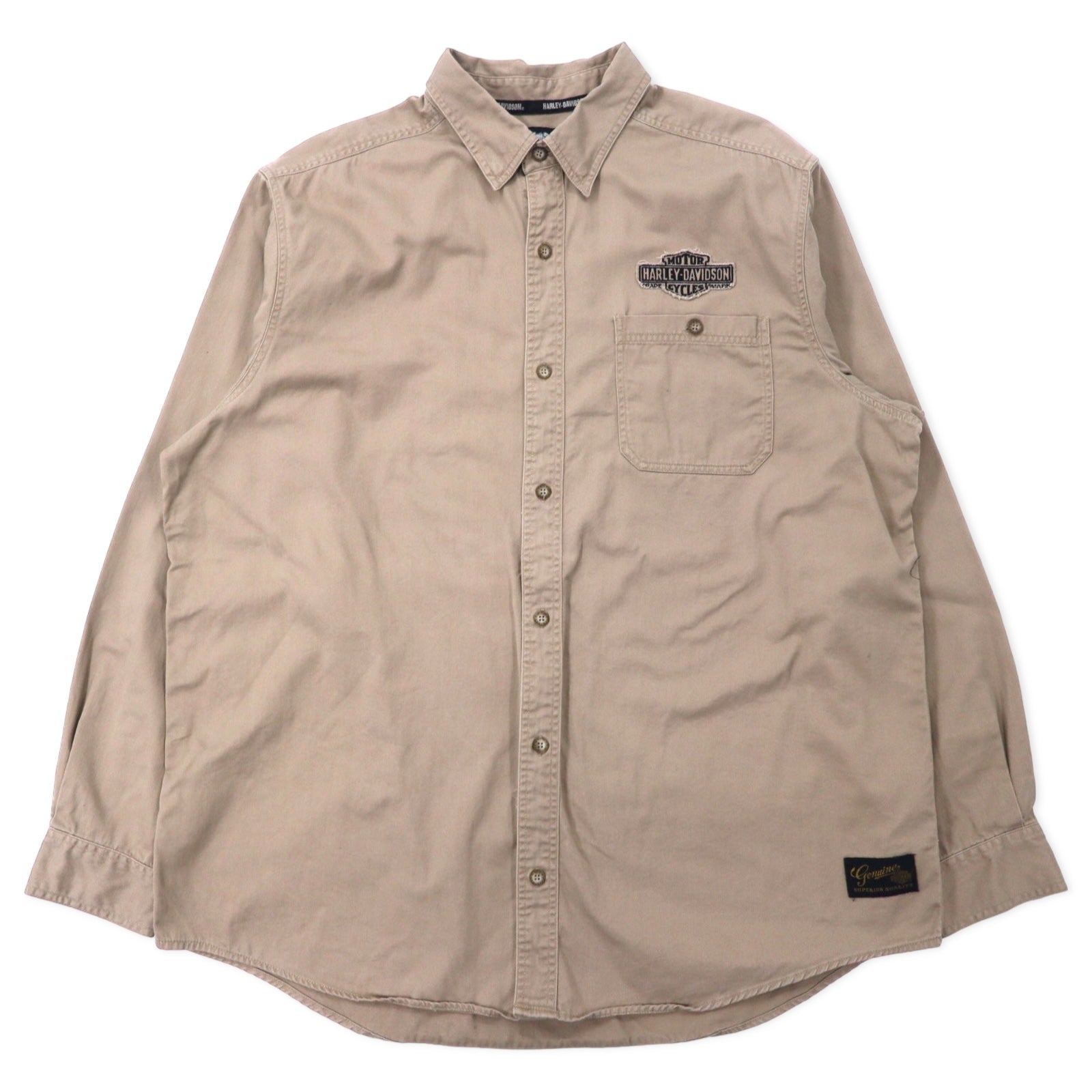 HARLEY DAVIDSON バックロゴ刺繍 コットンツイル シャツ 2XL ベージュ ビッグサイズ
