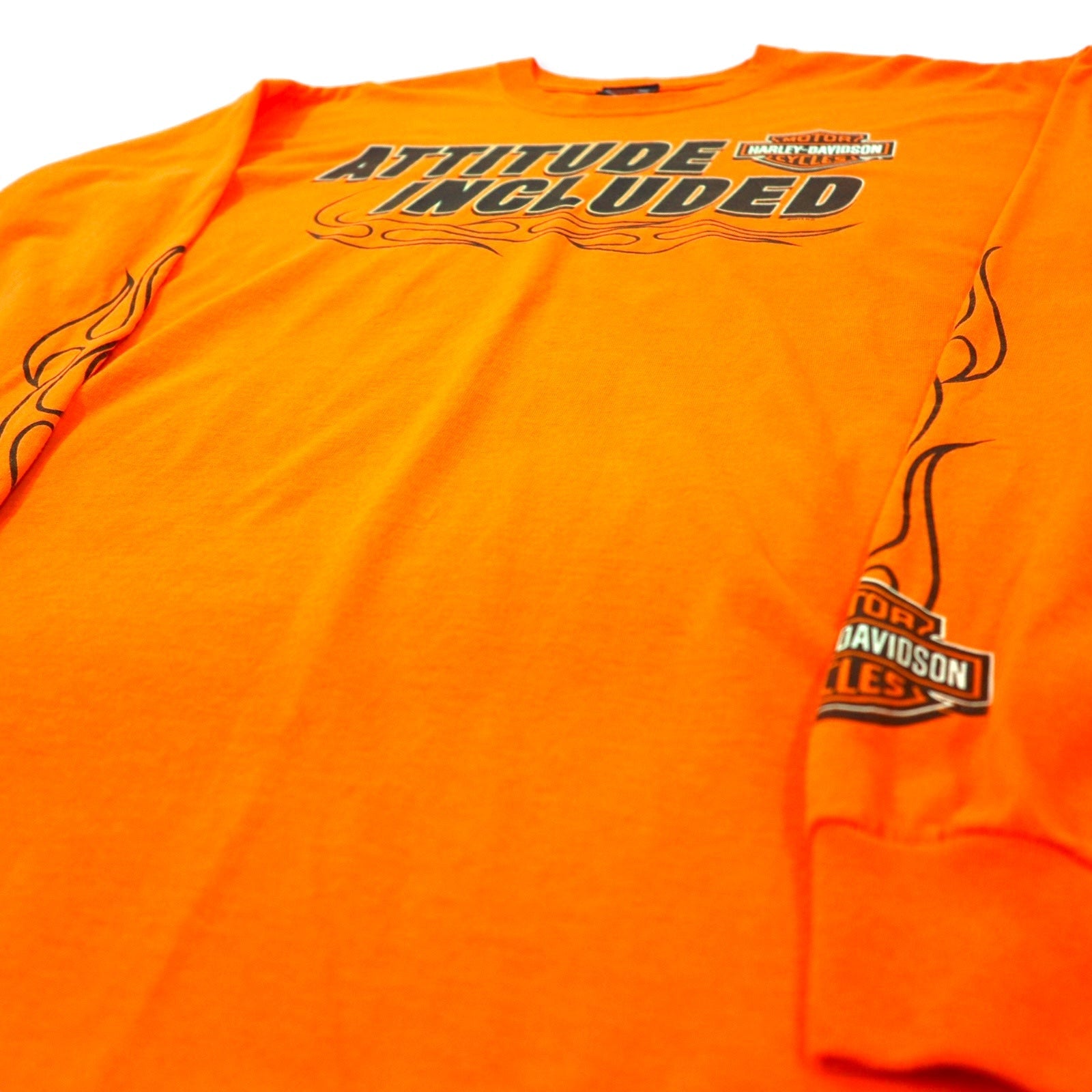 HARLEY DAVIDSON ファイヤーパターン ロングスリーブ Tシャツ ロンT XL オレンジ コットン ATTITUDE INCLUDED ビッグサイズ