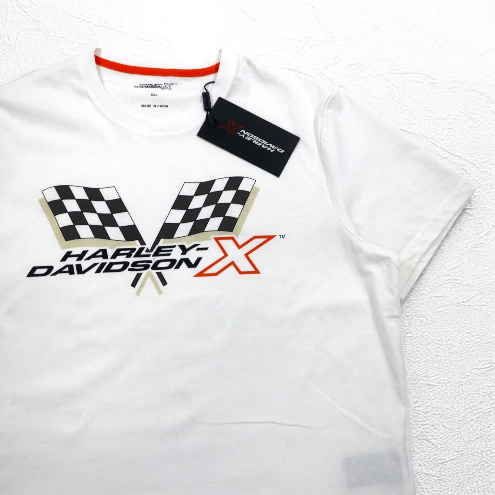 HARLEY DAVIDSON フラッグチェック プリント Tシャツ 2XL ホワイト コットン 未使用品
