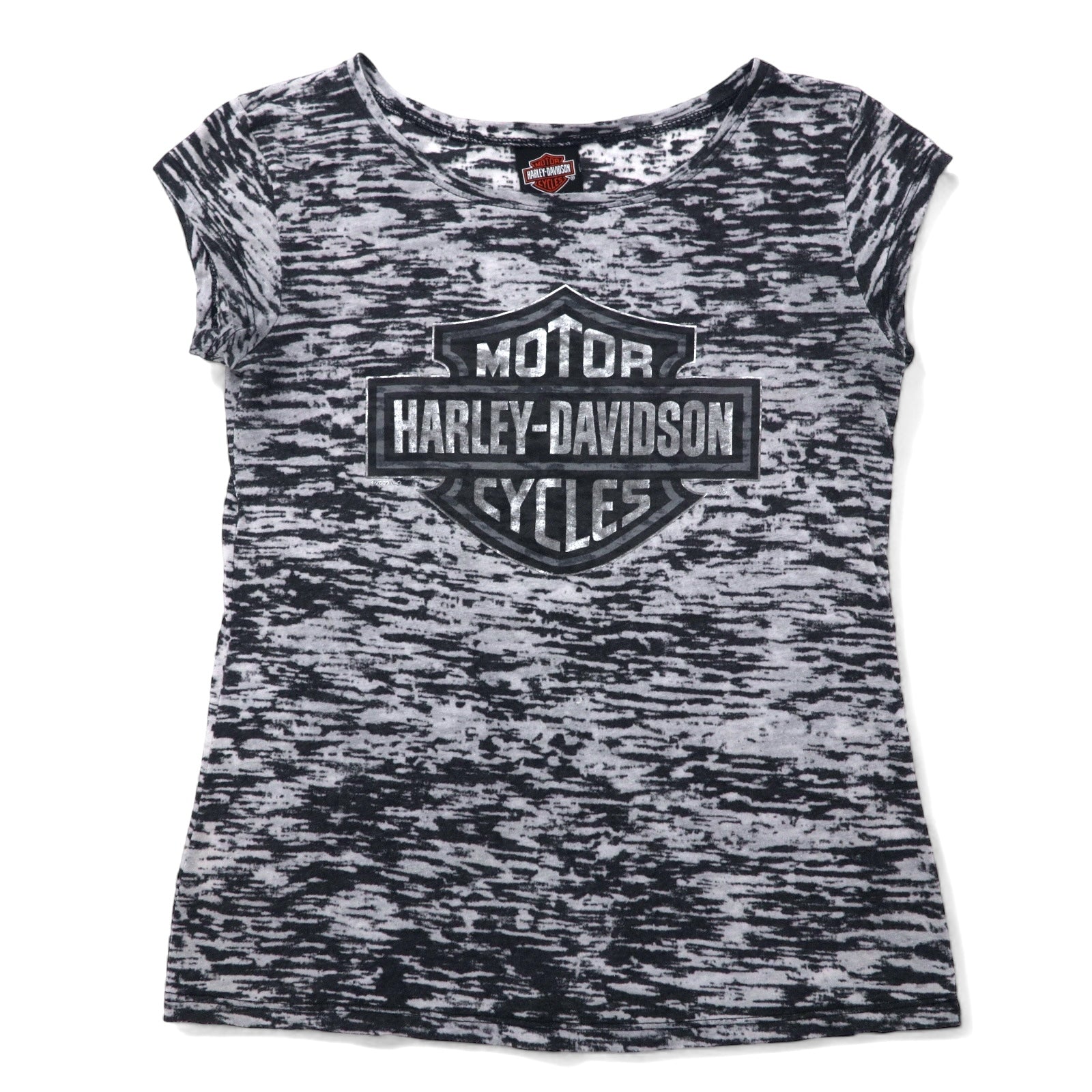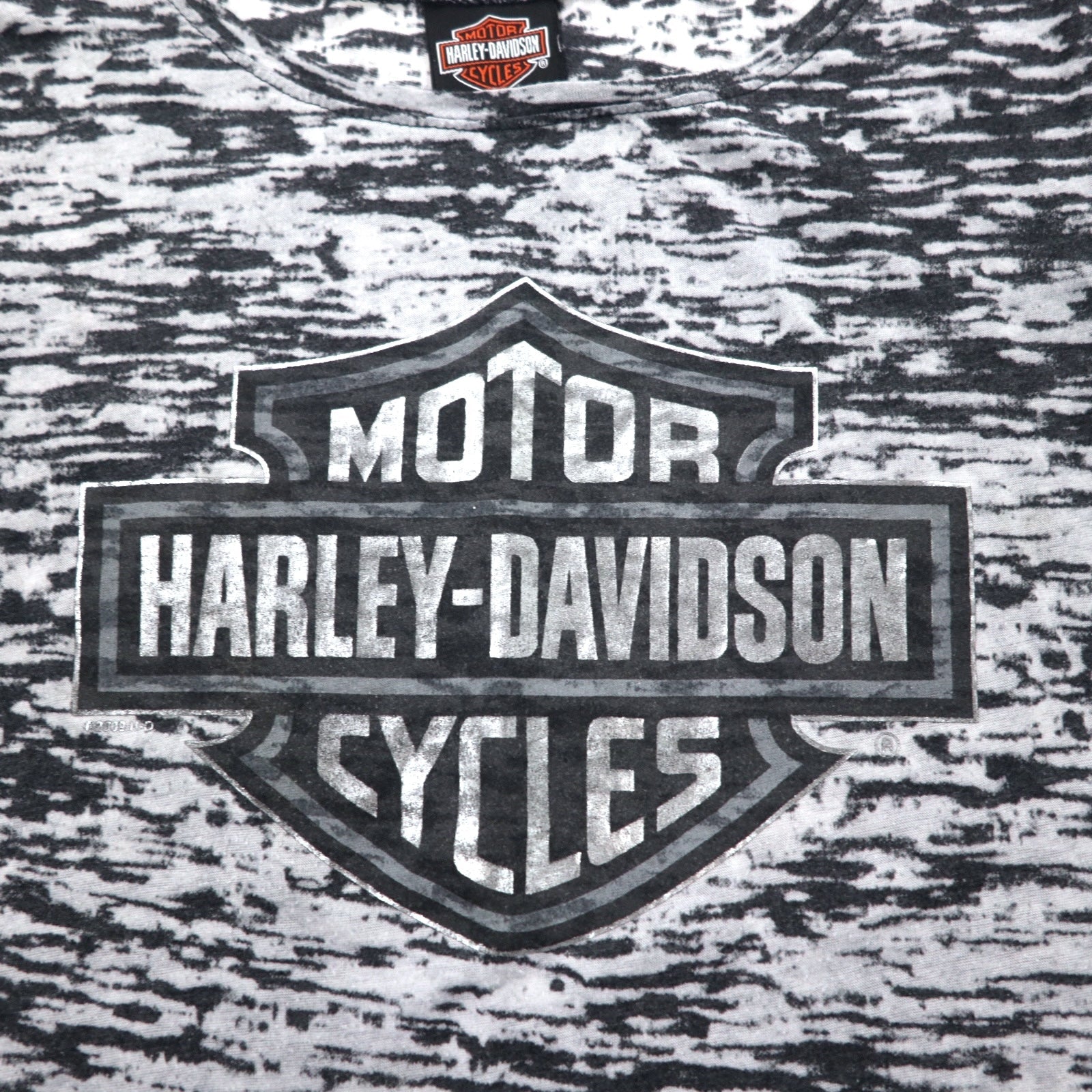 HARLEY DAVIDSON ロゴプリント フレンチスリーブ Tシャツ L グレー コットン 総柄