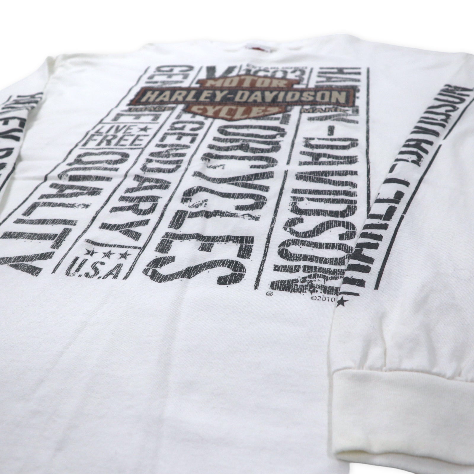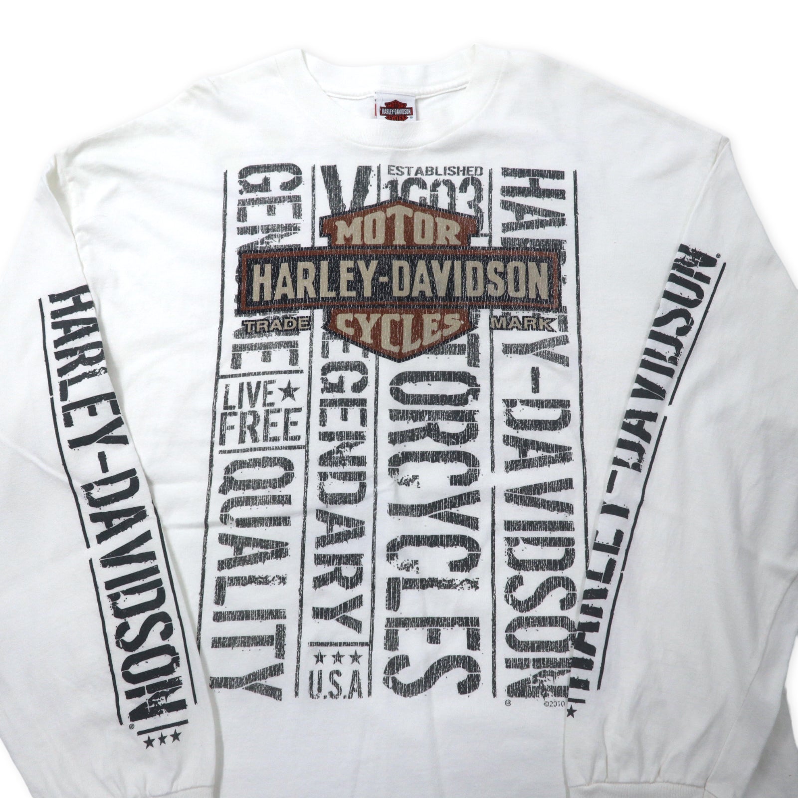 HARLEY DAVIDSON ロゴプリント ロングスリーブTシャツ ロンT 2XL ホワイト コットン 両面プリント 袖ロゴ BEAUMONT, TEXAS ビッグサイズ メキシコ製