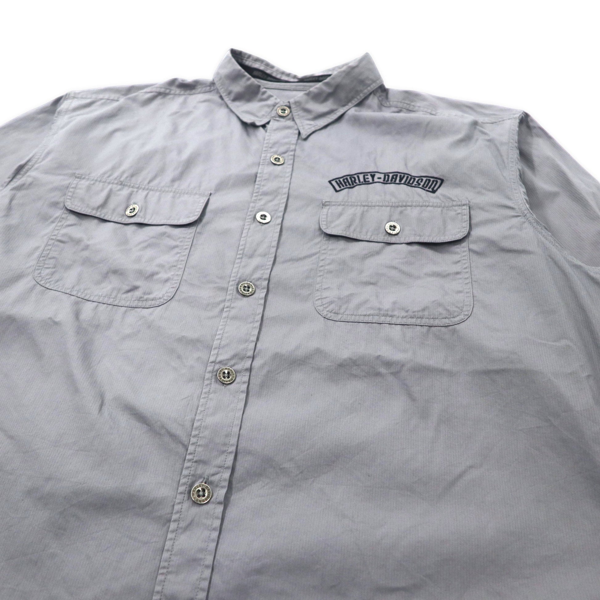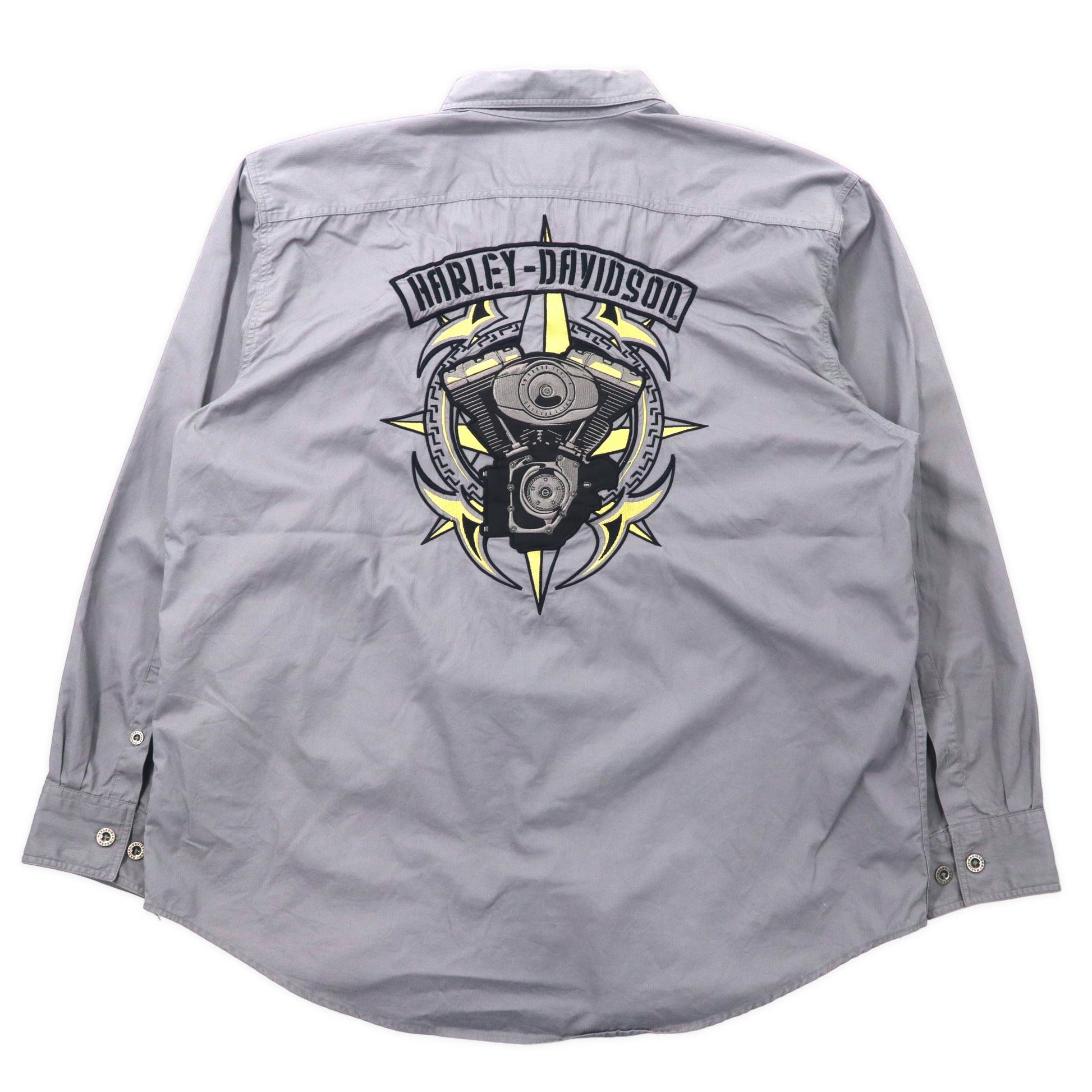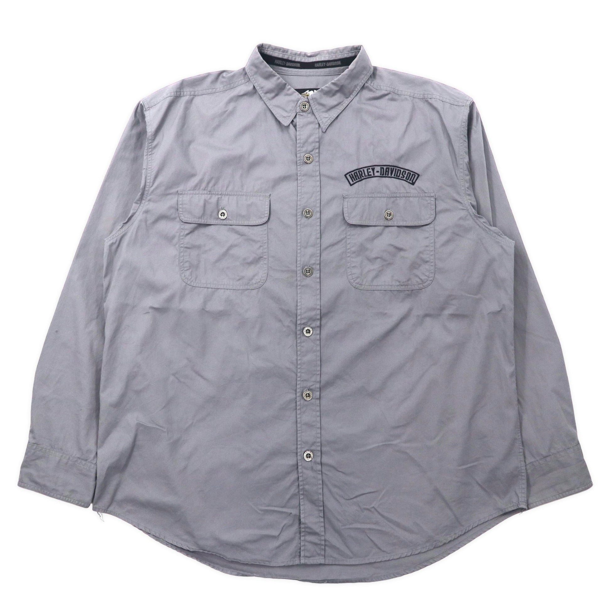HARLEY DAVIDSON ワークシャツ XL グレー コットン バックロゴ刺繍 ビッグサイズ