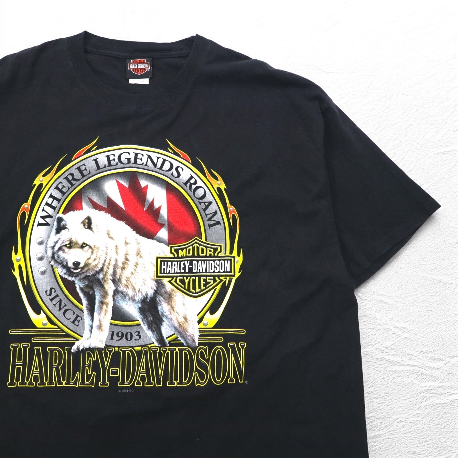 HARLEY DAVIDSON 両面プリント Tシャツ 2XL ブラック コットン ウルフ オオカミ アニマル ビッグサイズ