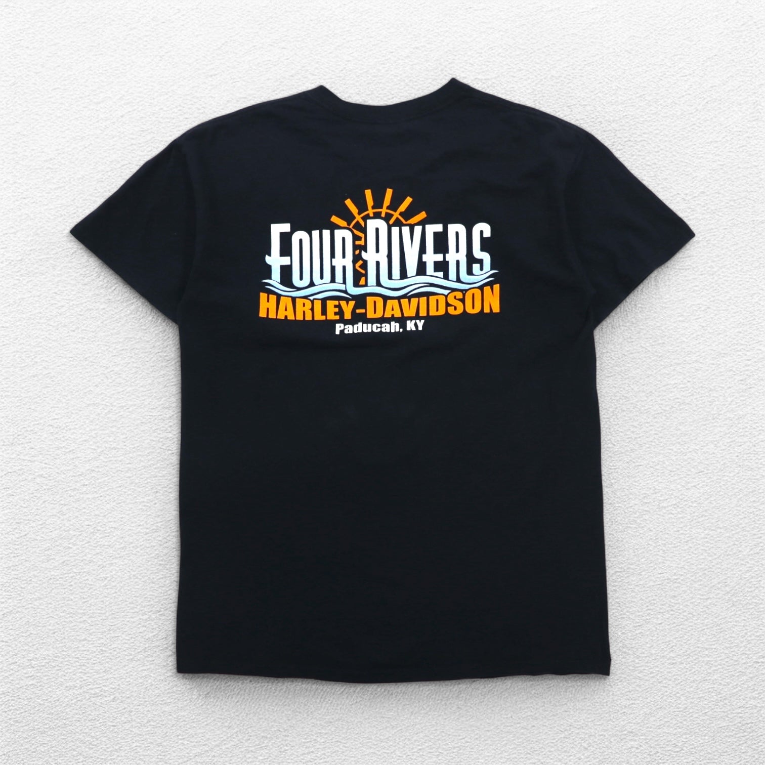 HARLEY DAVIDSON 両面プリント Tシャツ L ブラック コットン FOUR RIVERS