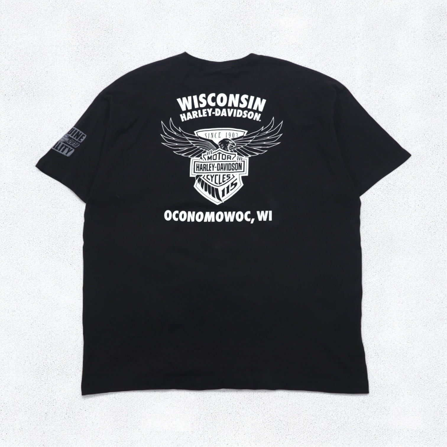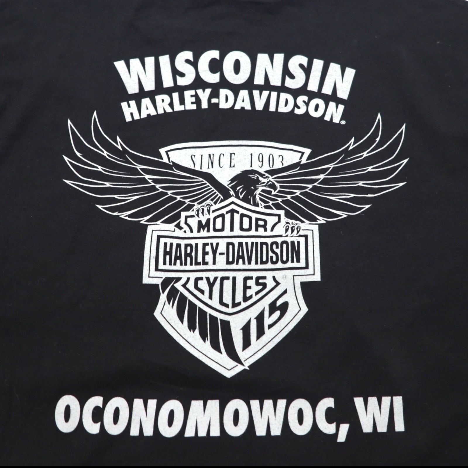 HARLEY DAVIDSON 両面プリント Vネック Tシャツ 2XL ブラック バイク WISCONSIN