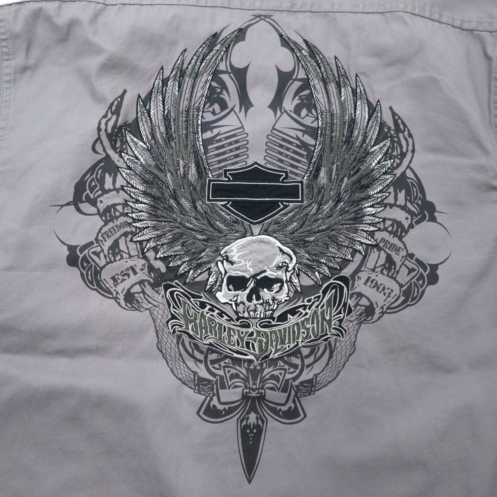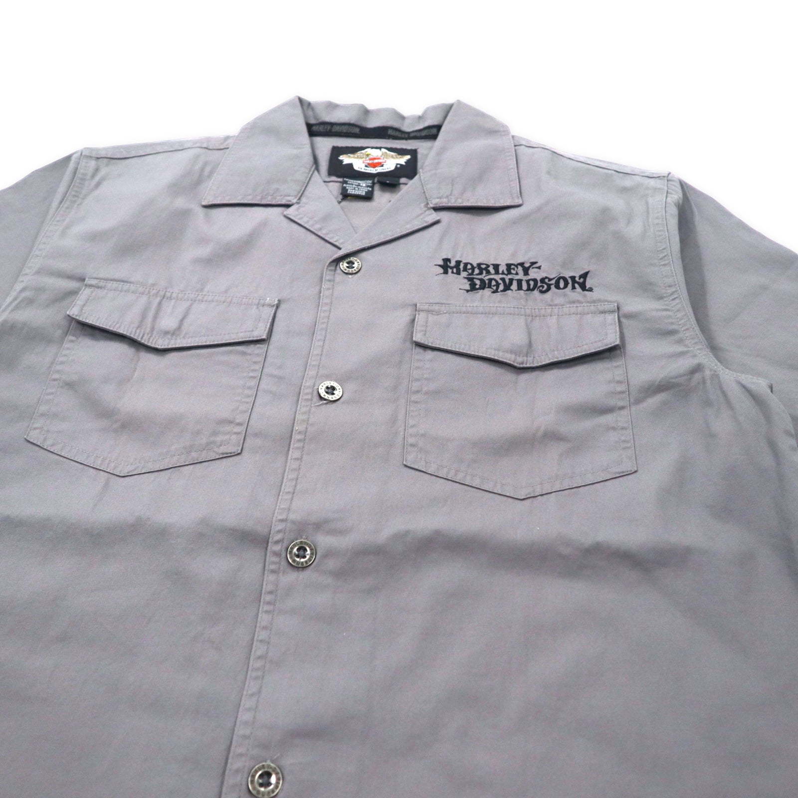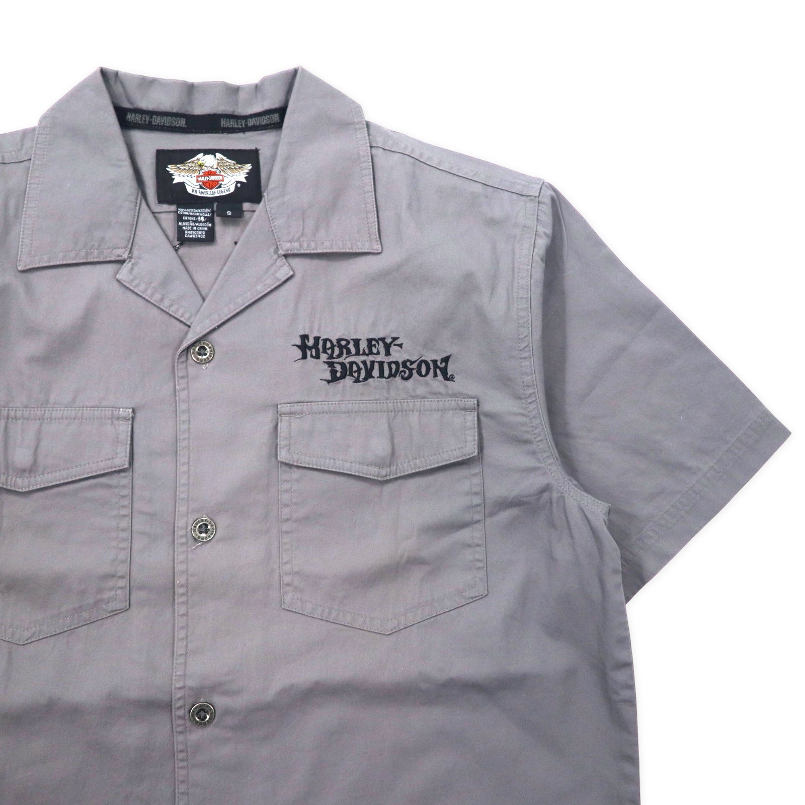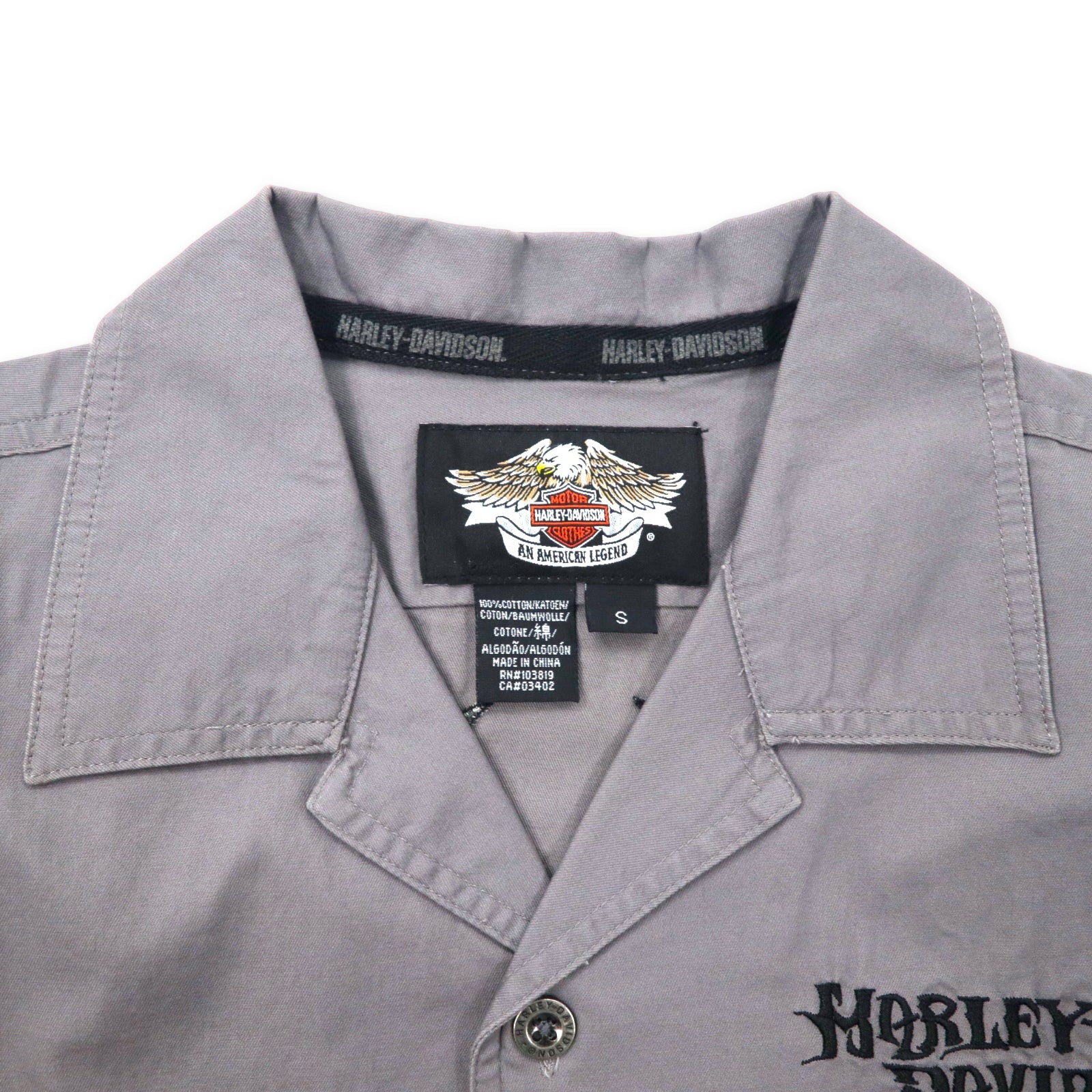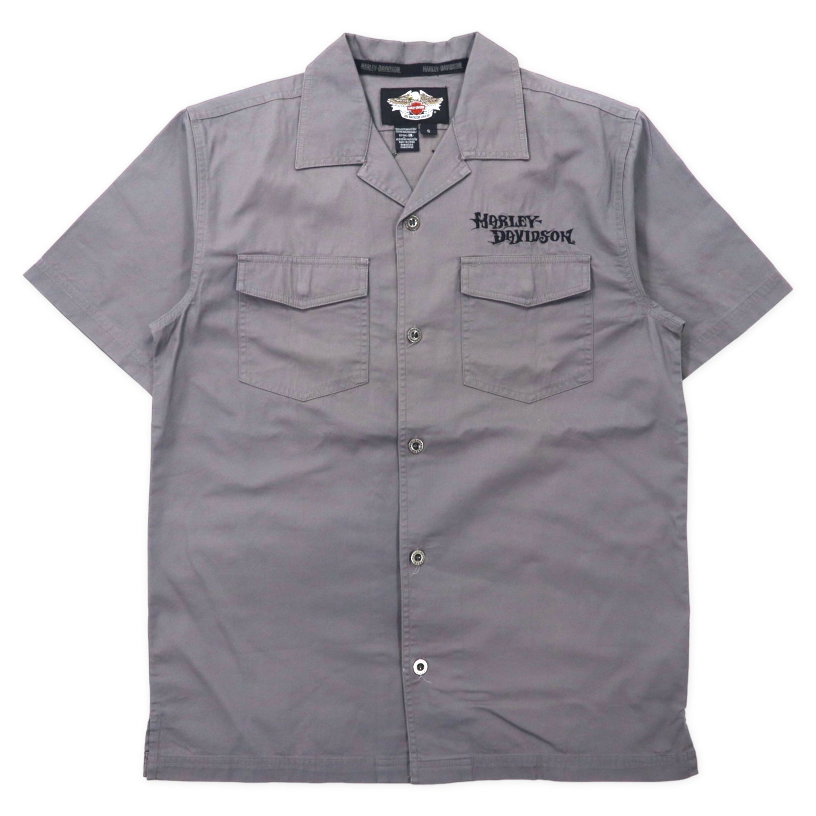 HARLEY DAVIDSON 半袖 オープンカラー ワークシャツ S グレー コットン バックロゴ刺繍