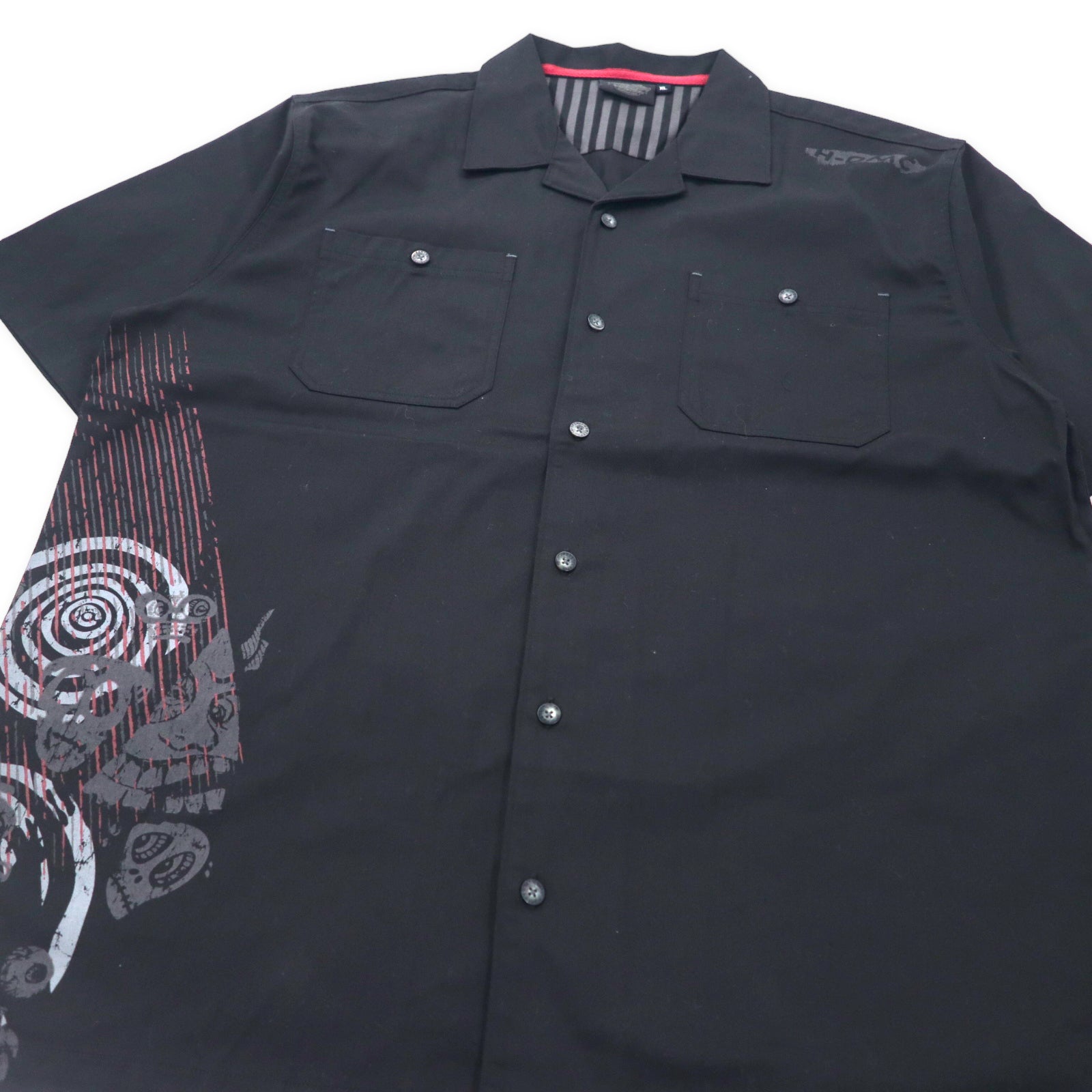 HARLEY DAVIDSON 半袖 オープンカラー ワークシャツ XL ブラック コットン ロゴプリント ビッグサイズ