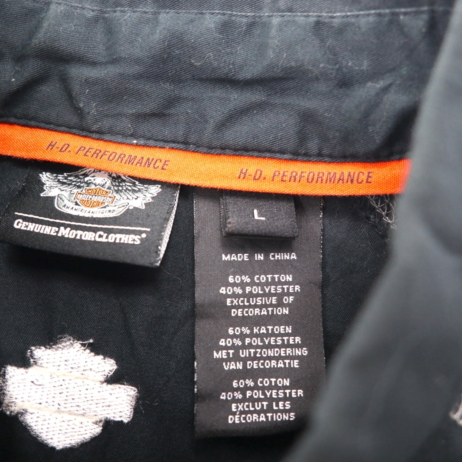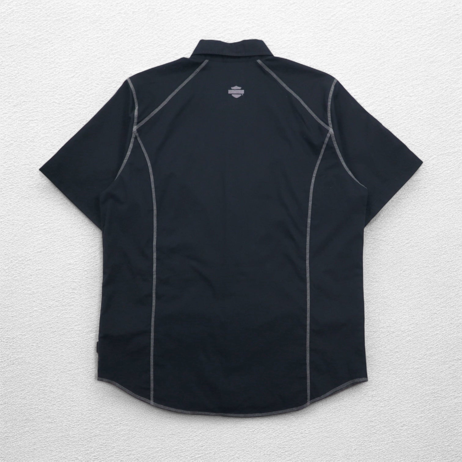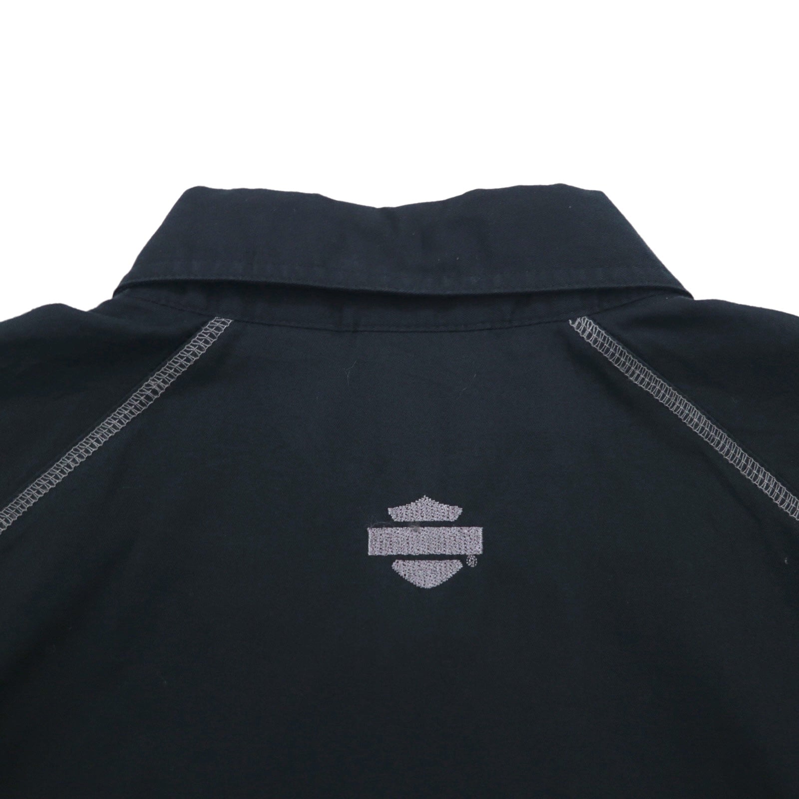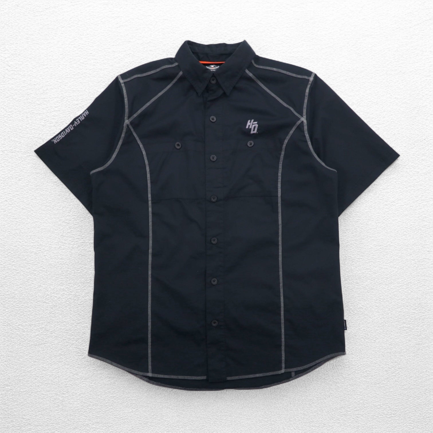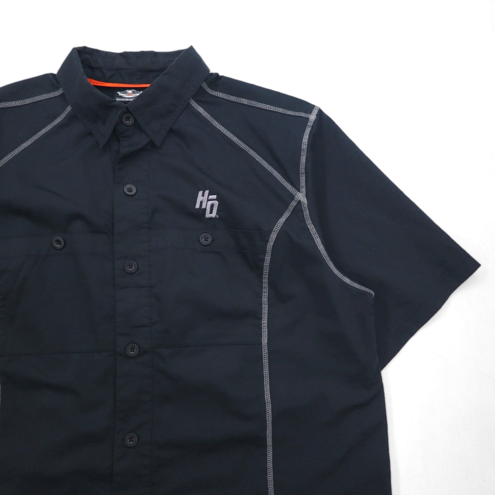HARLEY DAVIDSON 半袖 ワークシャツ L ブラック ダブルポケット ワンポイントロゴ刺繍