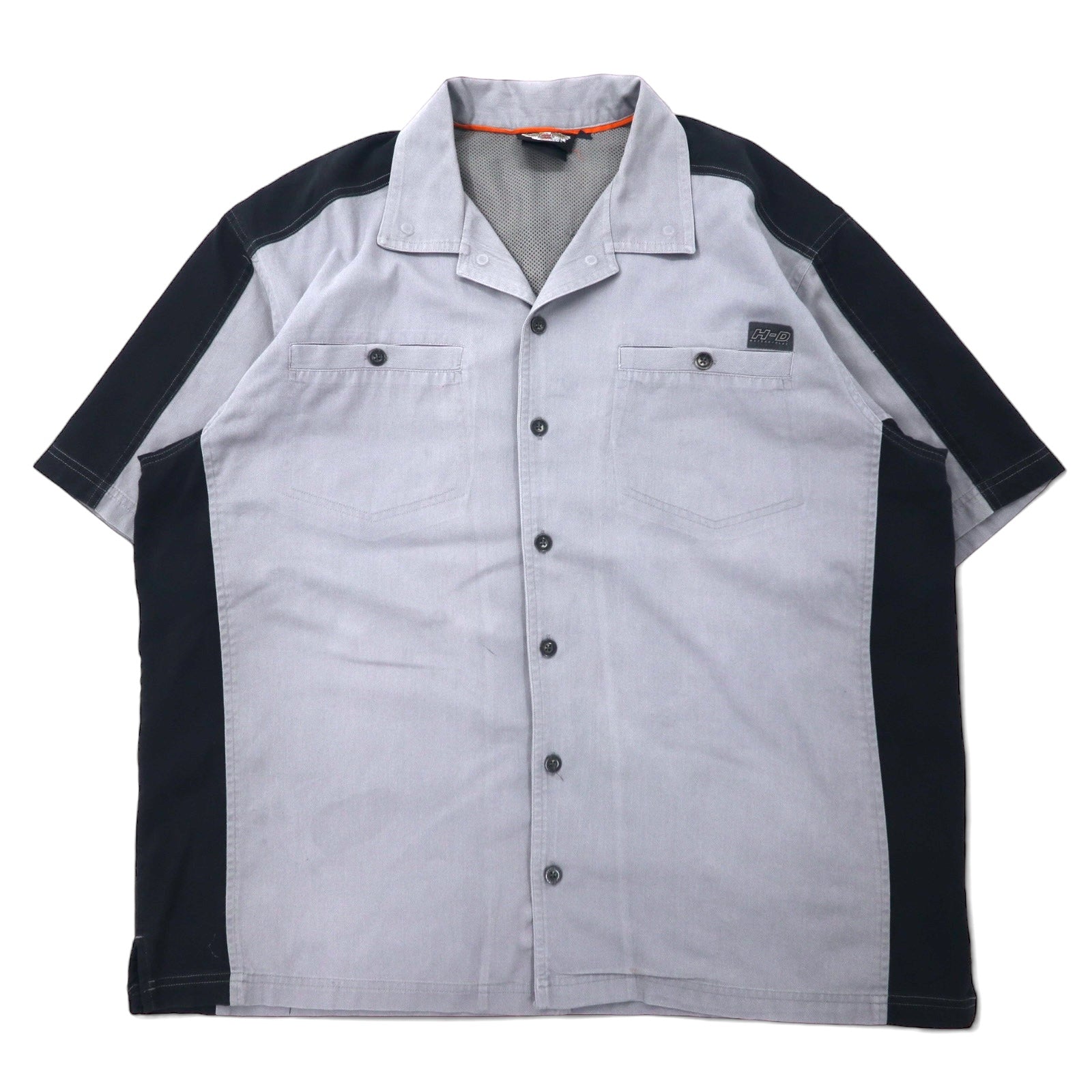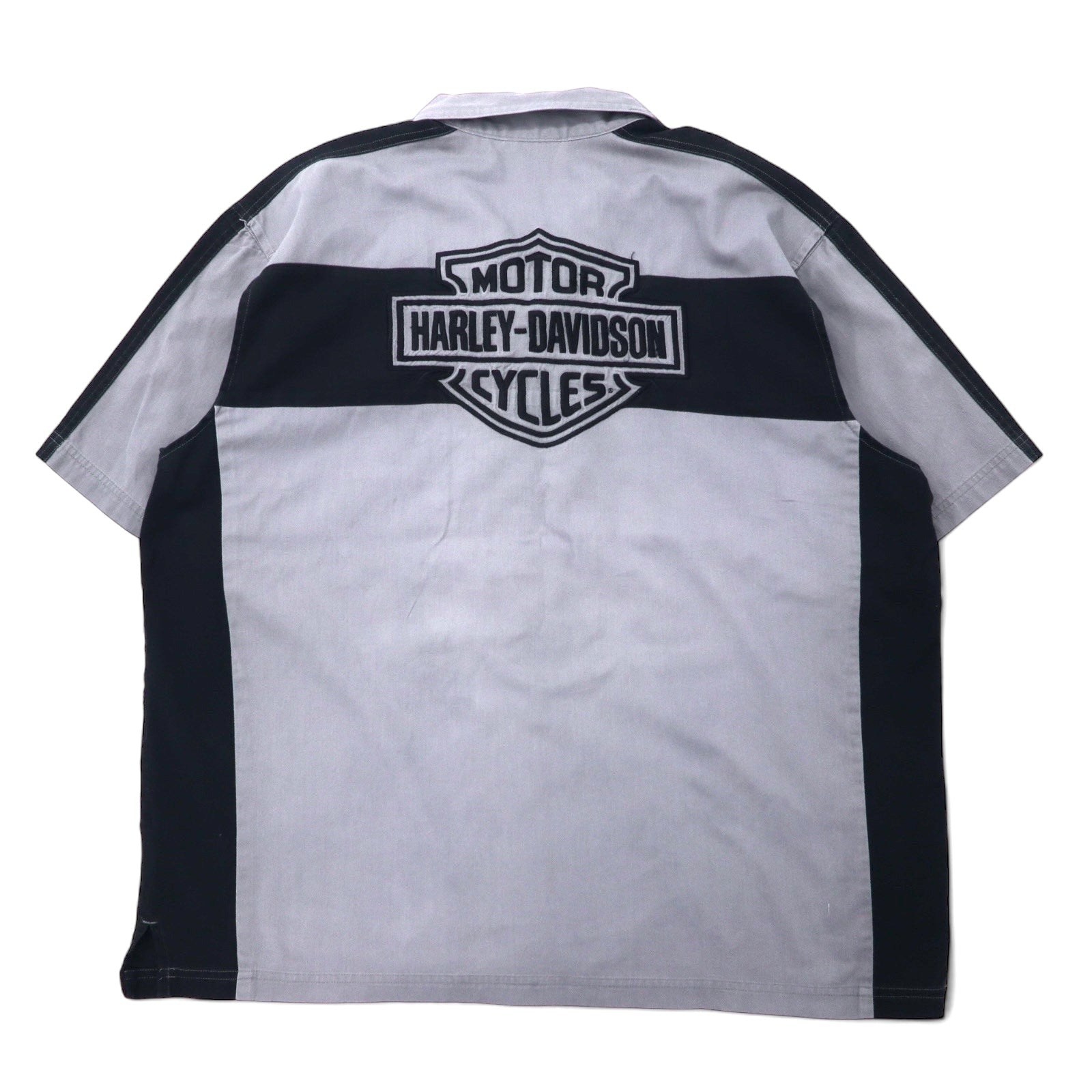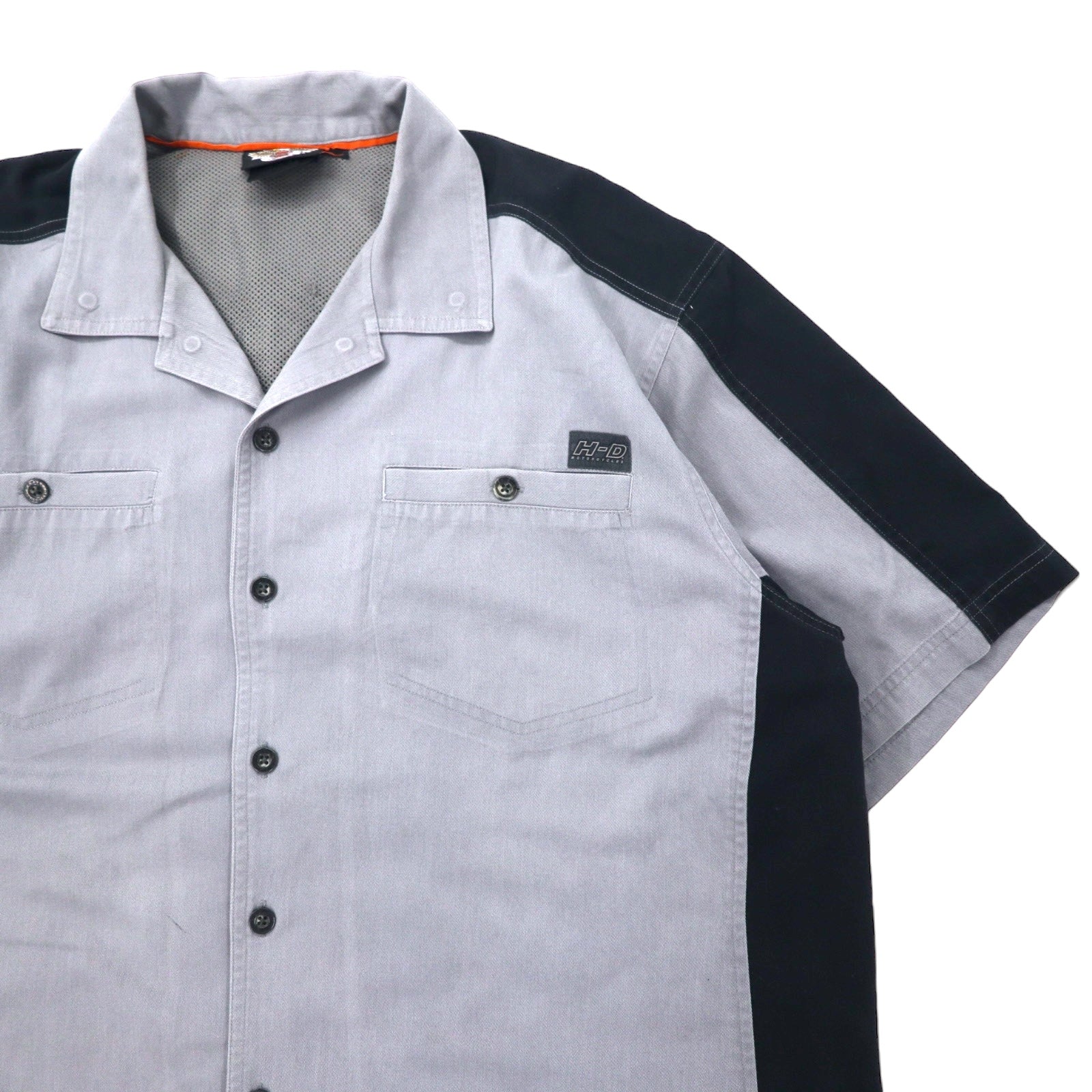 HARLEY DAVIDSON 半袖 ワークシャツ XL グレー コットン バックロゴ 刺繍