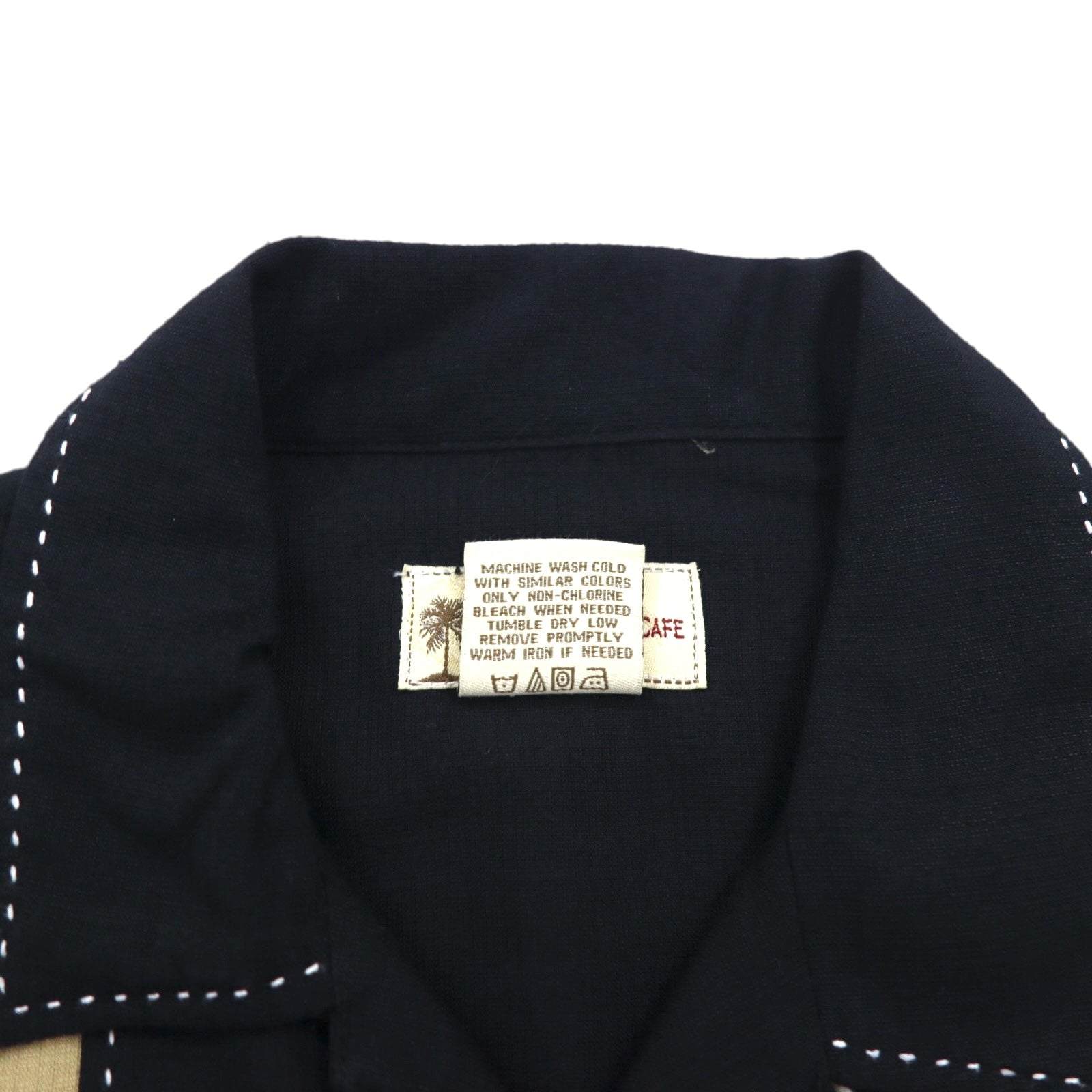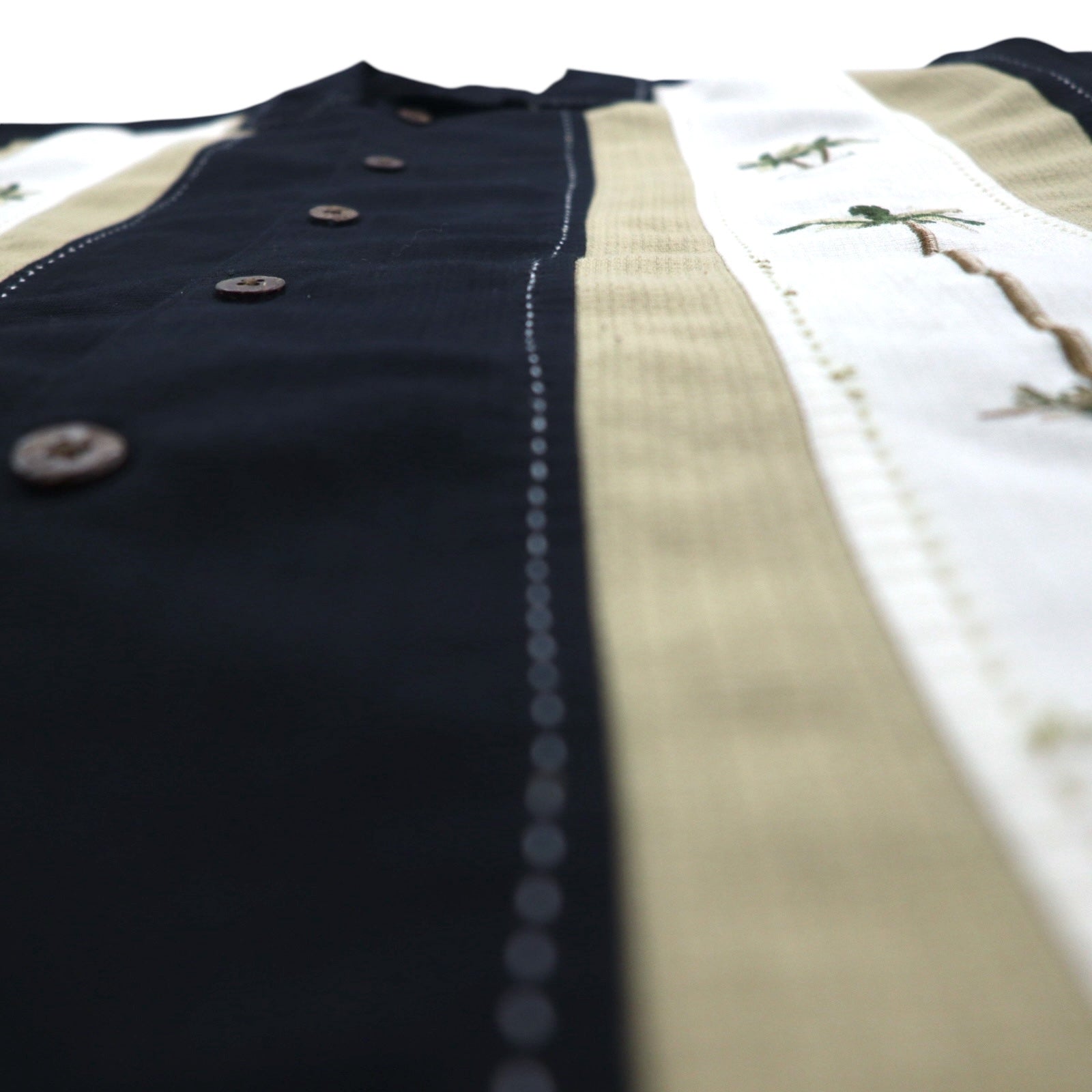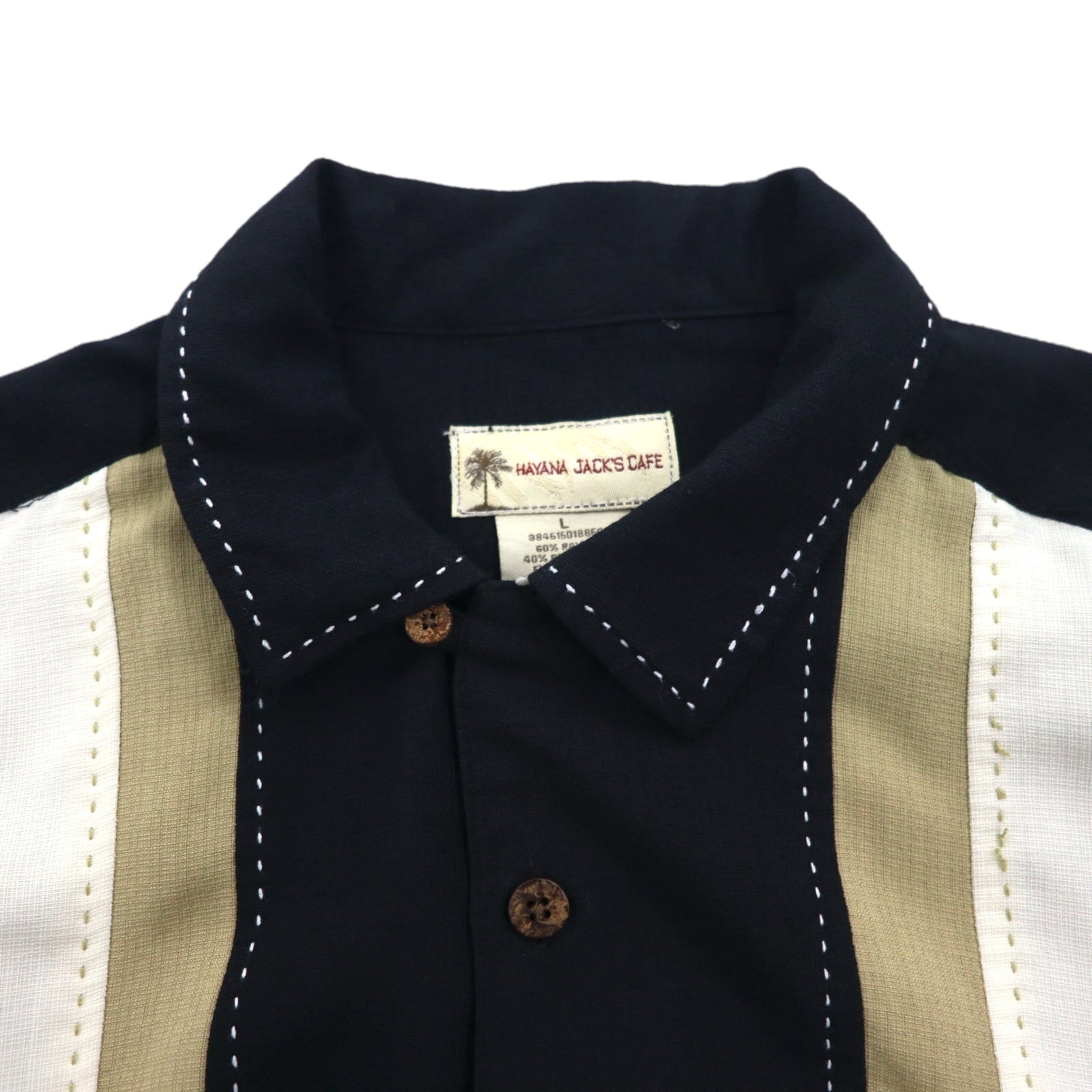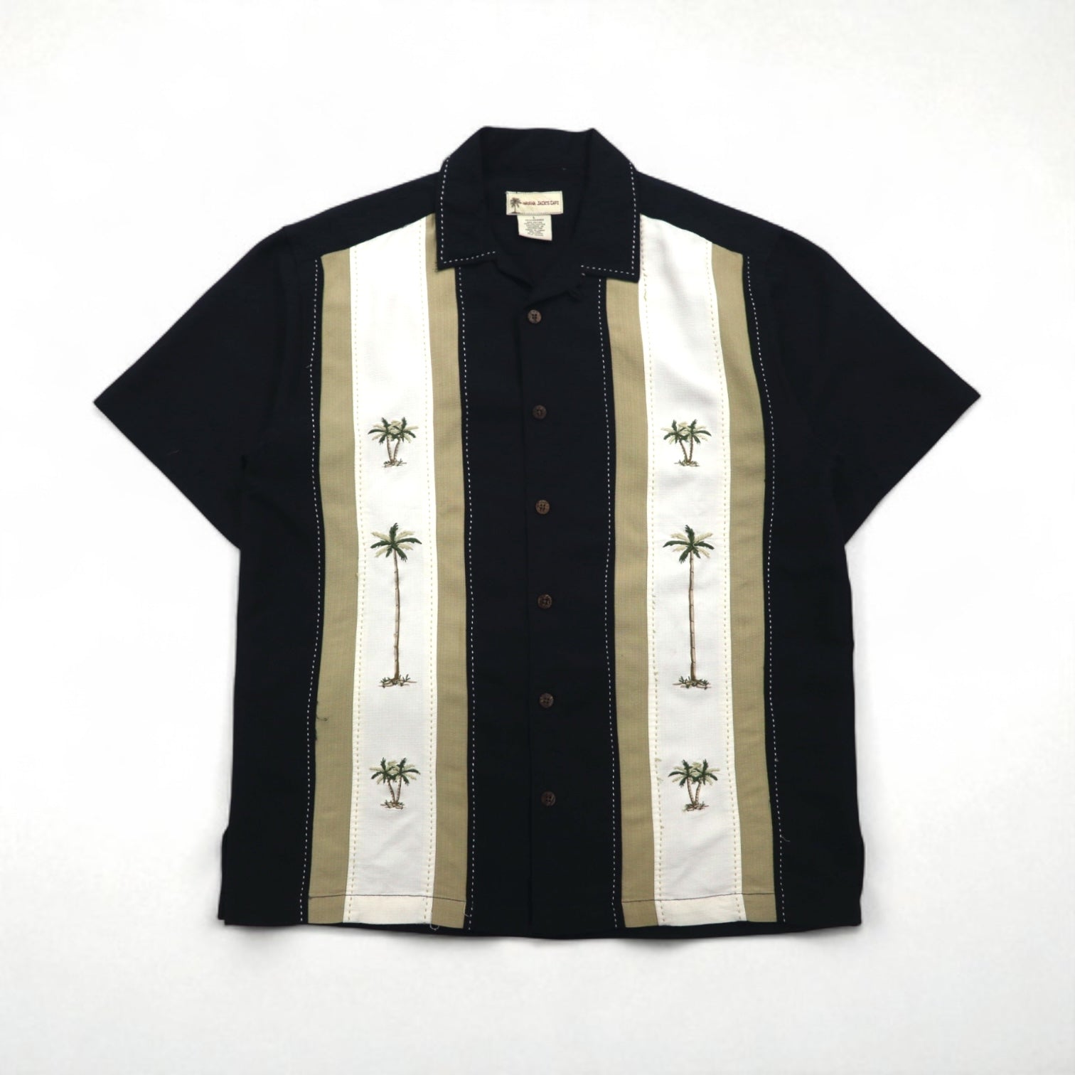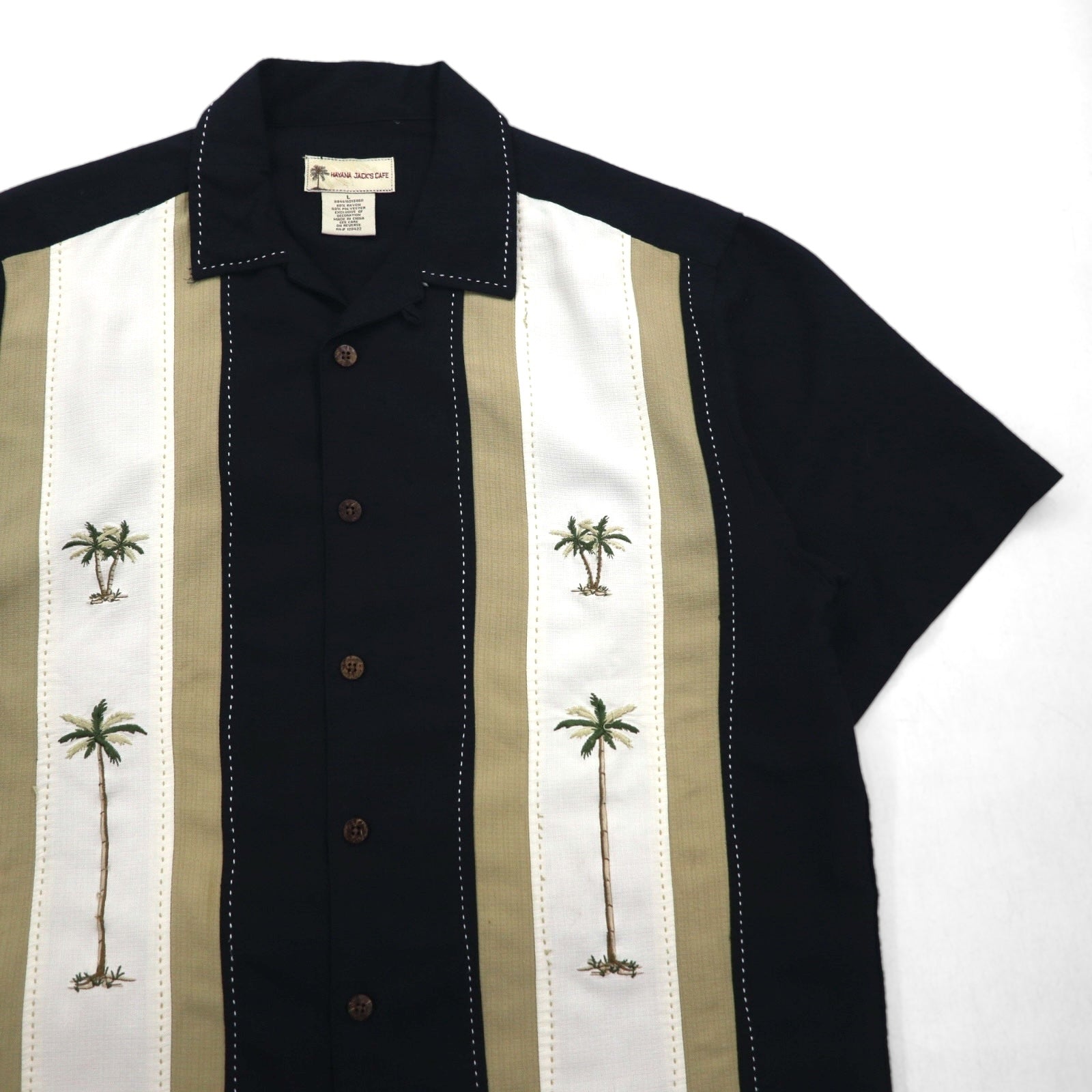 HAVANA JACK'S CAFE オープンカラー 開襟 キューバシャツ L ブラック レーヨン ポリエステル 刺子 刺繍 ヤシの木