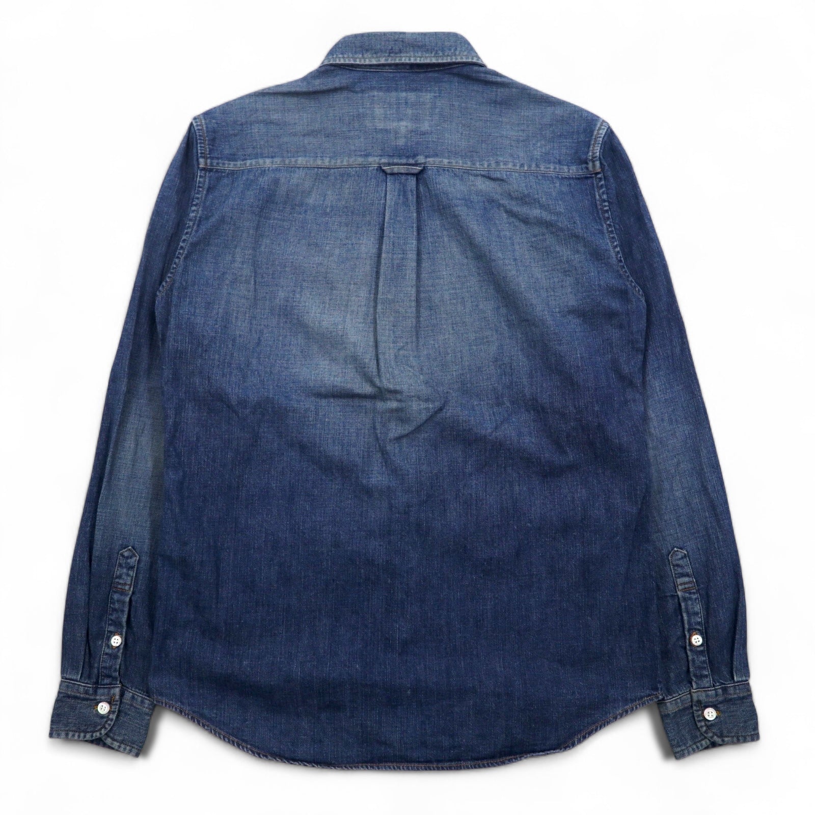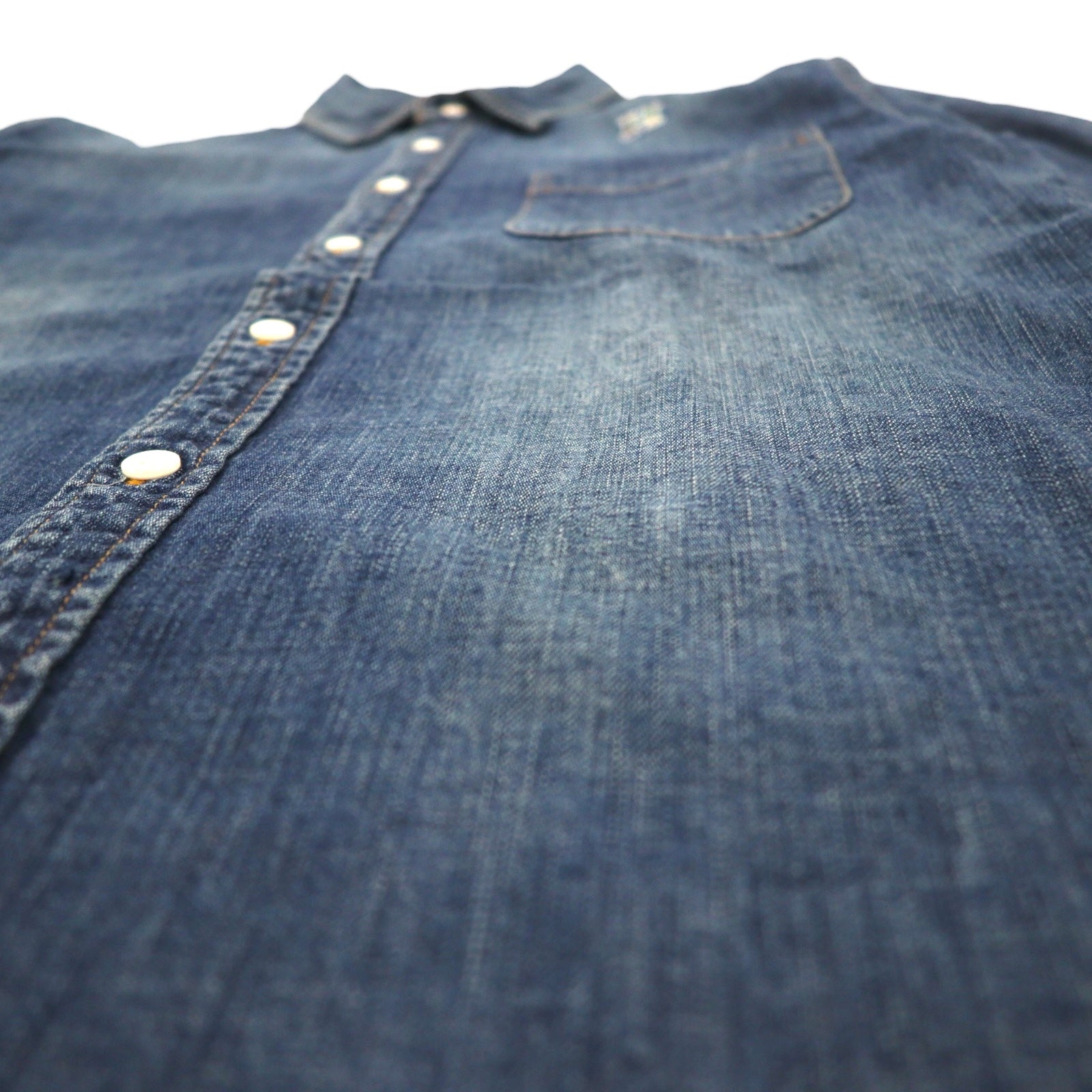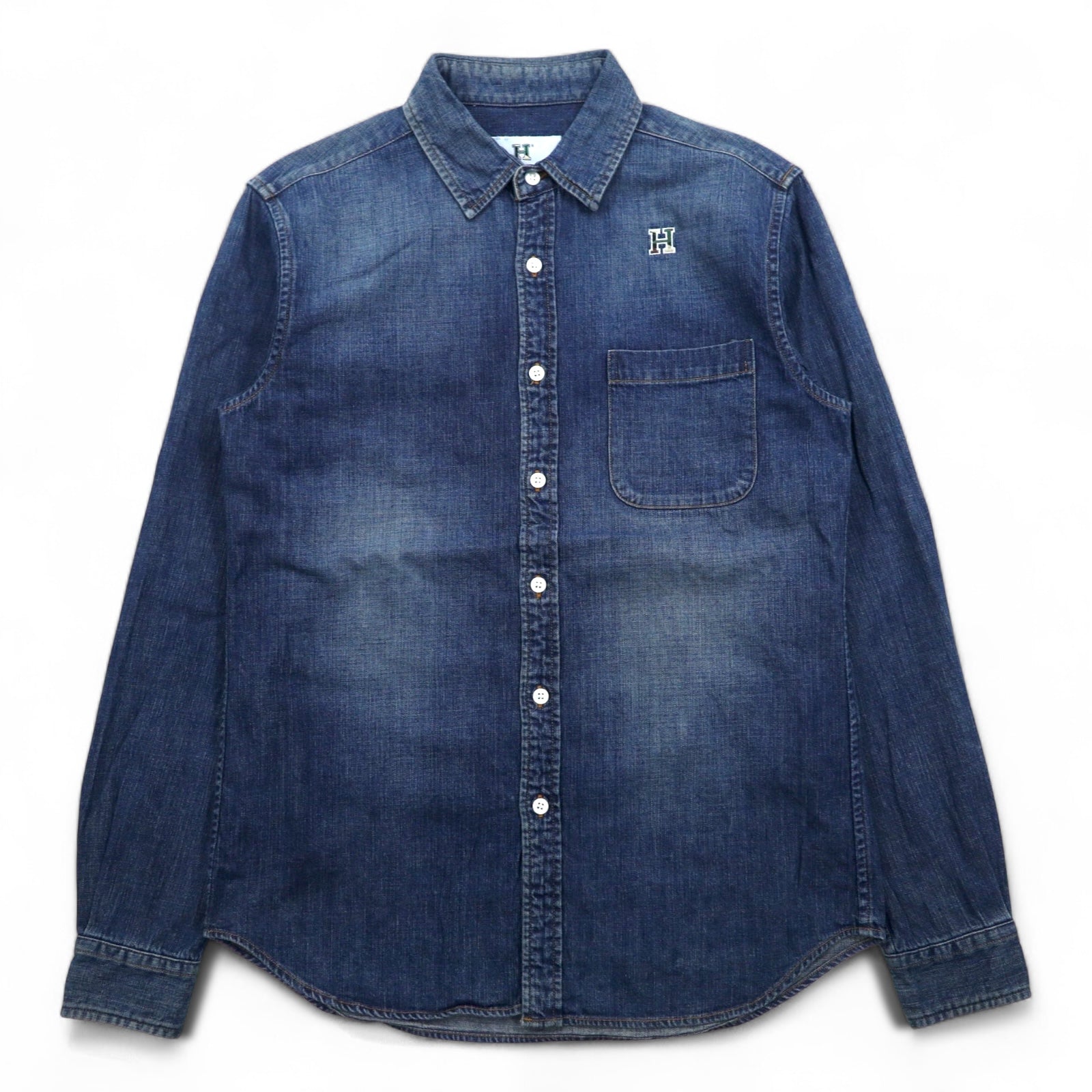 HBNS ワーク デニムシャツ S インディゴ ブルー ロゴ刺繍 胸ポケット 日本製