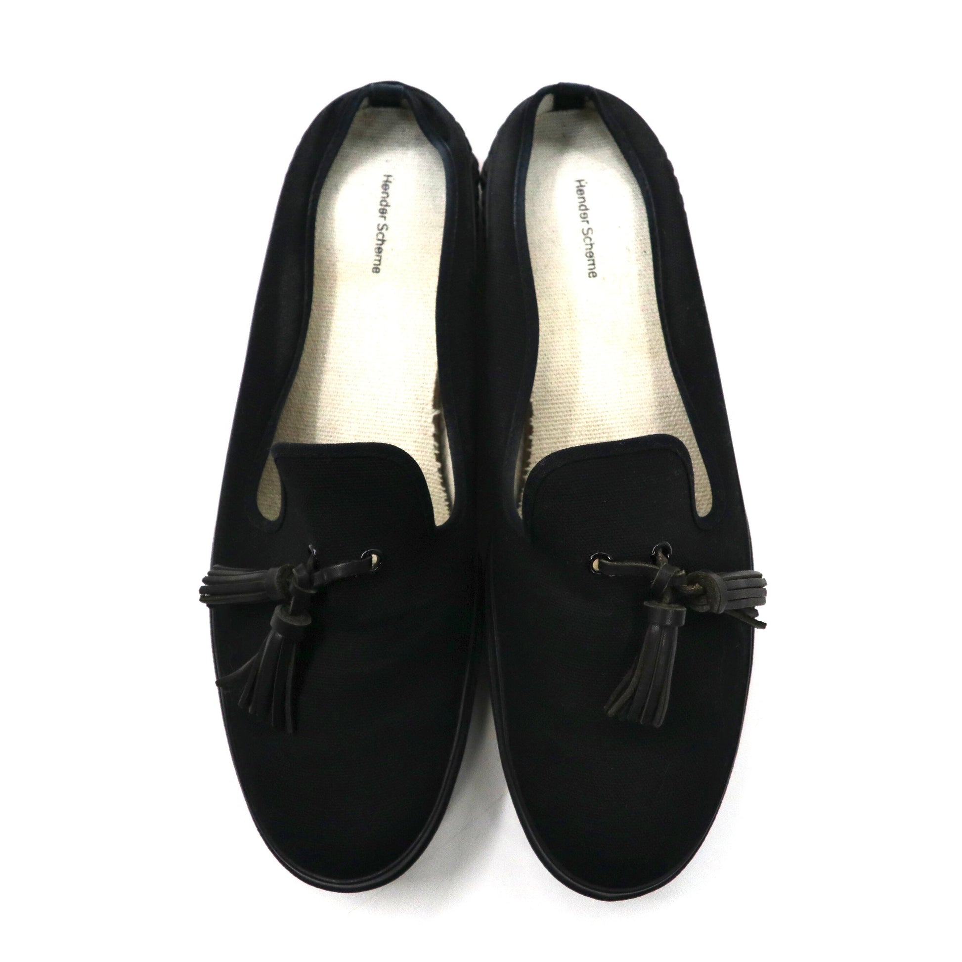 Hender Scheme タッセルローファー ミュール 27.5-28cm ブラック キャンバス PARALLEL / PEAK with tassels 8AHR 日本製