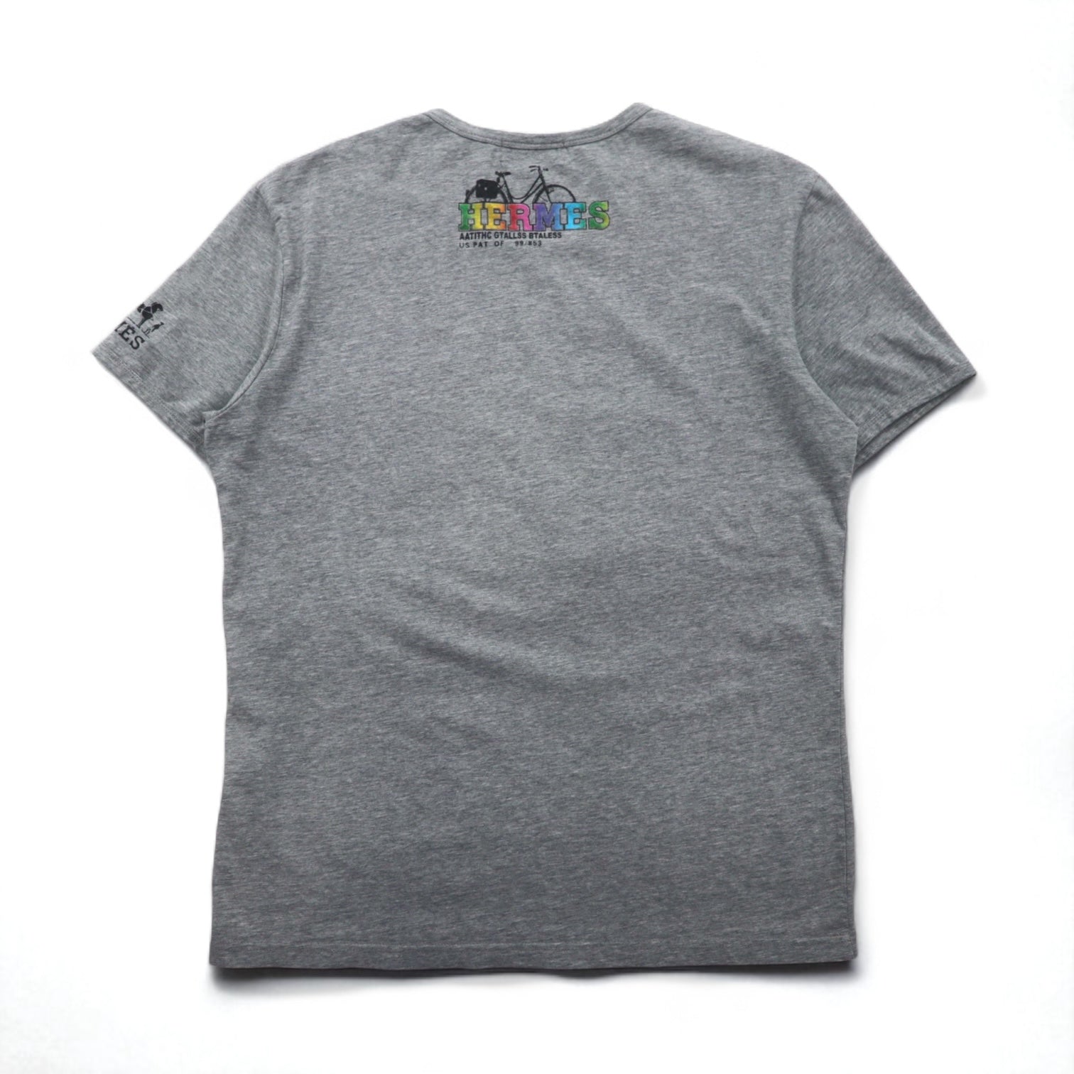 HERMES イタリア製 フォトグラフィック プリント Tシャツ XL グレー コットン ALINE