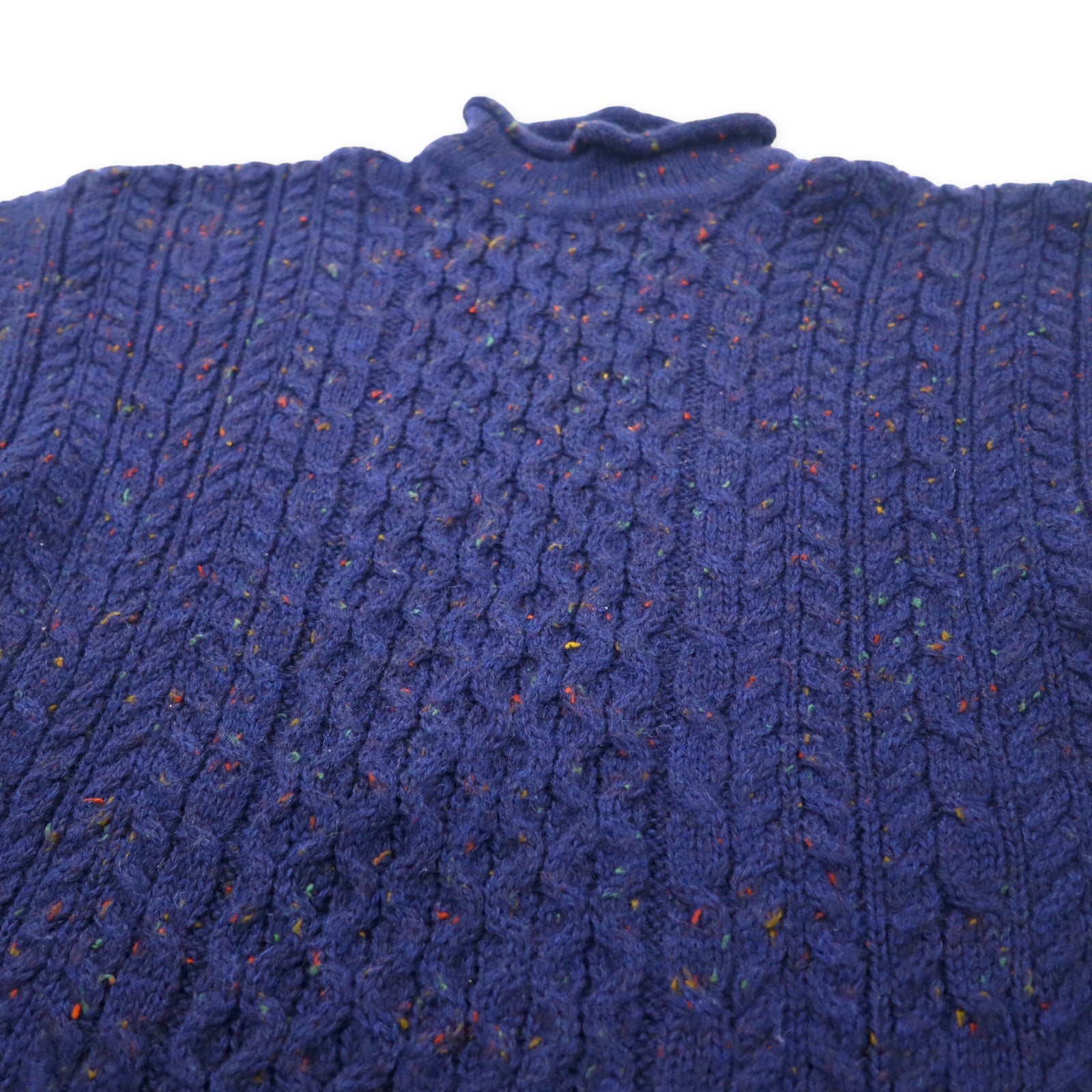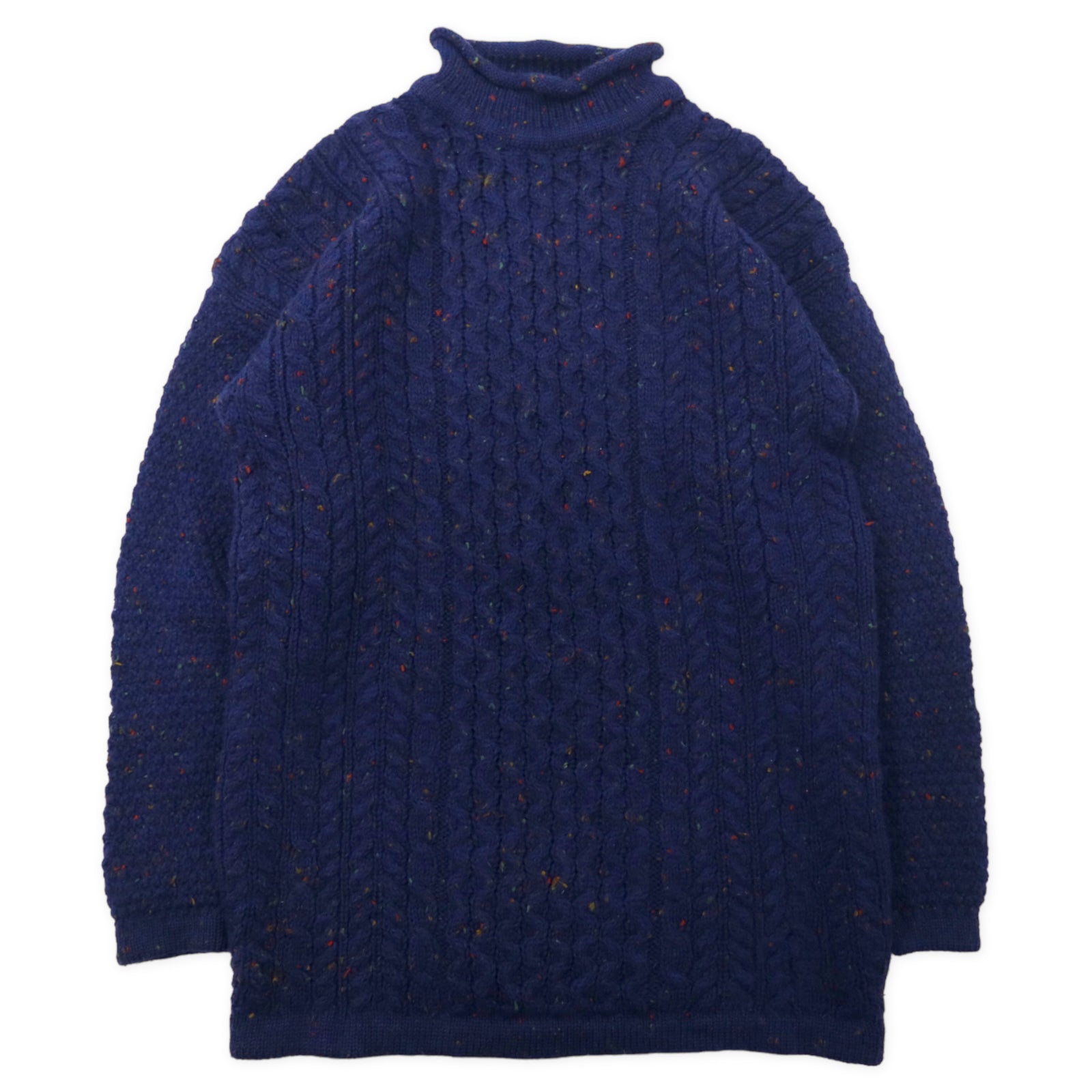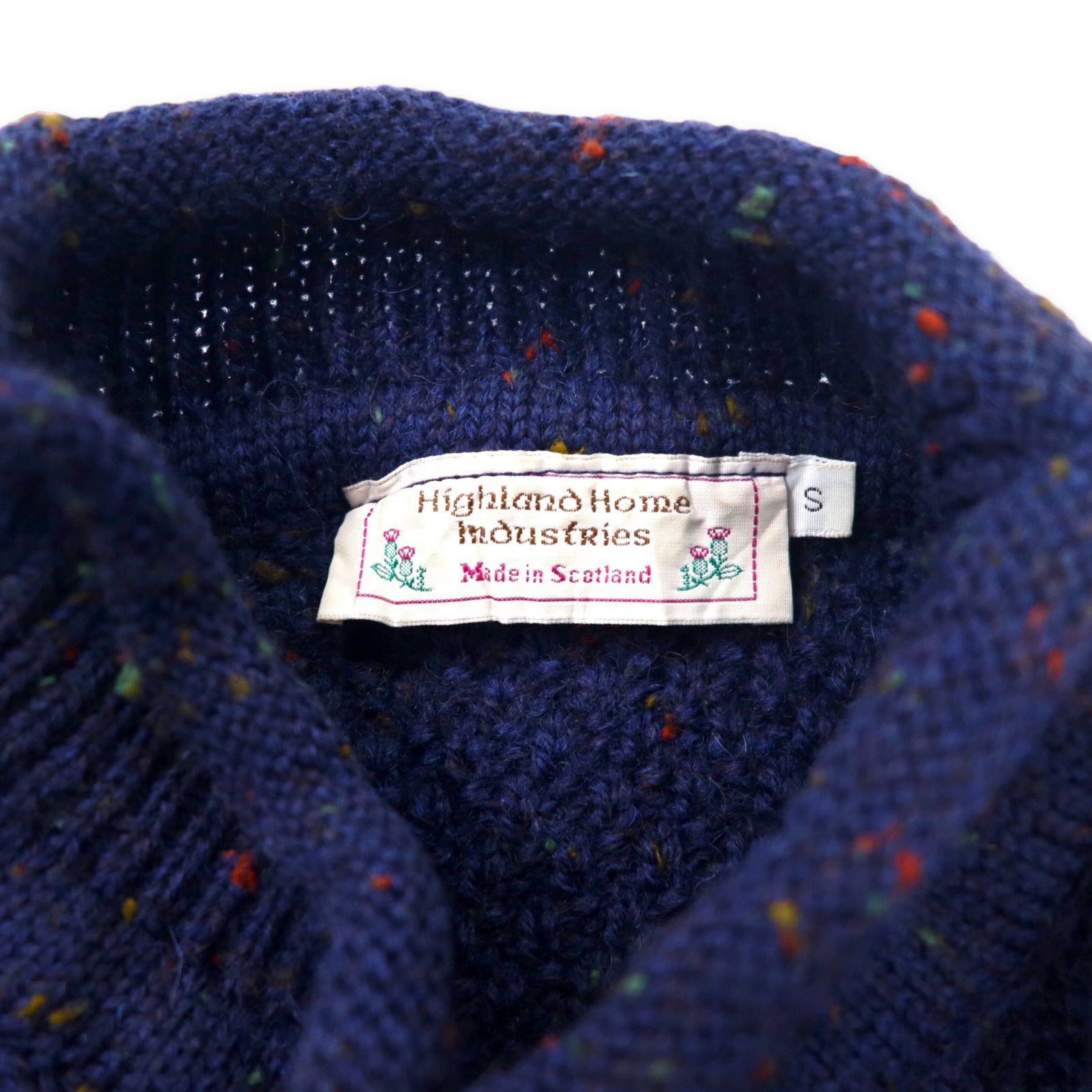 HIGHLAND HOME INDUSTRIES 80年代 スコットランド製 フィッシャーマンニット セーター S ネイビー ウール ハイネック