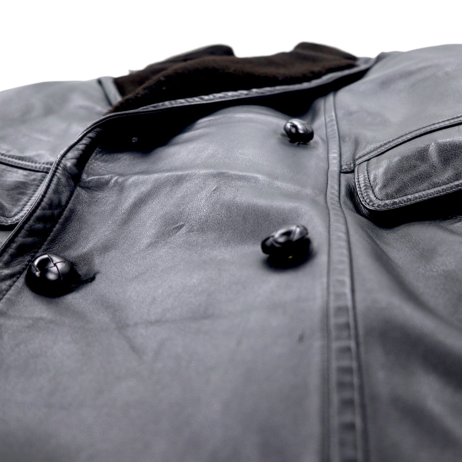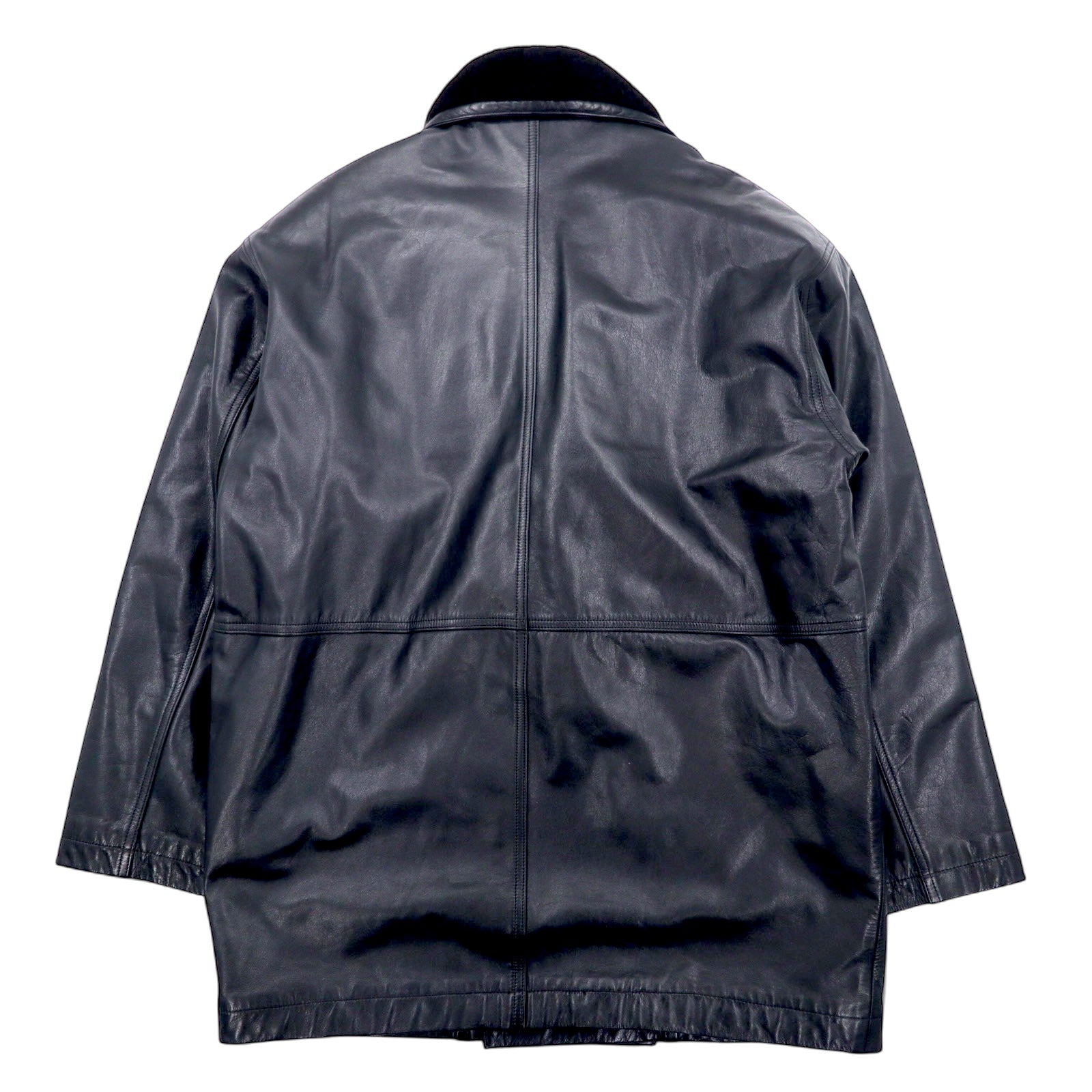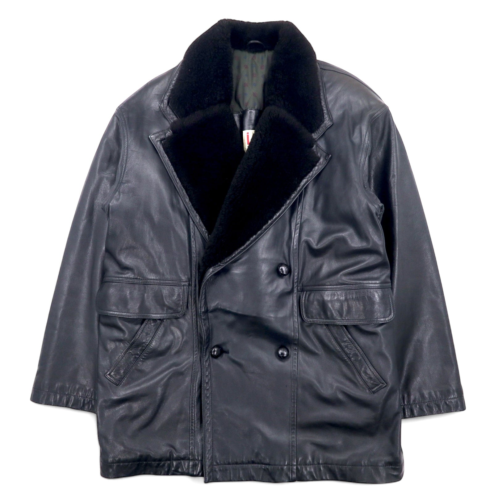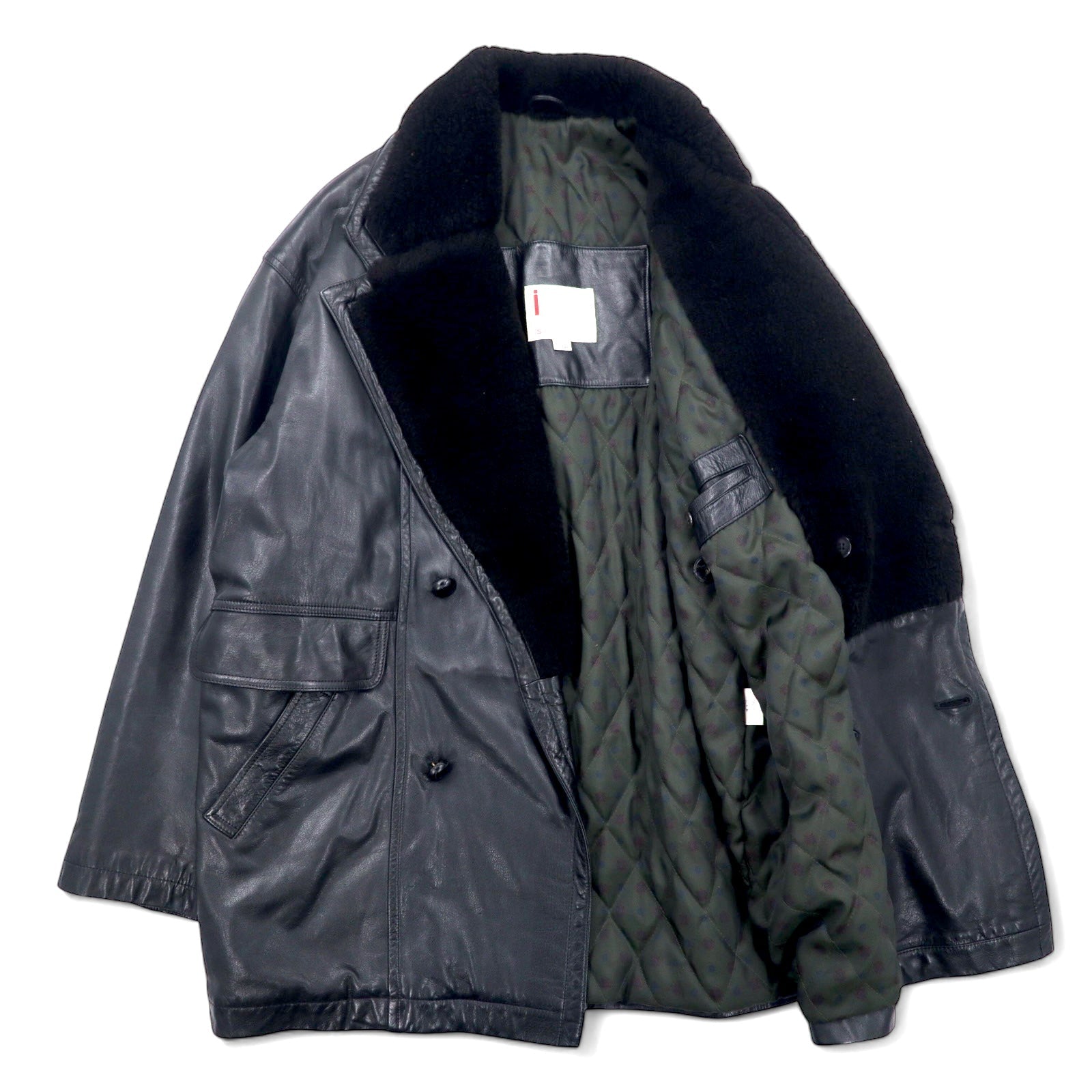 iDEE-MODA ダブルブレスト レザーコート L ブラック 牛革 ファー 裏地ペイズリー 日本製