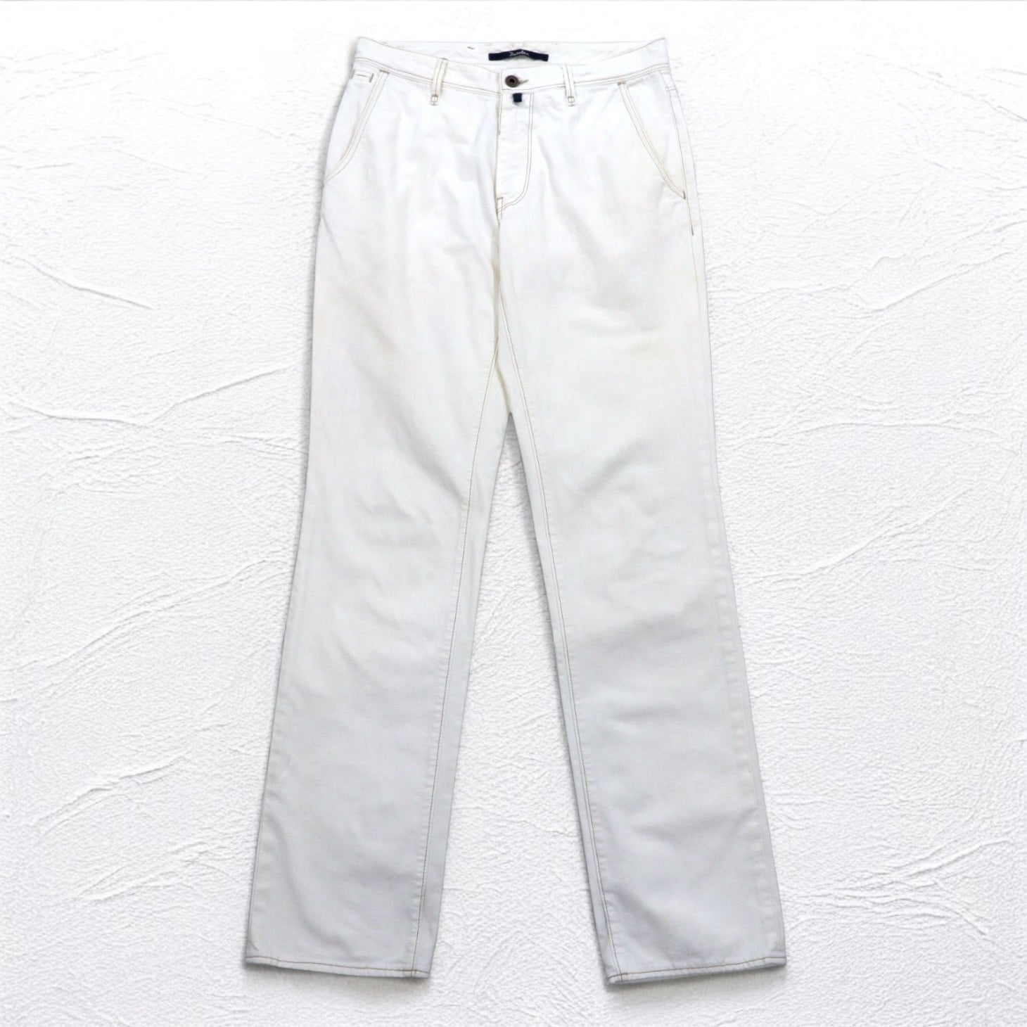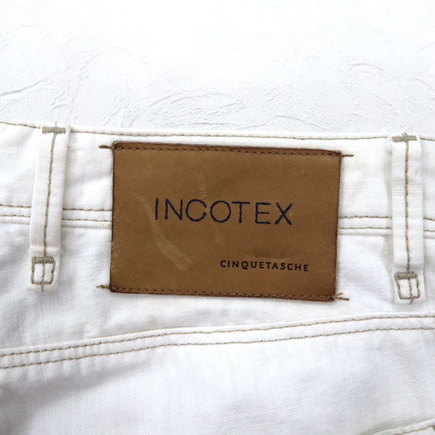 INCOTEX ルーマニア製 デニムパンツ M ホワイト コットン TOMM SLIM レザーパッチ ジッパーフライ