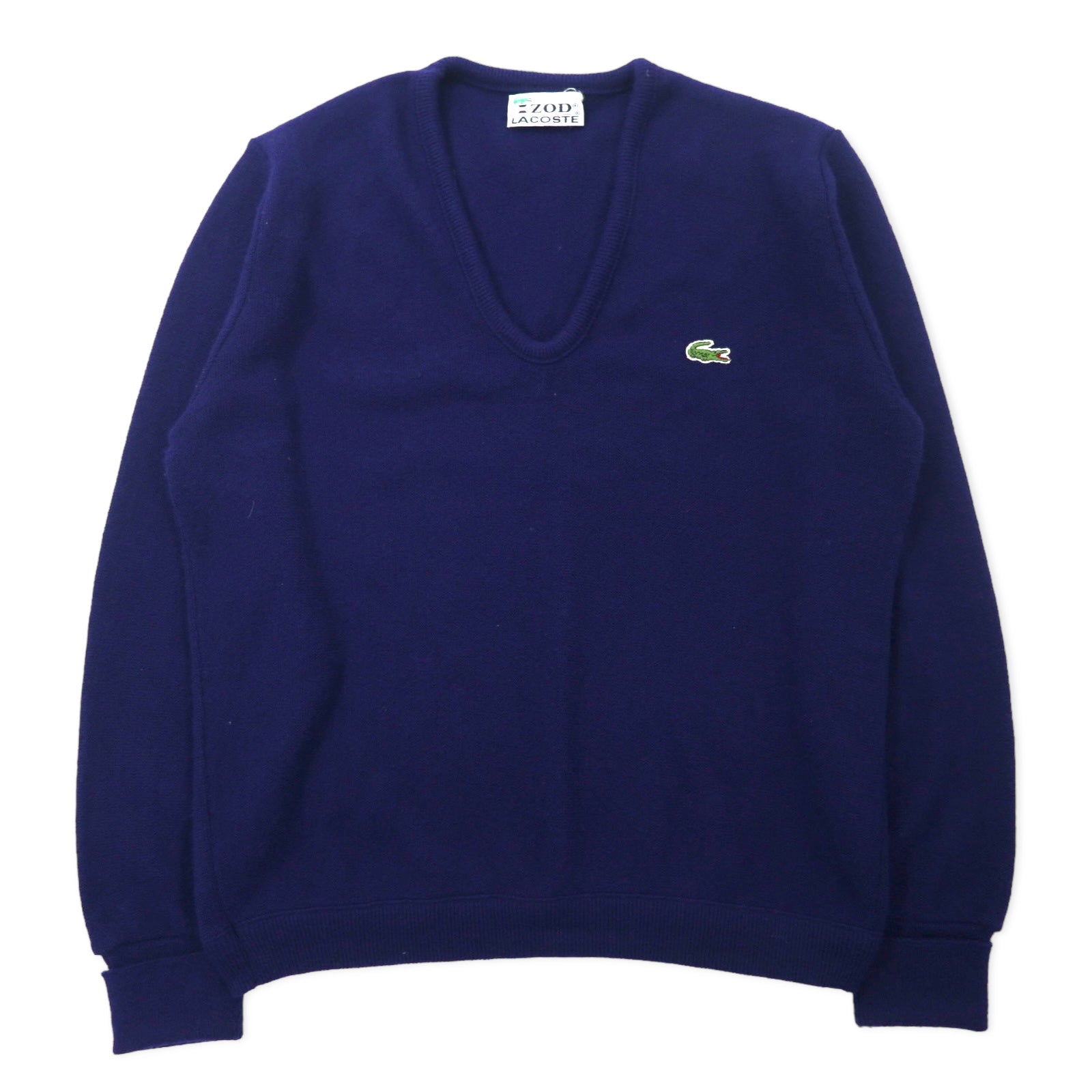IZOD LACOSTE 70年代 糸巻きタグ Vネック ハイゲージ ニット セーター S ネイビー アクリル ワンポイントロゴ