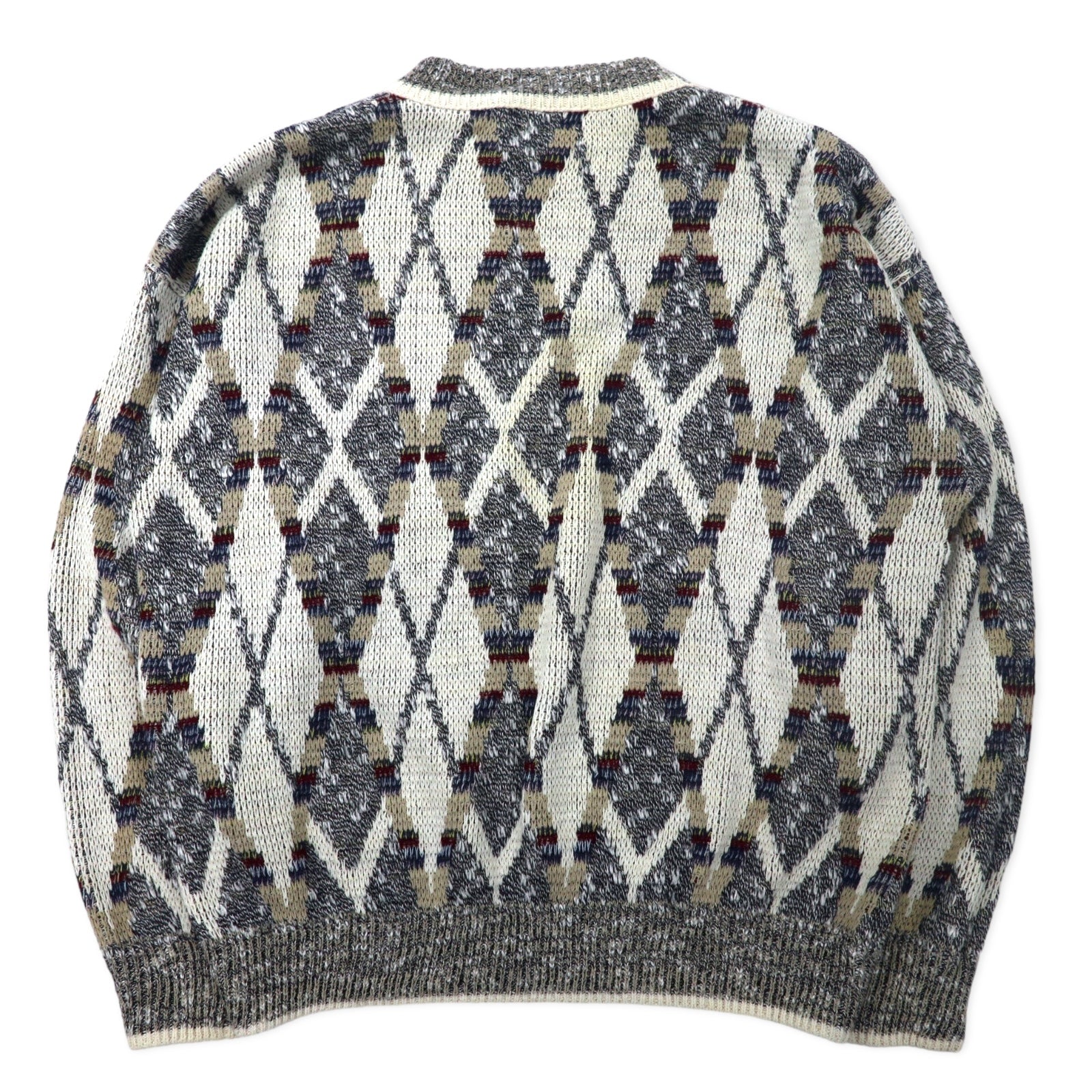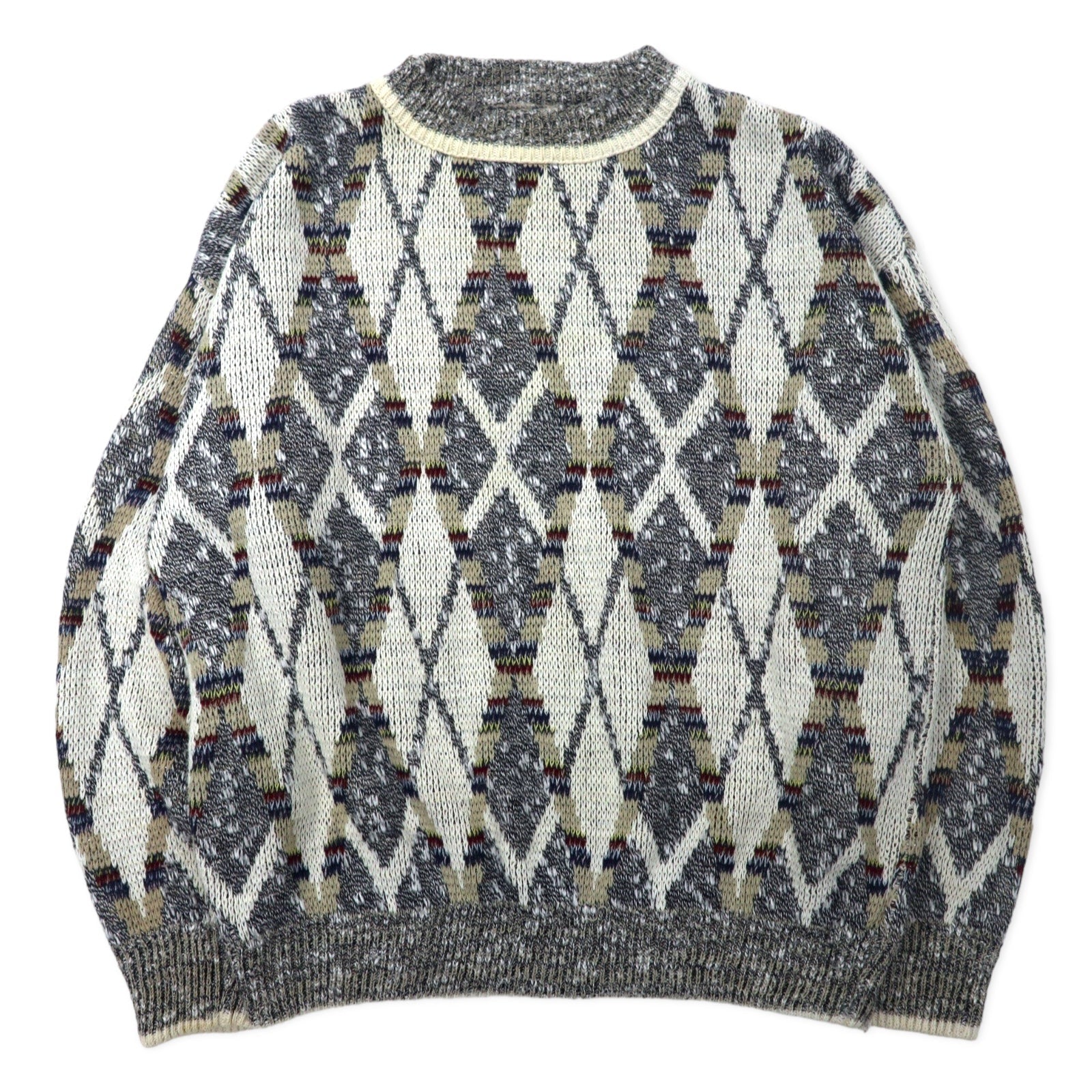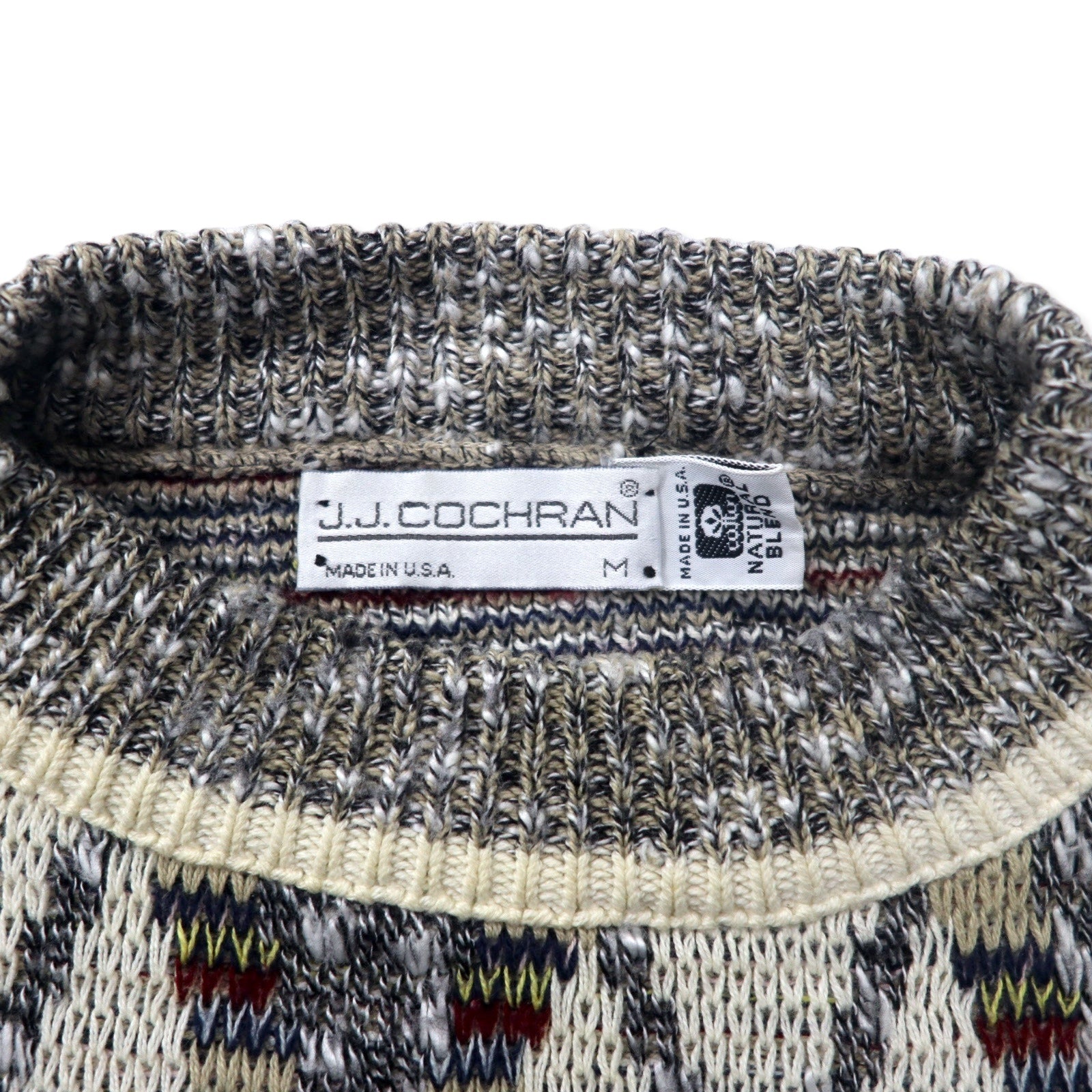 J.J.COCHRAN USA製 90年代 総柄 ボトルネック ニット セーター M ホワイト コットン NATURAL BLEND