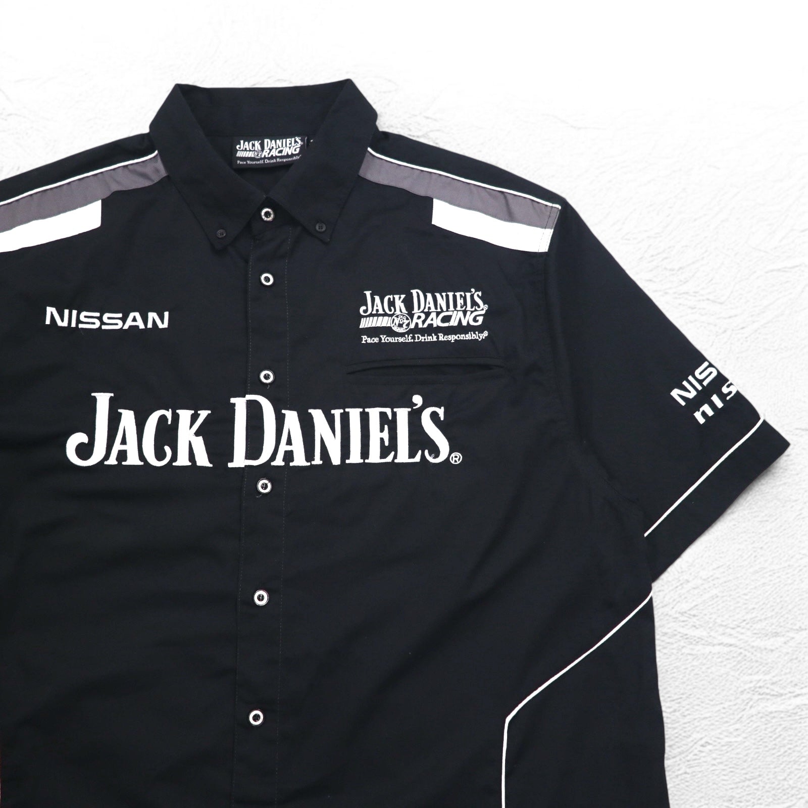 JACK DANIEL'S RACING ジャックダニエル 半袖 レーシングシャツ 2XL ブラック 両面ロゴ 刺繍