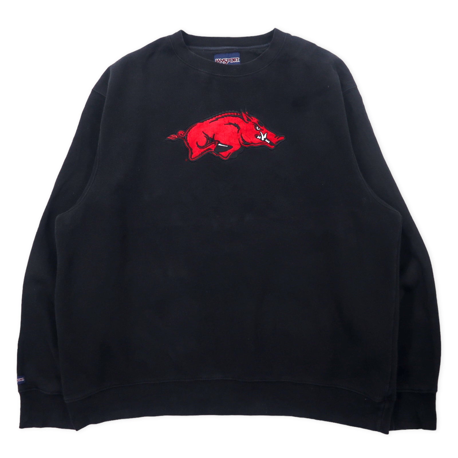 JAN SPORT カレッジ刺繍 スウェット XXL ブラック コットン 裏起毛 フットボール ARKANSAS RAZORBACKS ビッグサイズ