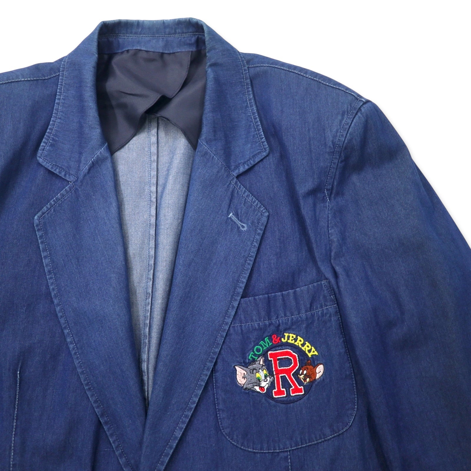 JC de Castelbajac × TURNER ENTERTAINMENT イタリア製 90年代 イタリア製 デニム 2B テーラードジャケット ブレザー 50 ブルー コットン TOM & JERRY トムとジェリー