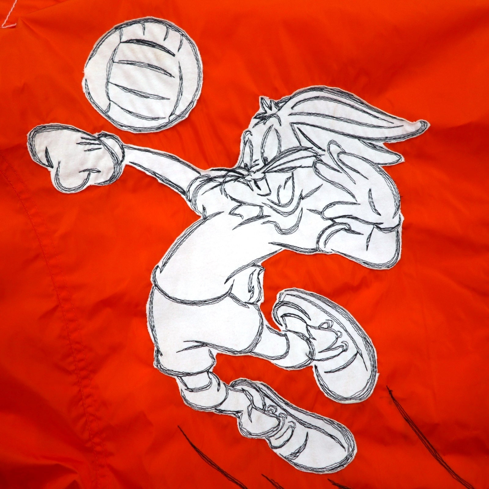 JC de CASTELBAJAC × Warner Bros イタリア製 90年代 ショート丈 ナイロン ライダースジャケット L オレンジ LOONEY TUNES バックスバニー 未使用品