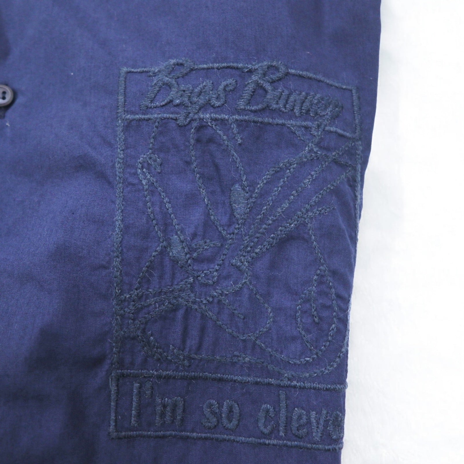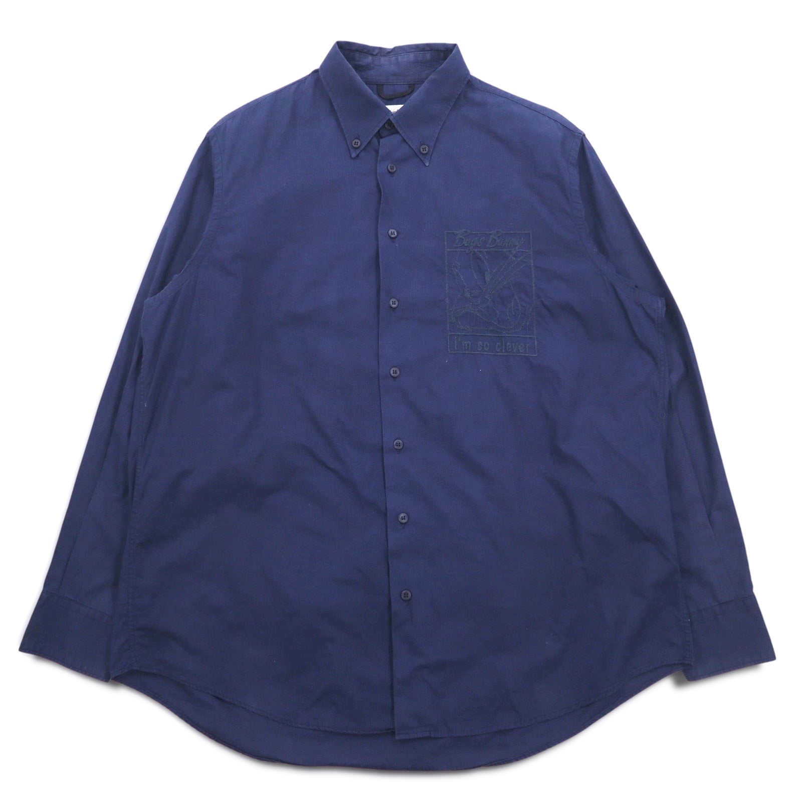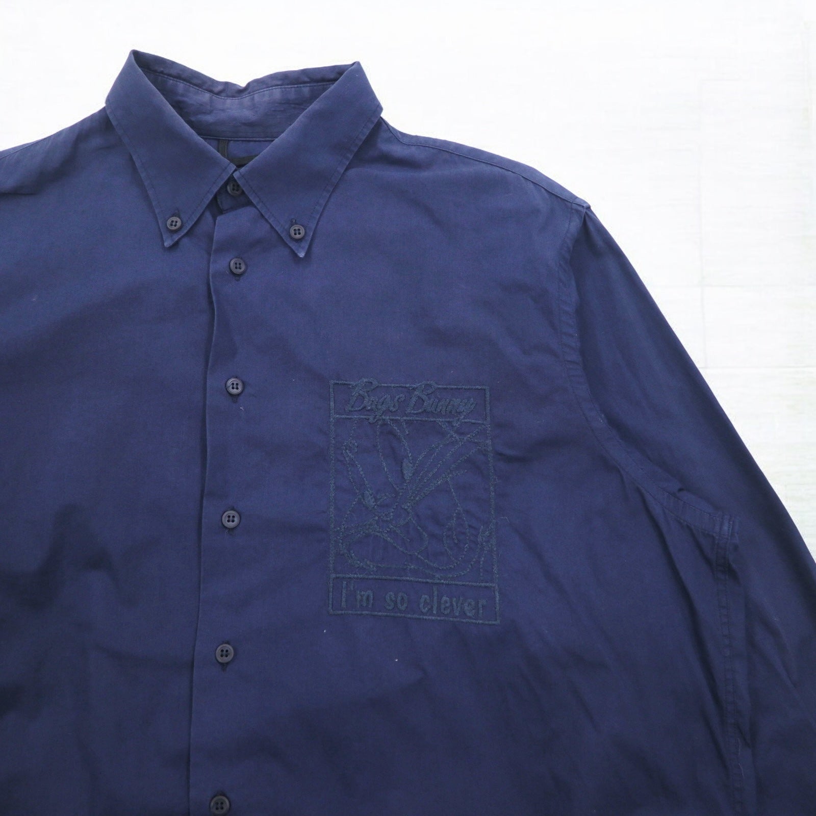 JC de Castelbajac × WARNER BROS イタリア製 90年代 ボタンダウンシャツ L ネイビー LOONEY TUNES バッグスバニー 刺繍