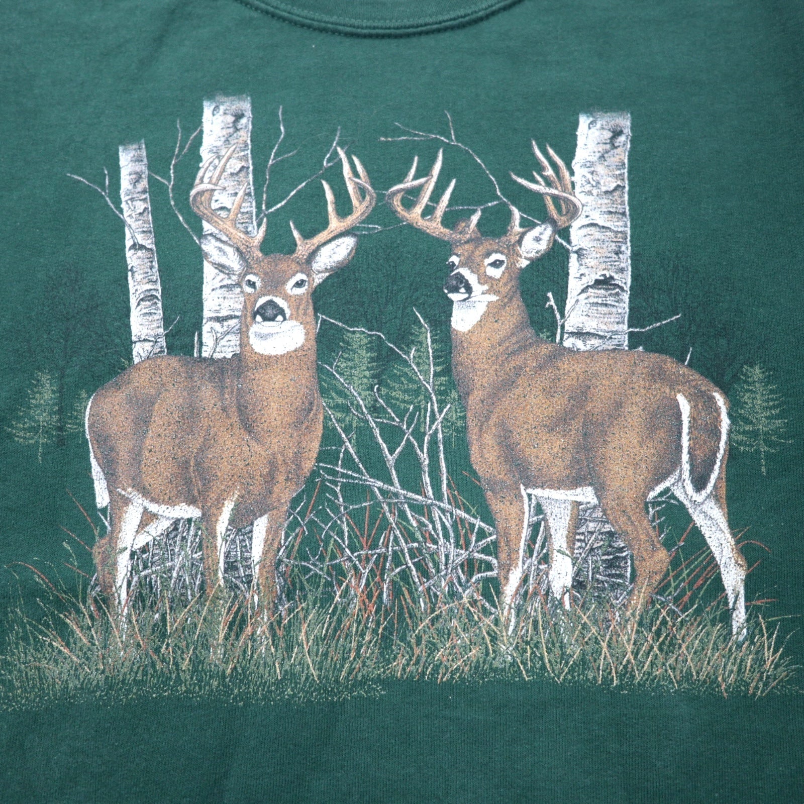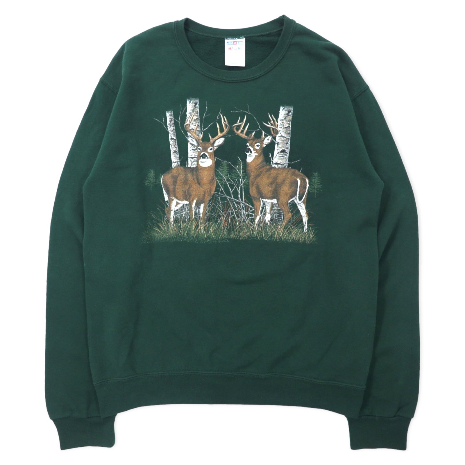 JERZEES アニマル プリント スウェット S グリーン コットン NUBLEND 鹿 ホンジュラス製