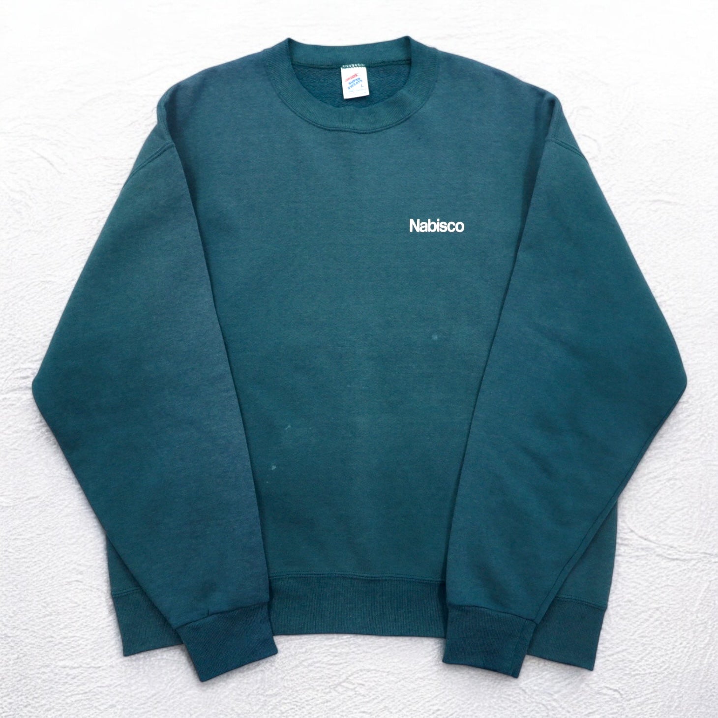JERZEES 90年代 USA製 スウェット L グリーン コットン 裏起毛 Nabisco US企業 ワンポイント