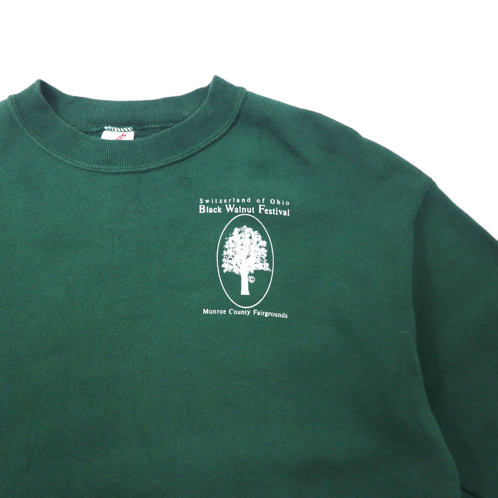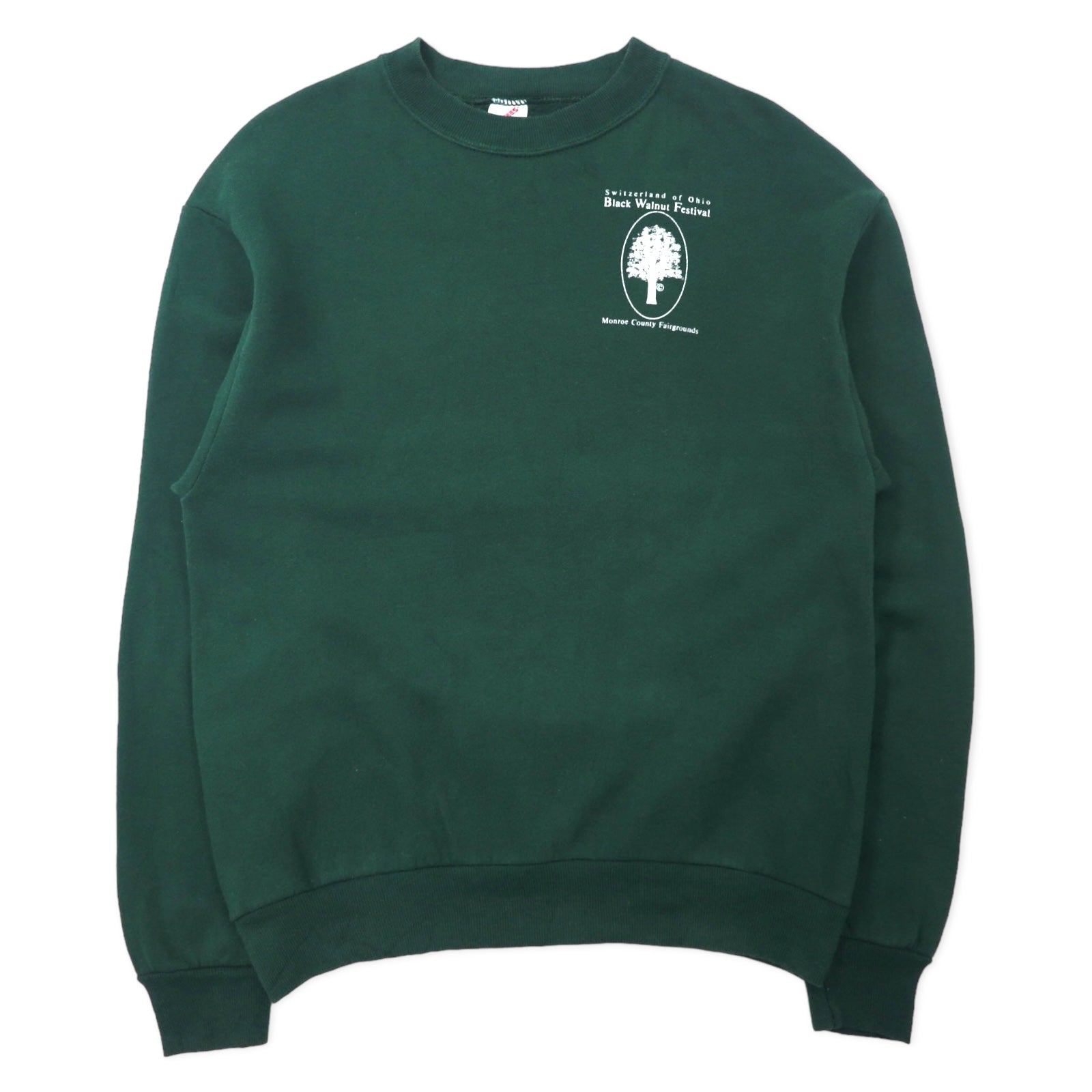 JERZEES USA製 90年代 クルーネック スウェット M グリーン コットン 裏起毛 Black Walnut Festival