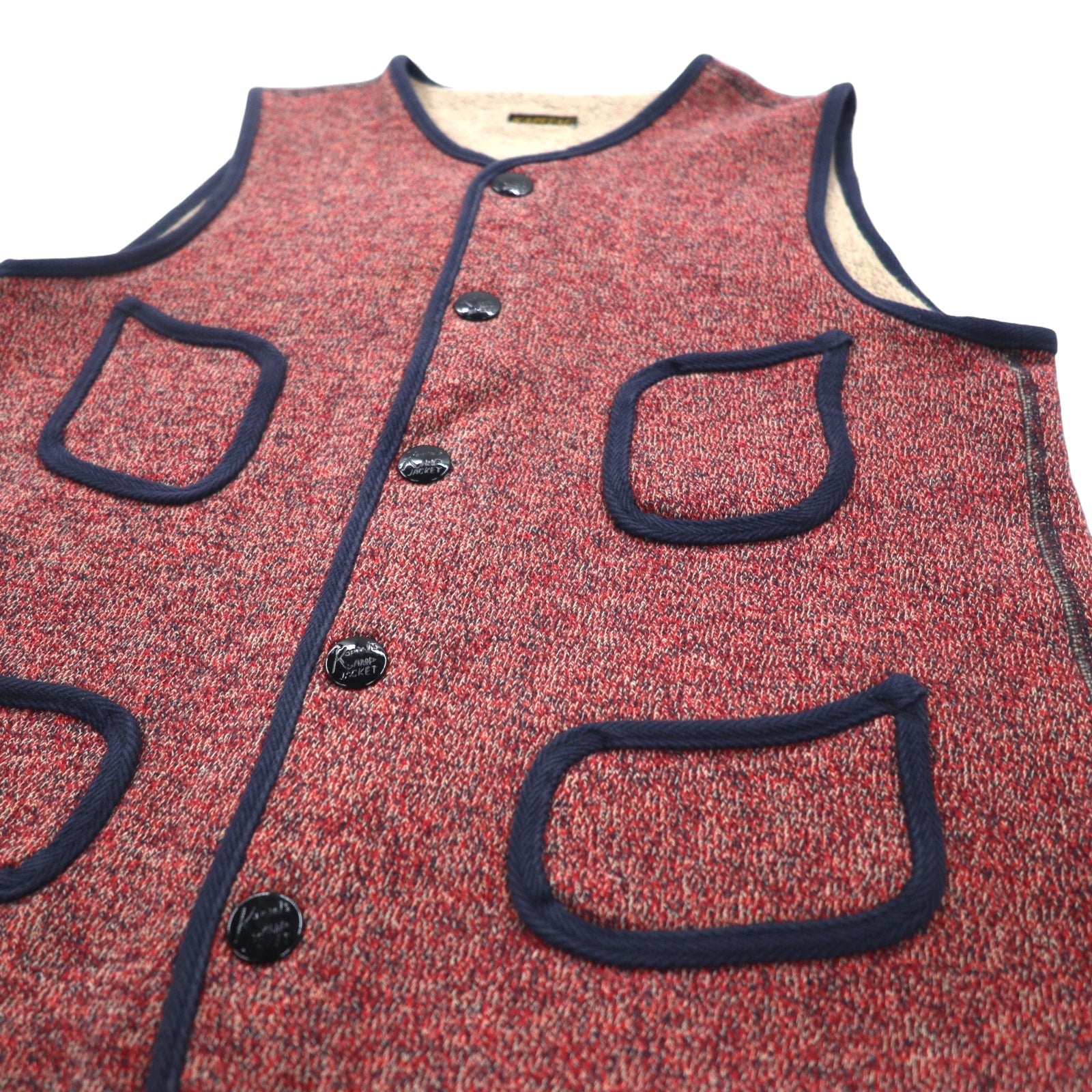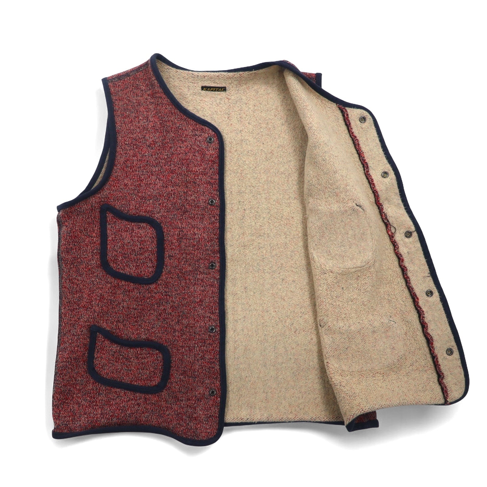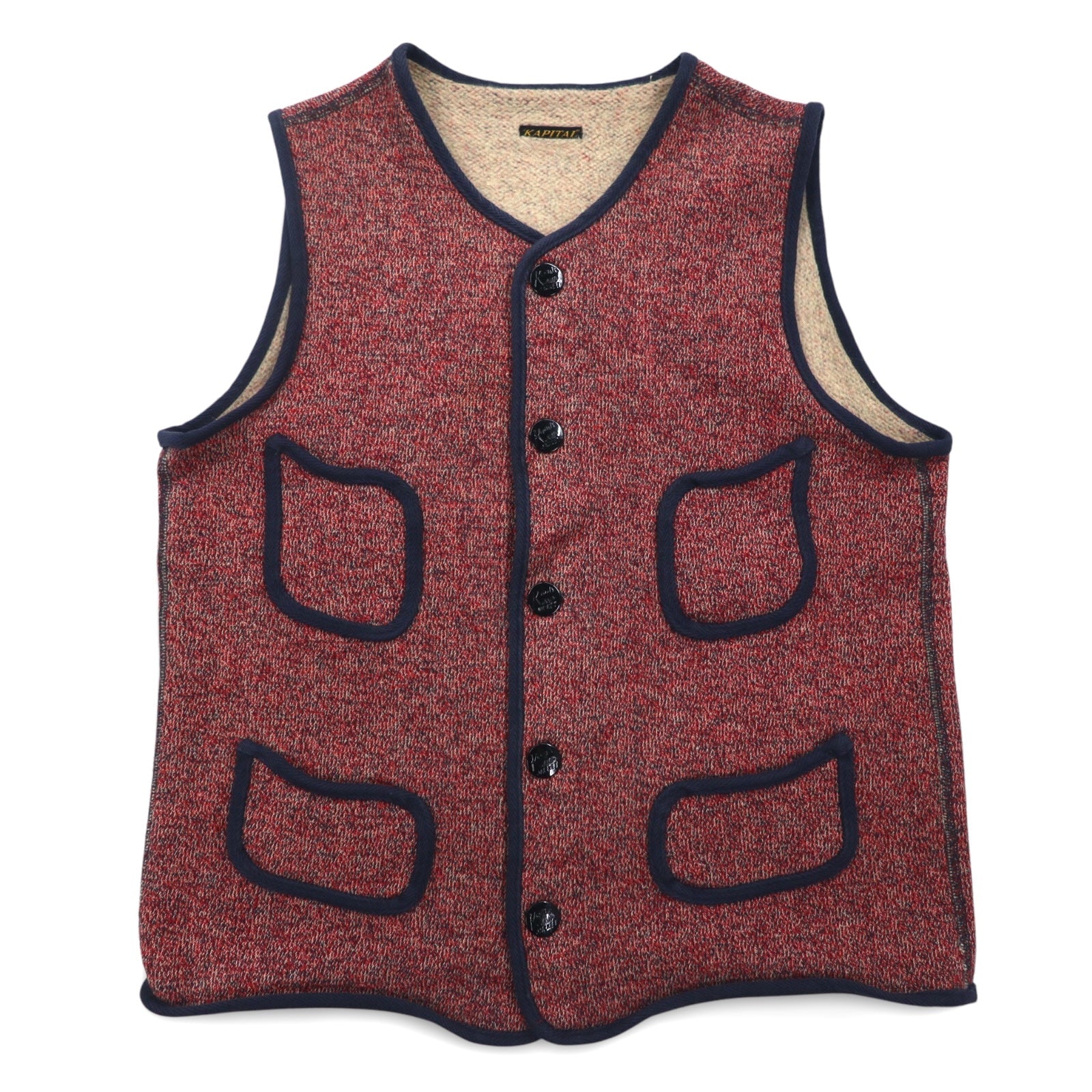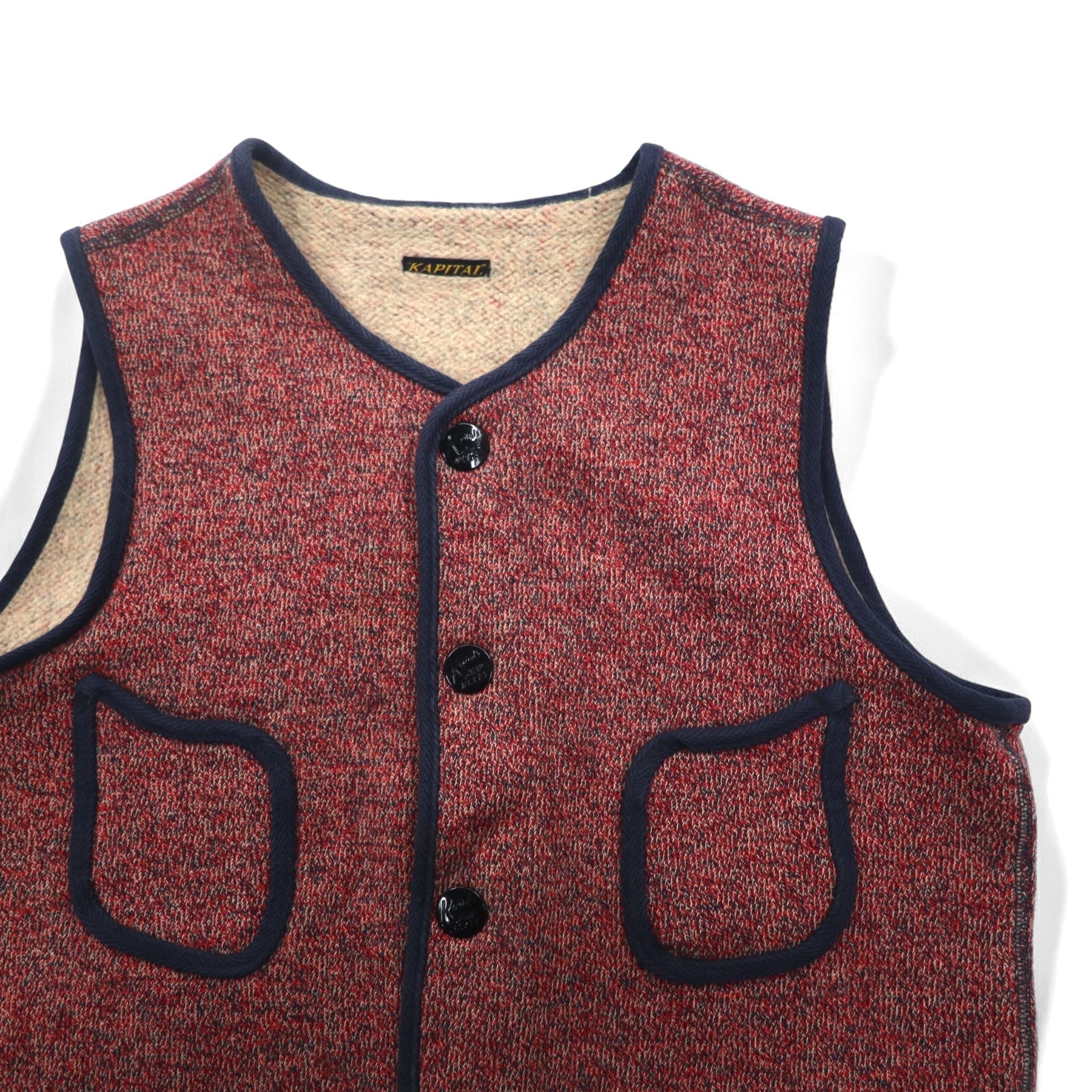 KAPITAL 裏毛 ビーチ クロス ベスト S レッド ネイビー パイピング スナップボタン 日本製