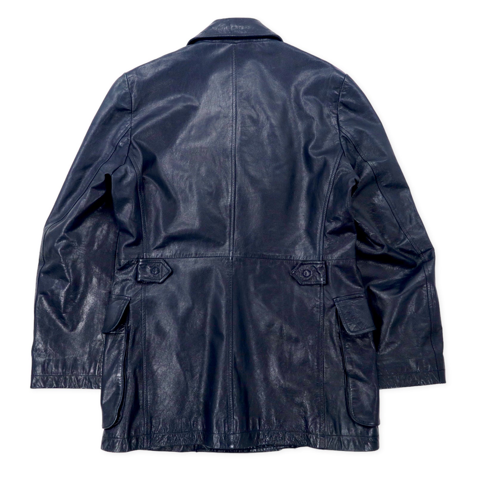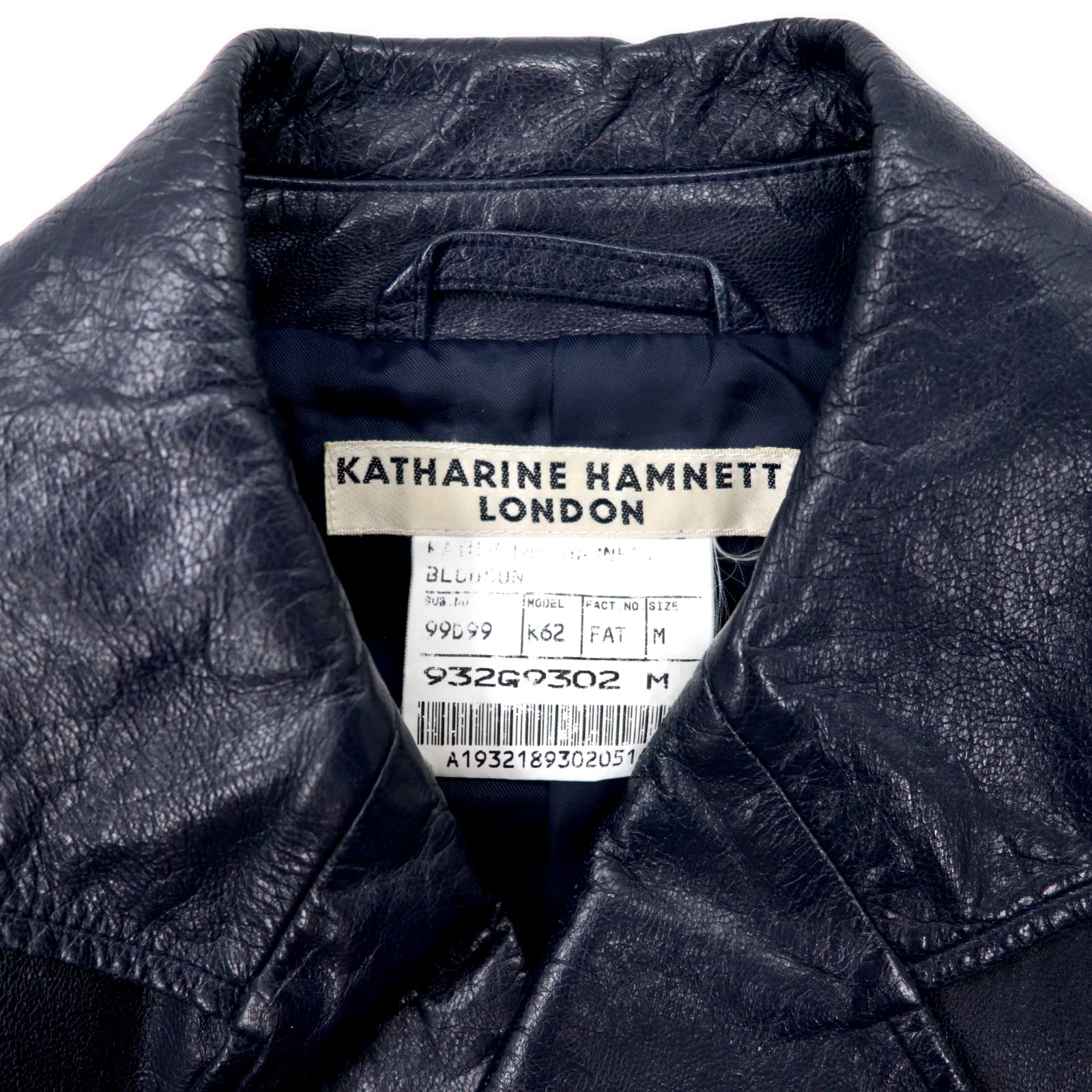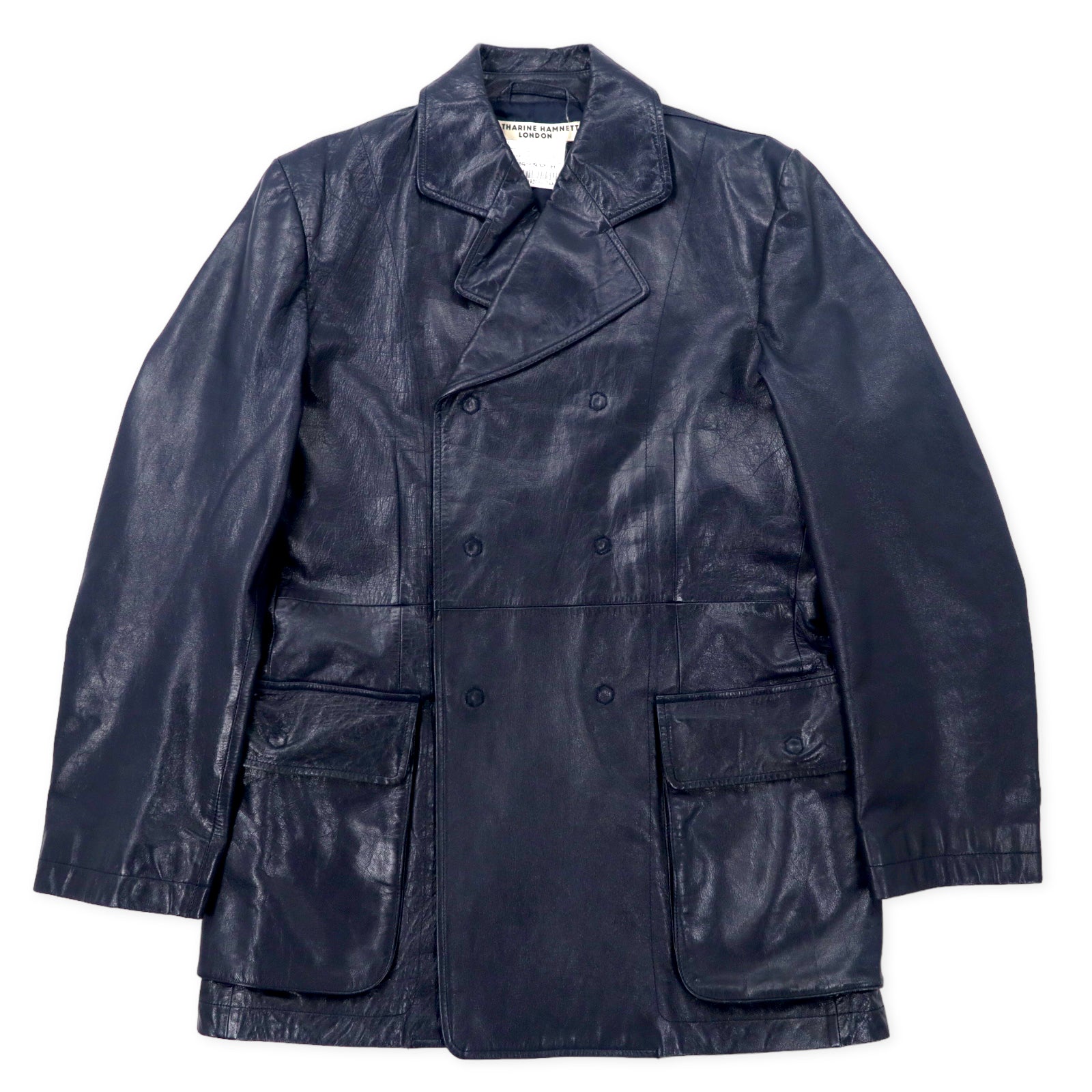 KATHARINE HAMNETT LONDON 90年代 ダブルブレスト レザーコート M ネイビー ゴートスキン 山羊革