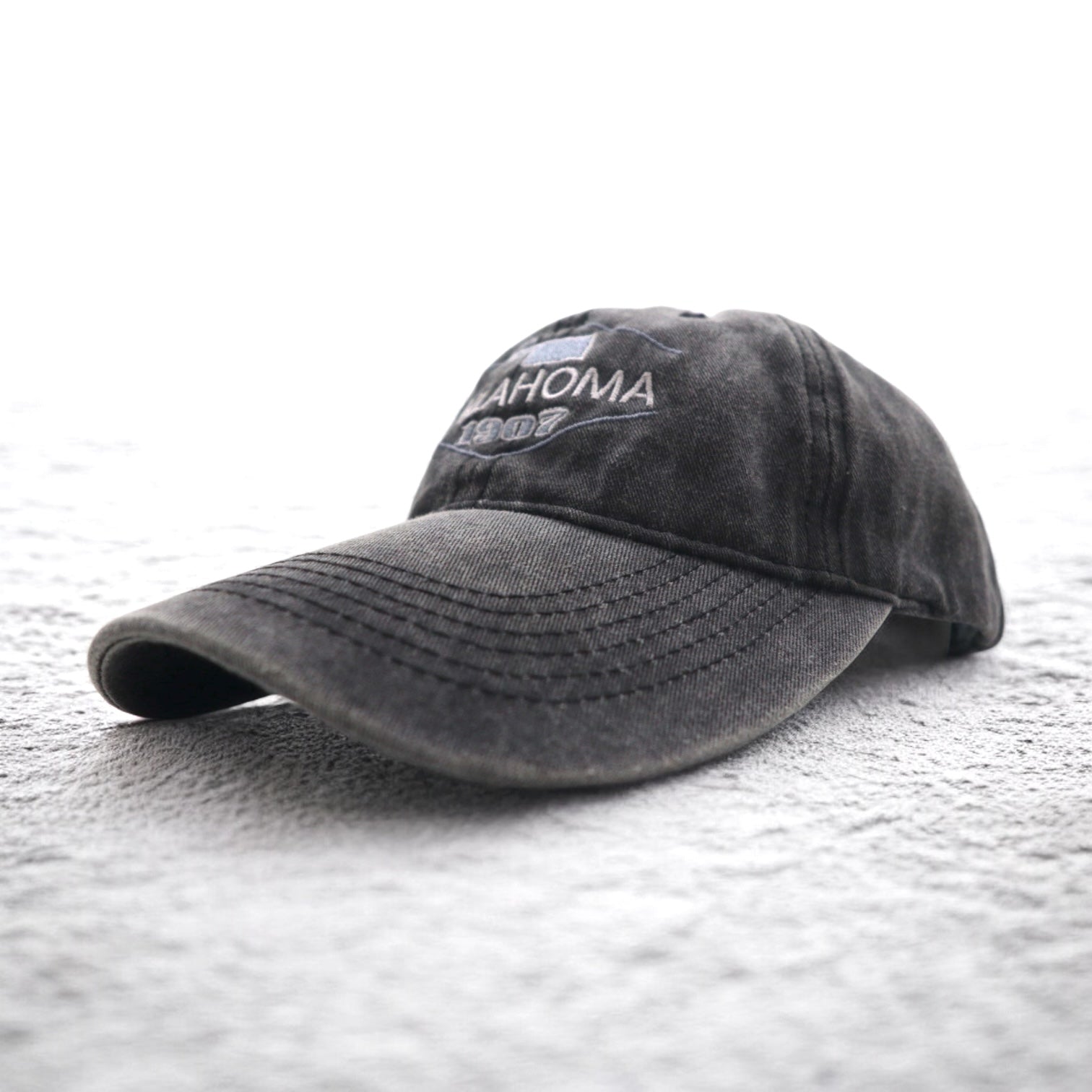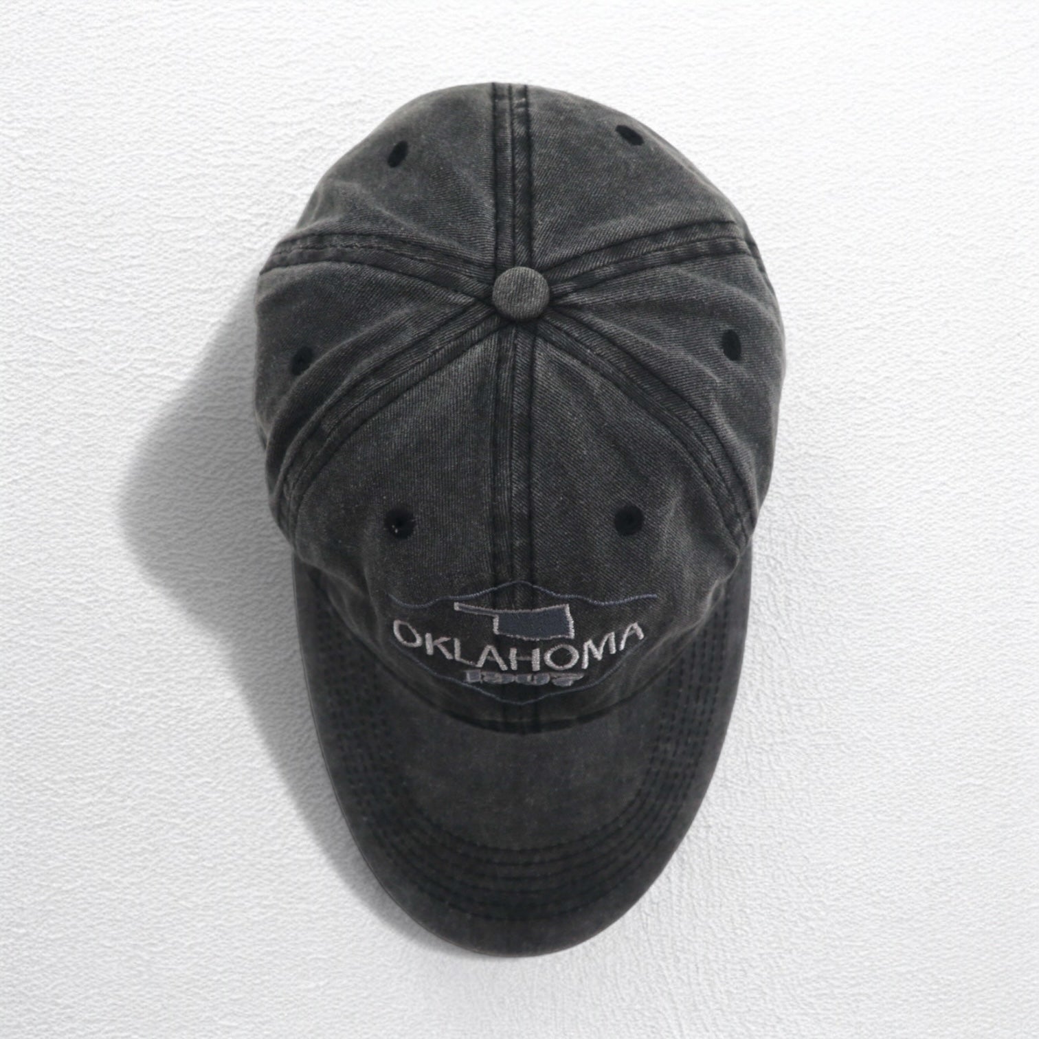 KAUFMAN ヴィンテージ加工 6パネルキャップ ONE グレー コットン OKLAHOMA 刺繍