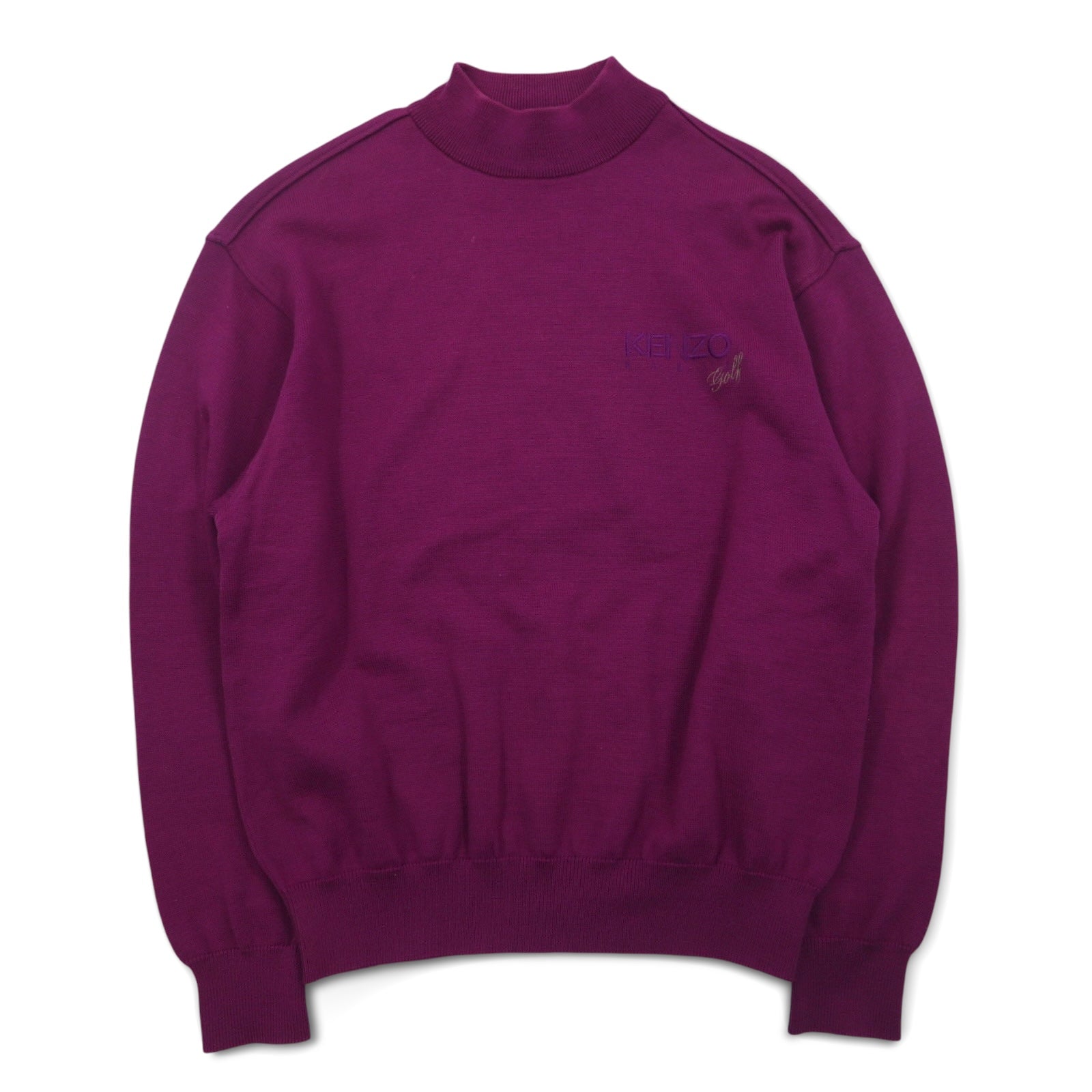 KENZO GOLF 90年代 モックネック ハイゲージニット セーター S パープル ウール ワンポイントロゴ刺繍 日本製