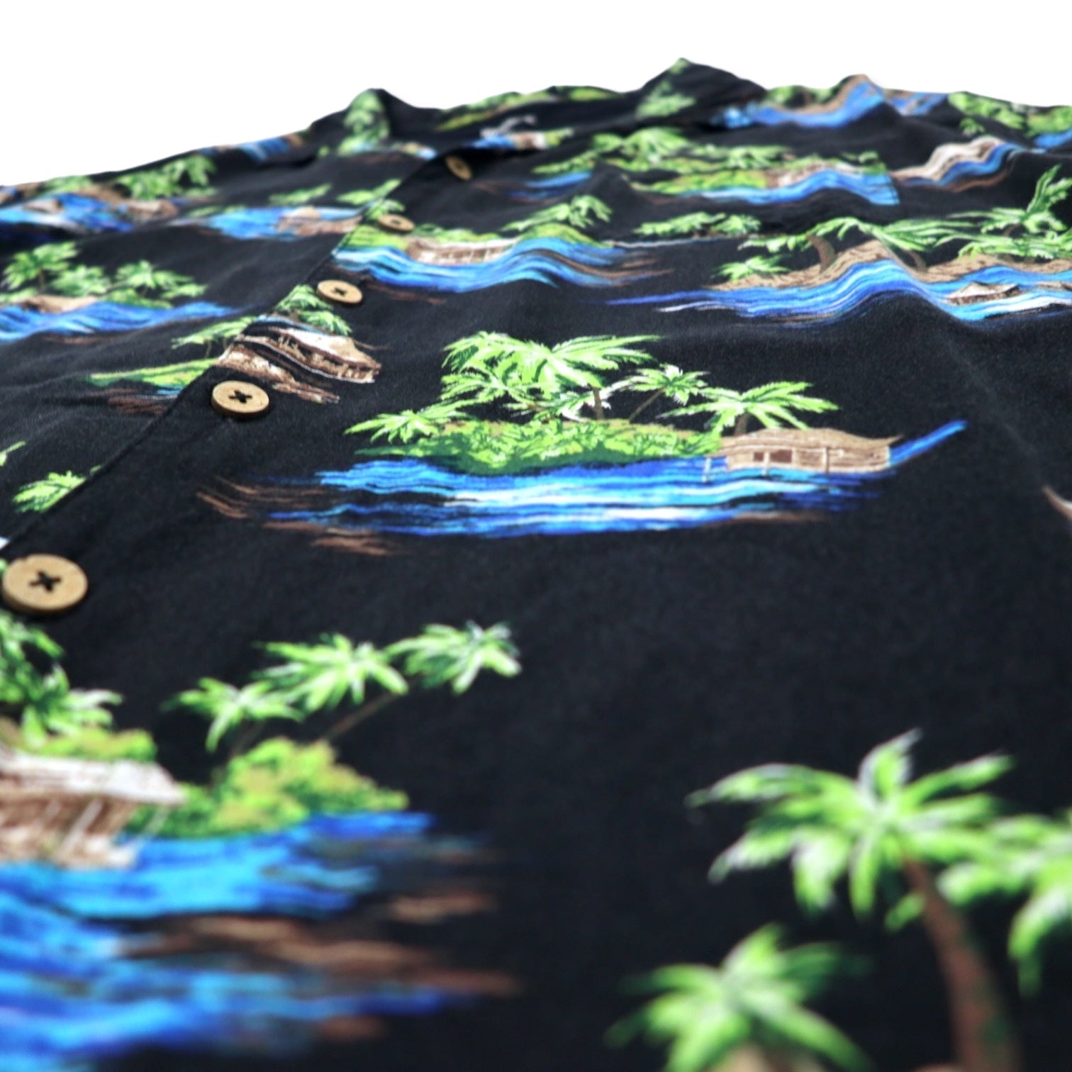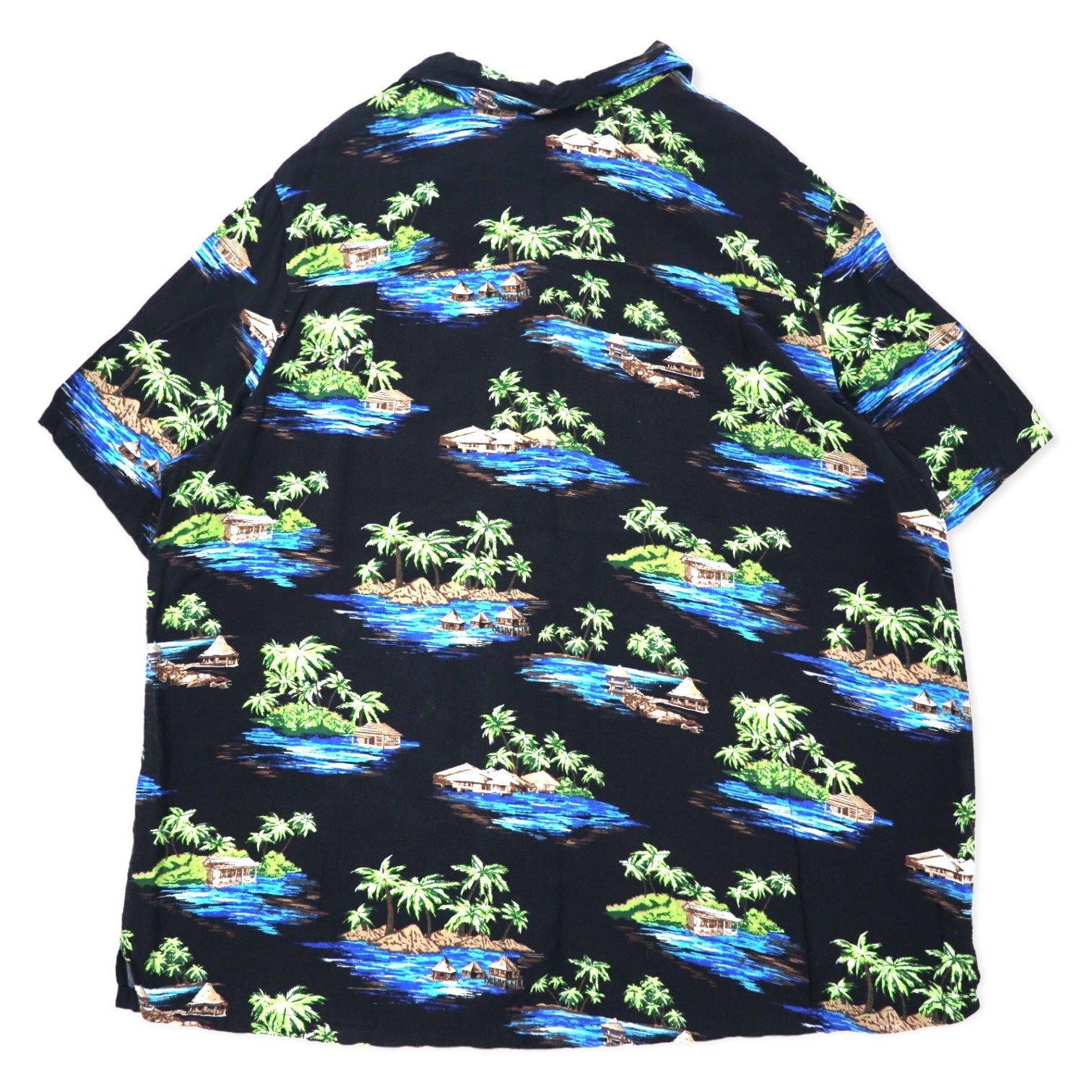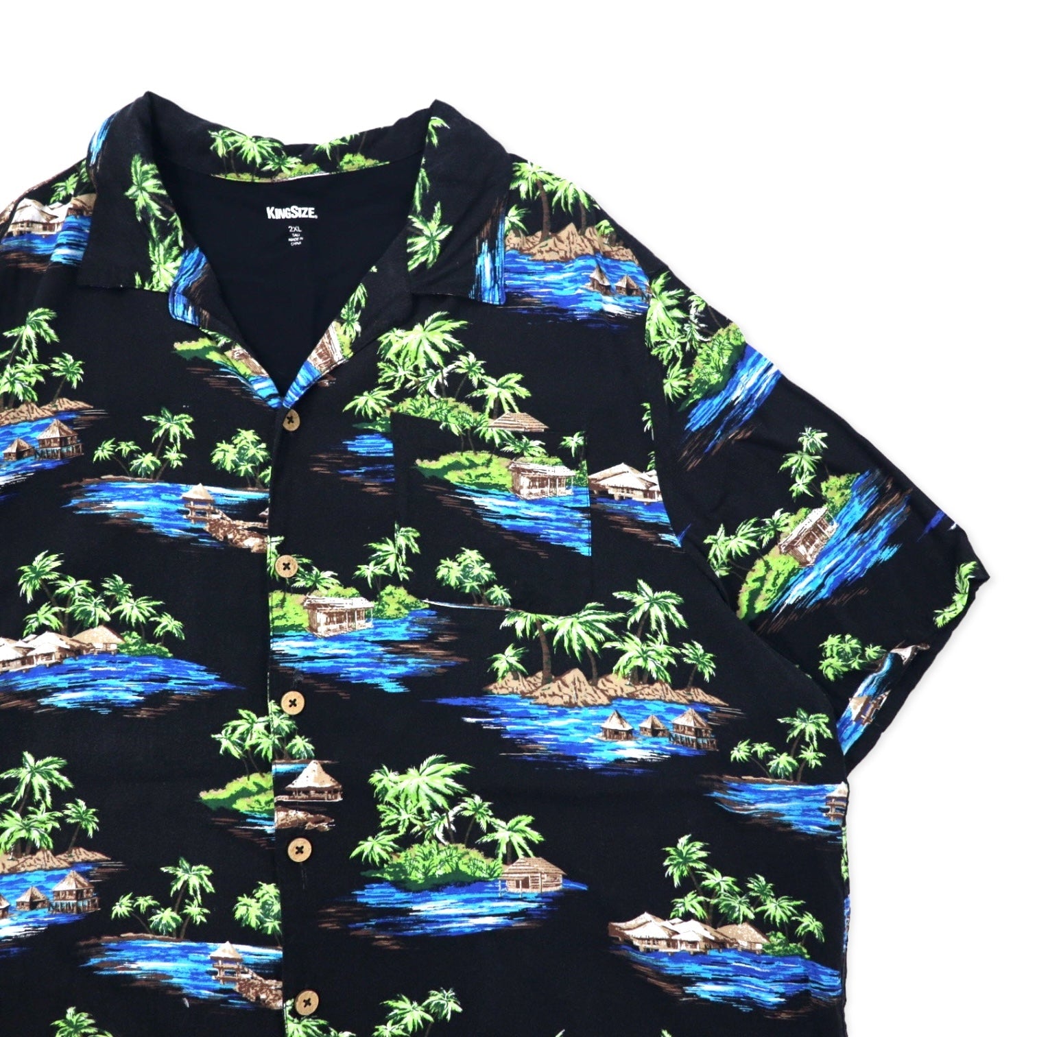 KING SIZE オープンカラー アロハシャツ 2XL ブラック レーヨン 総柄 ビーチ ビッグサイズ