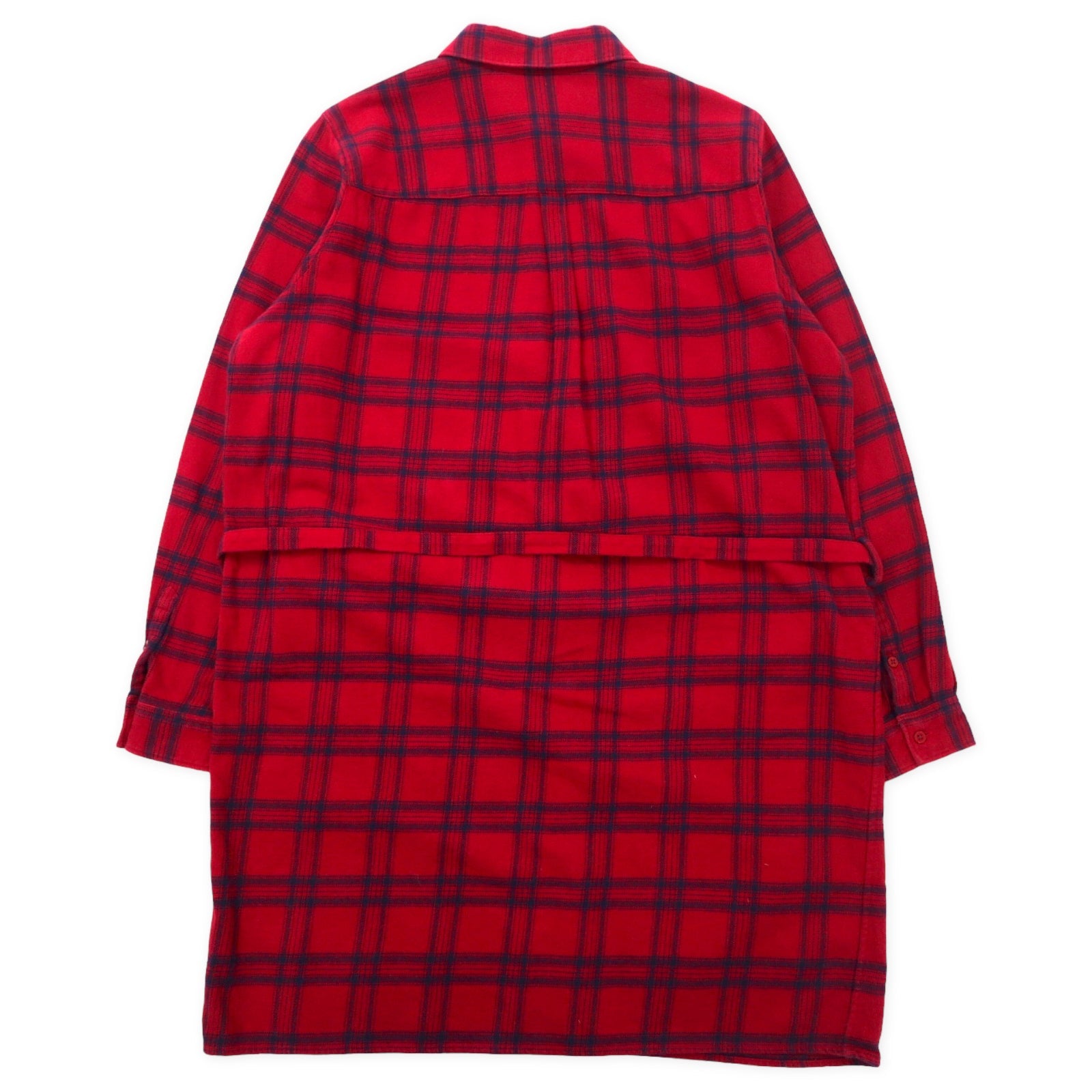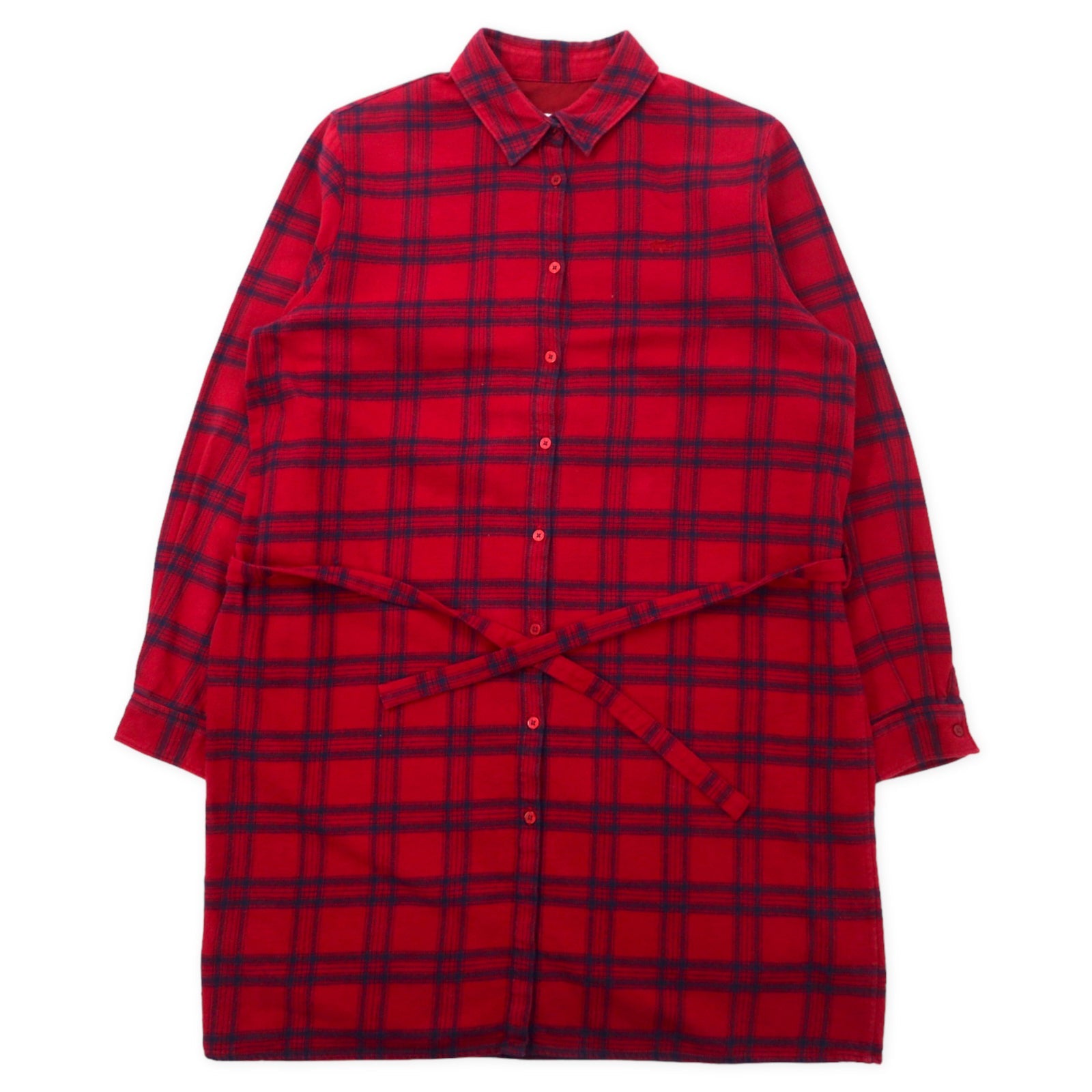 LACOSTE シャツワンピース ガウン 長袖チェックシャツドレス 40 レッド チェック コットン EF804E