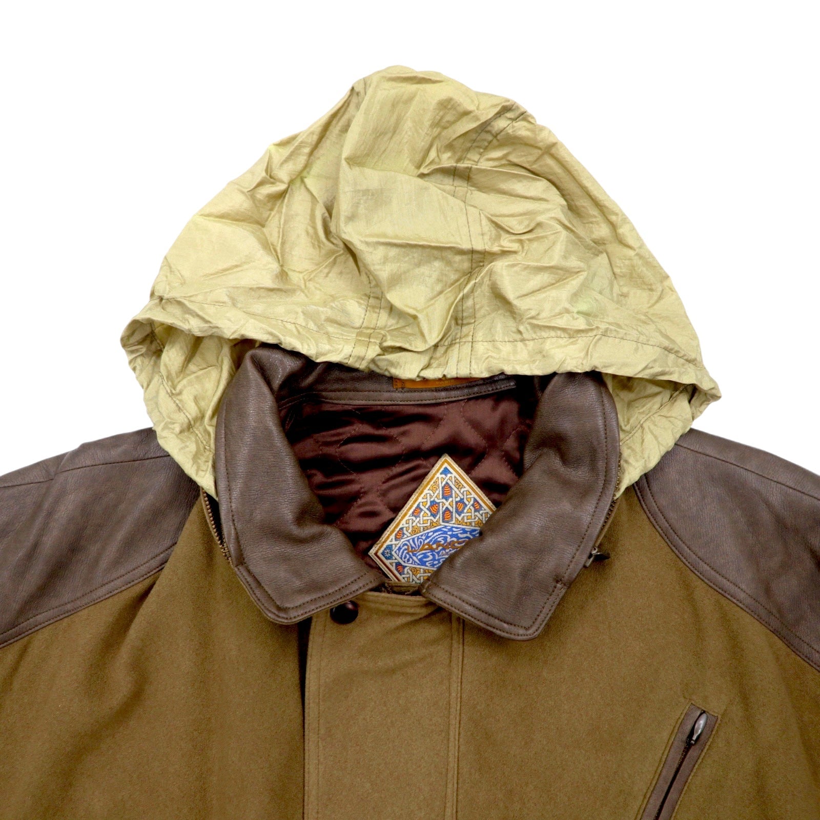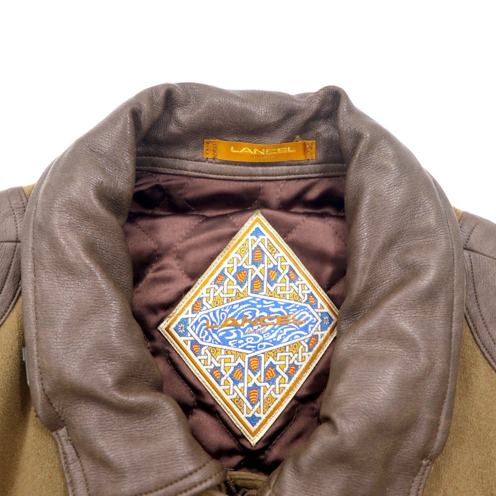 LANCEL オールド 異素材切替 フライトジャケット ボンバージャケット ブルゾン M ブラウン ポリエステル フード収納式 日本製