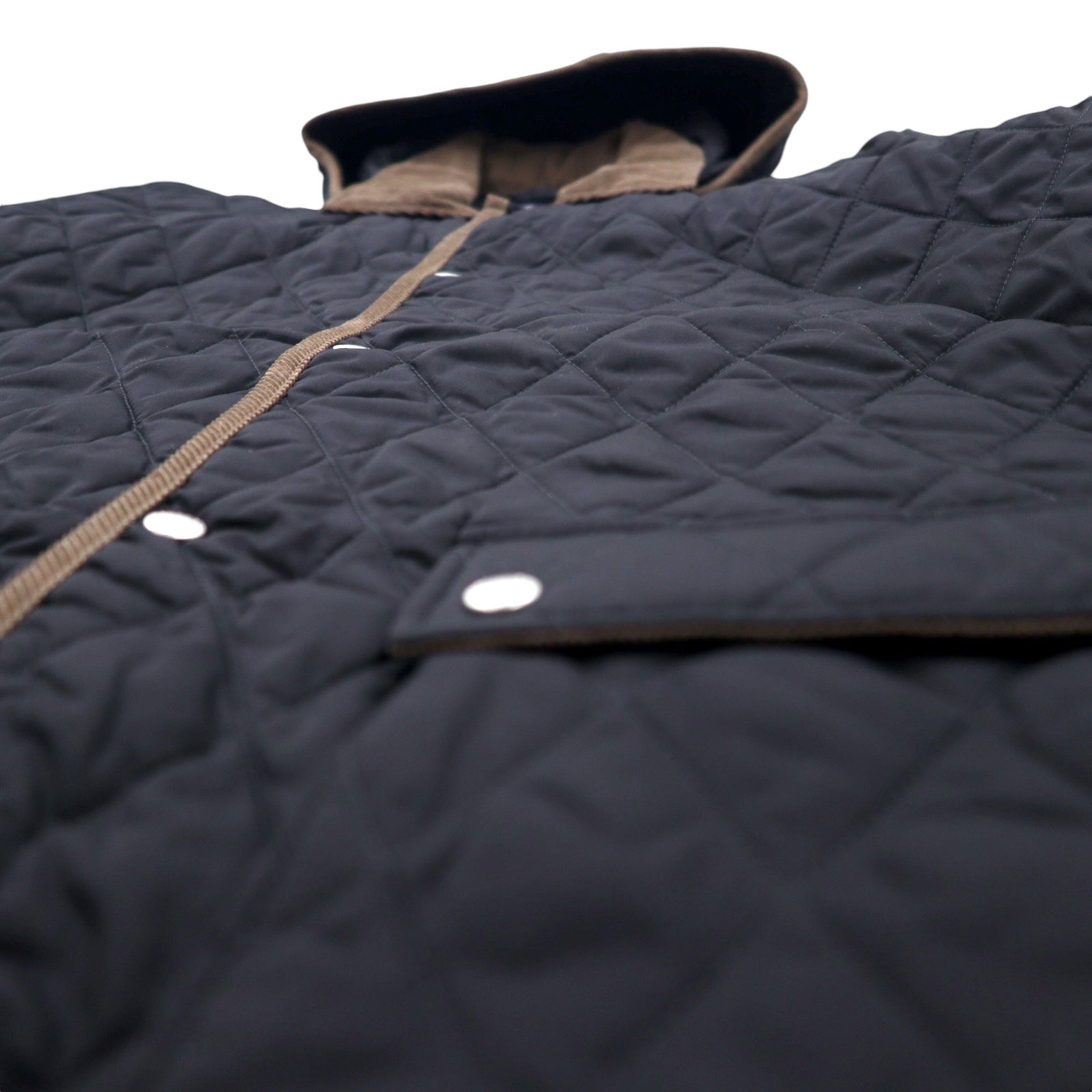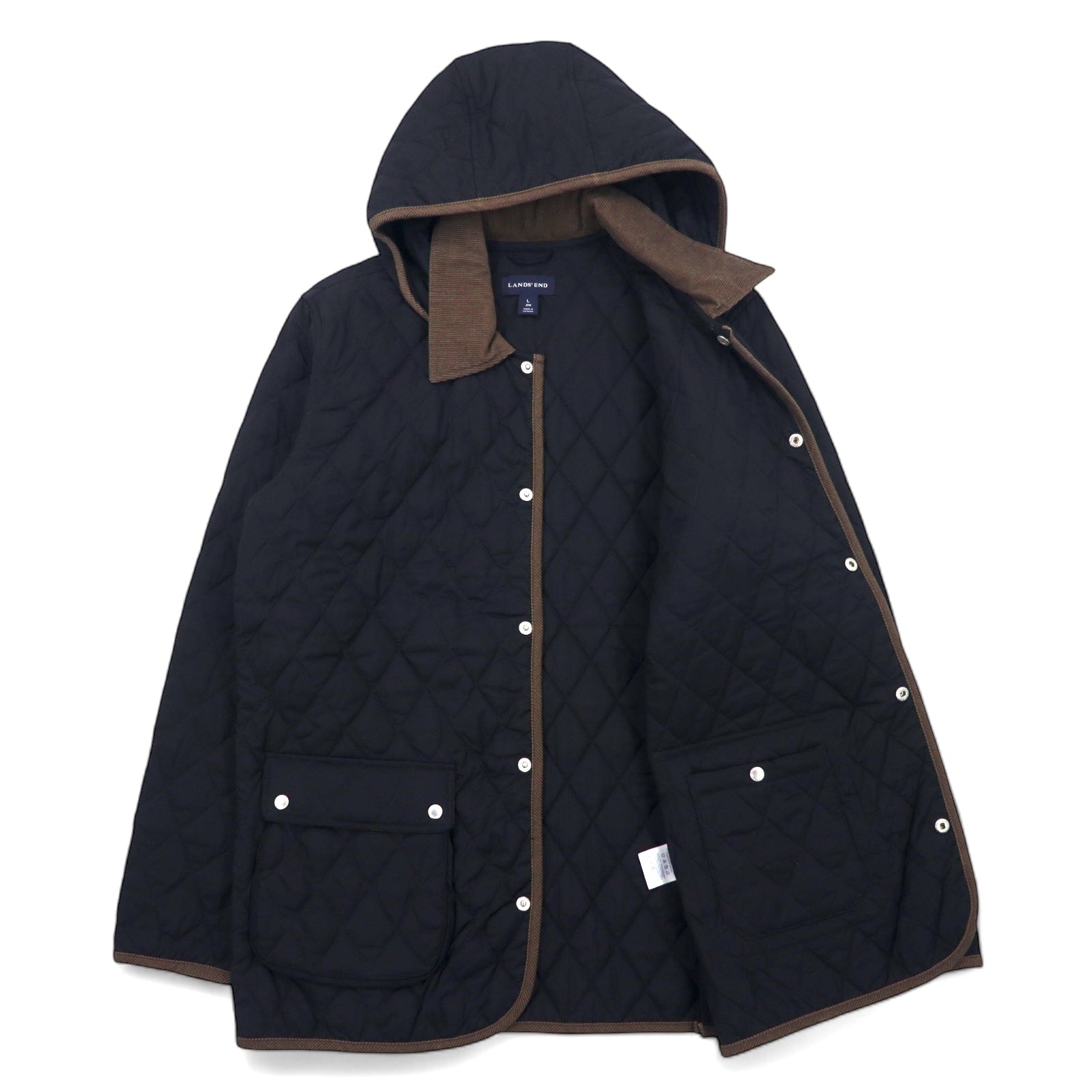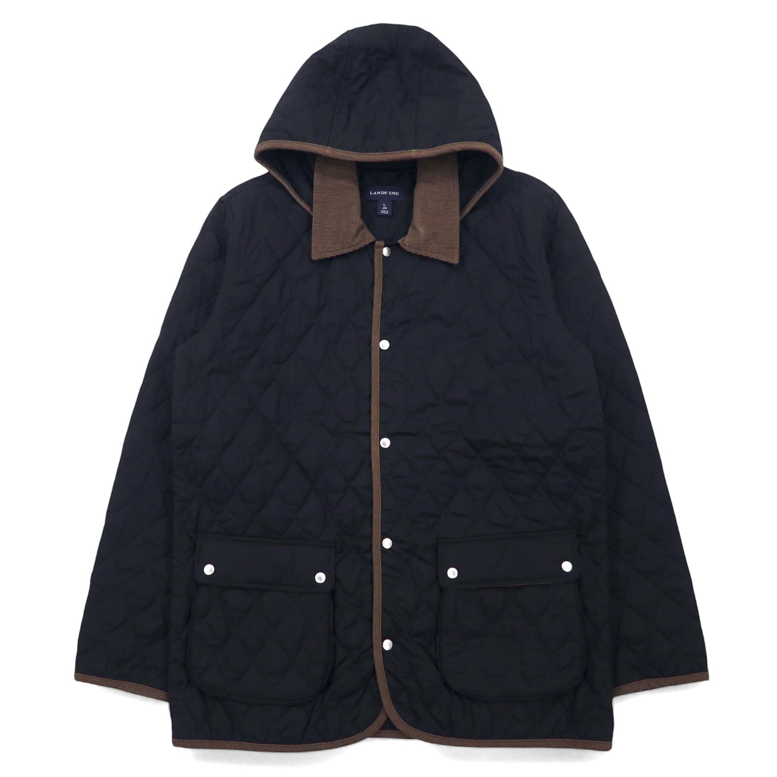 LANDS' END キルティングジャケット L ブラック ポリエステル フード着脱式 襟コーデュロイ