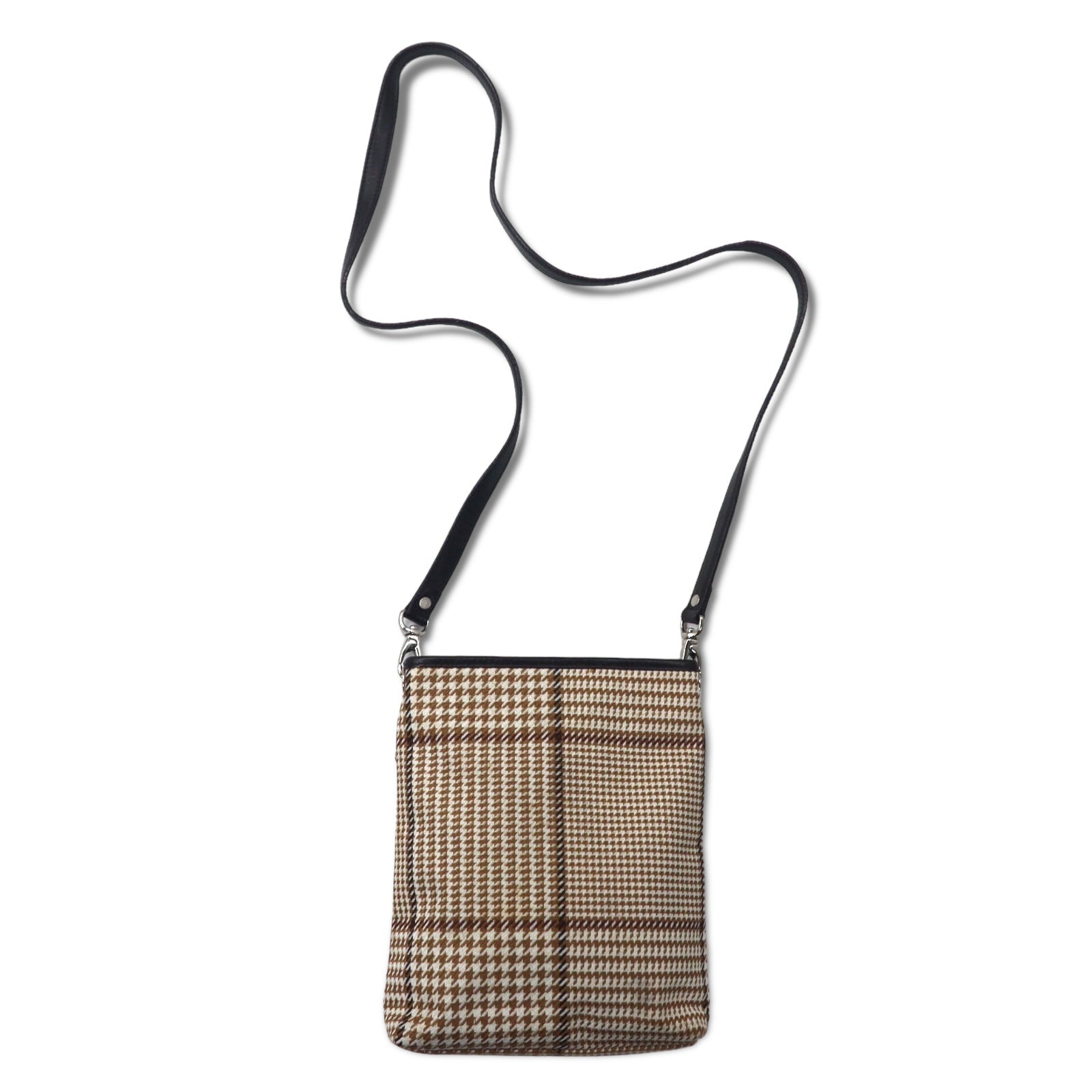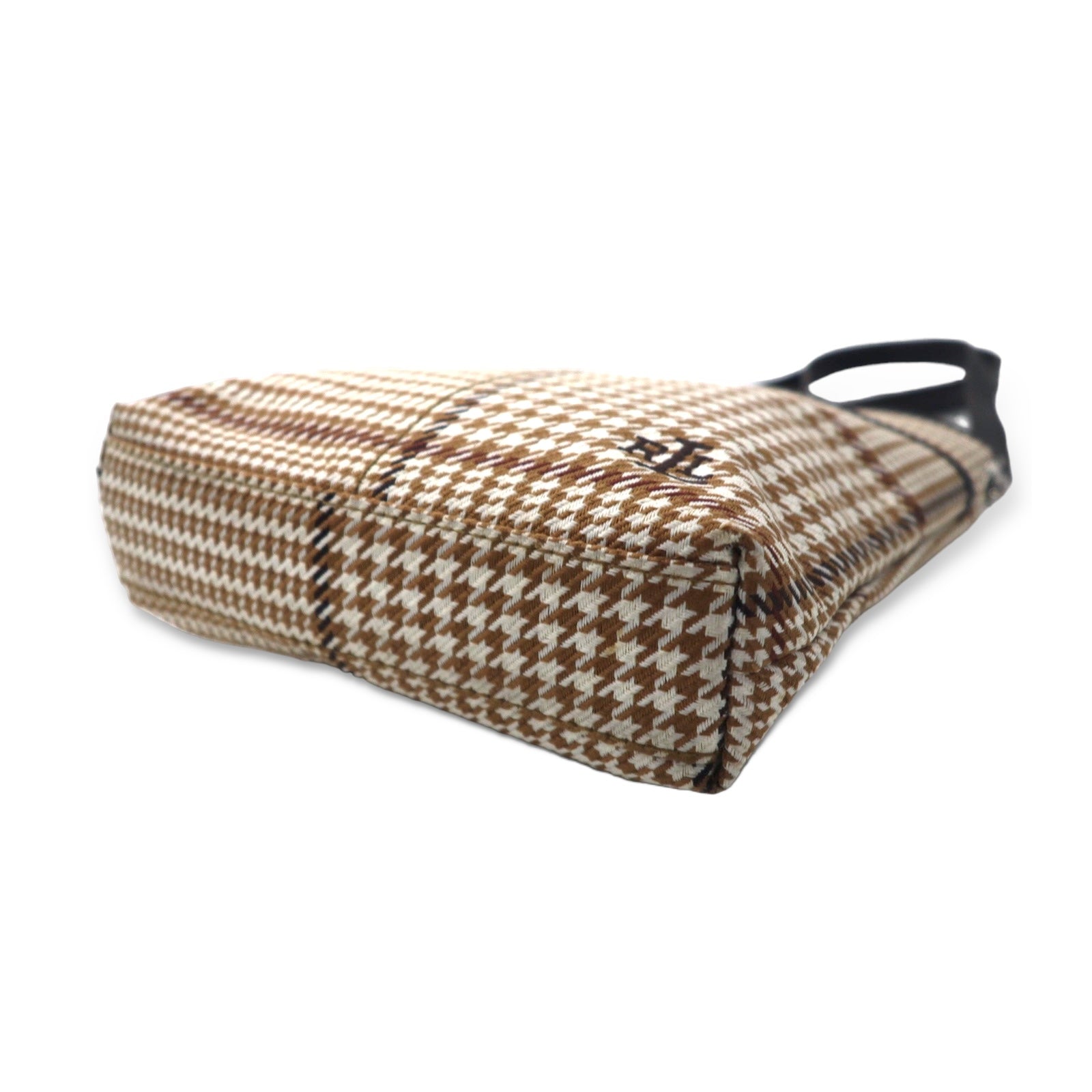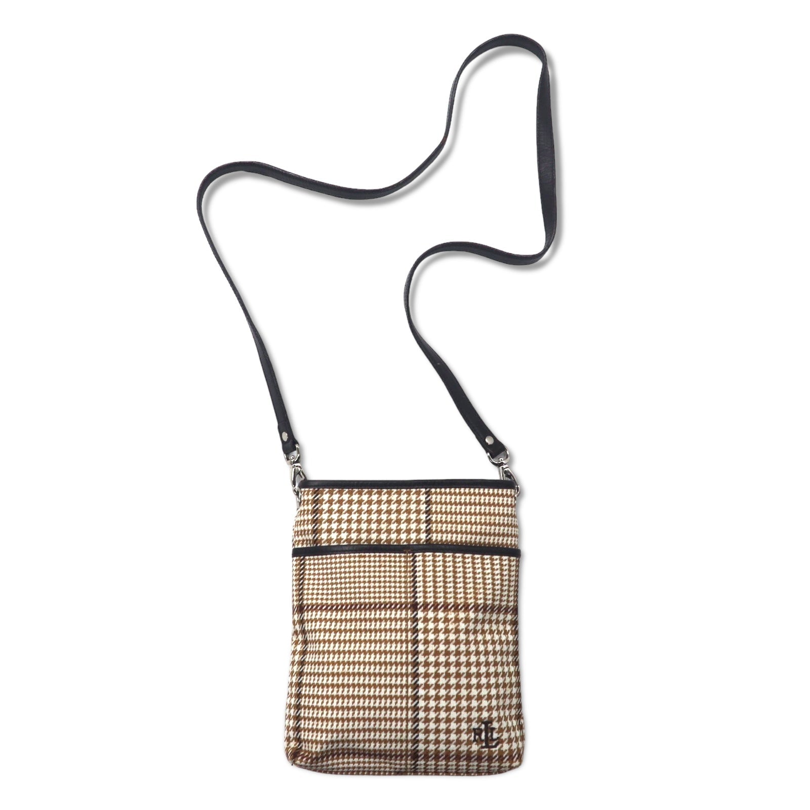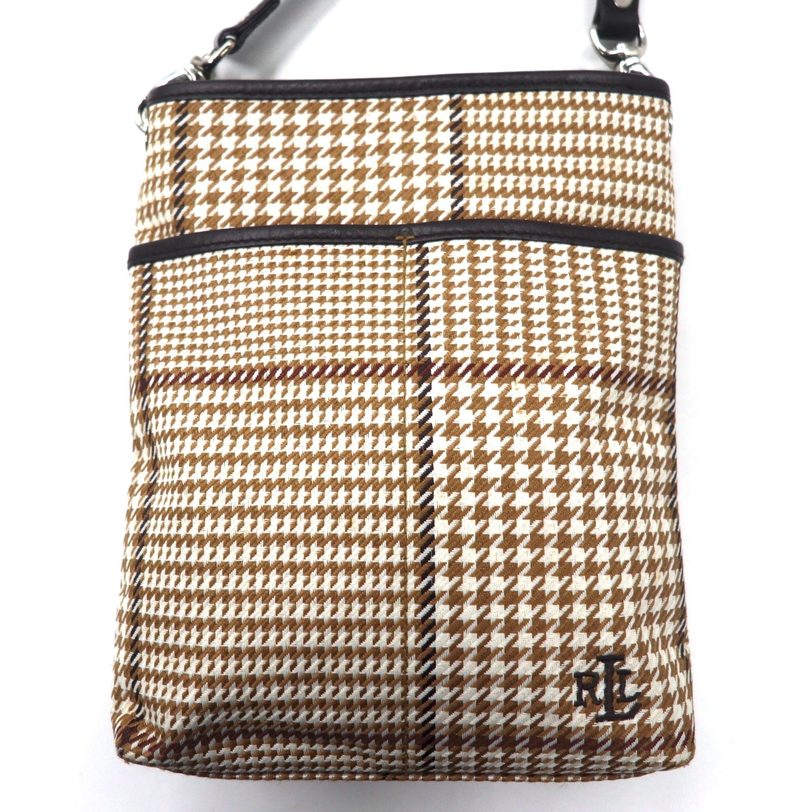 LAUREN RALPH LAUREN ガンクラブチェック ショルダーバッグ ポシェット ベージュ ナイロンキャンバス レザー切り替え ワンポイントロゴ