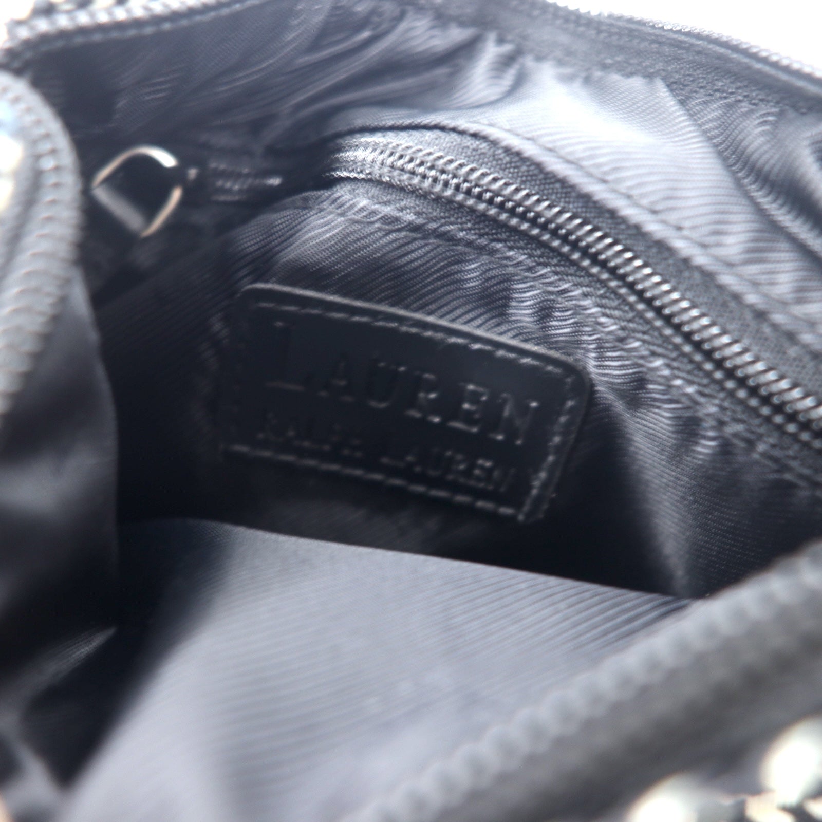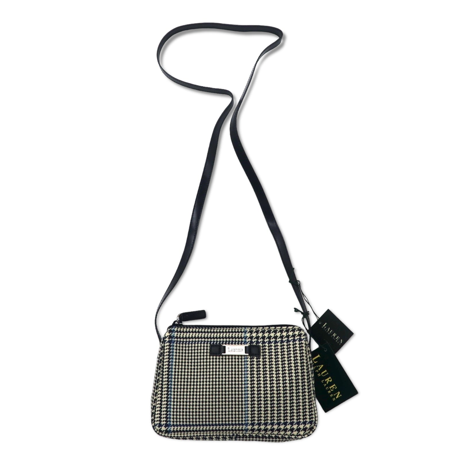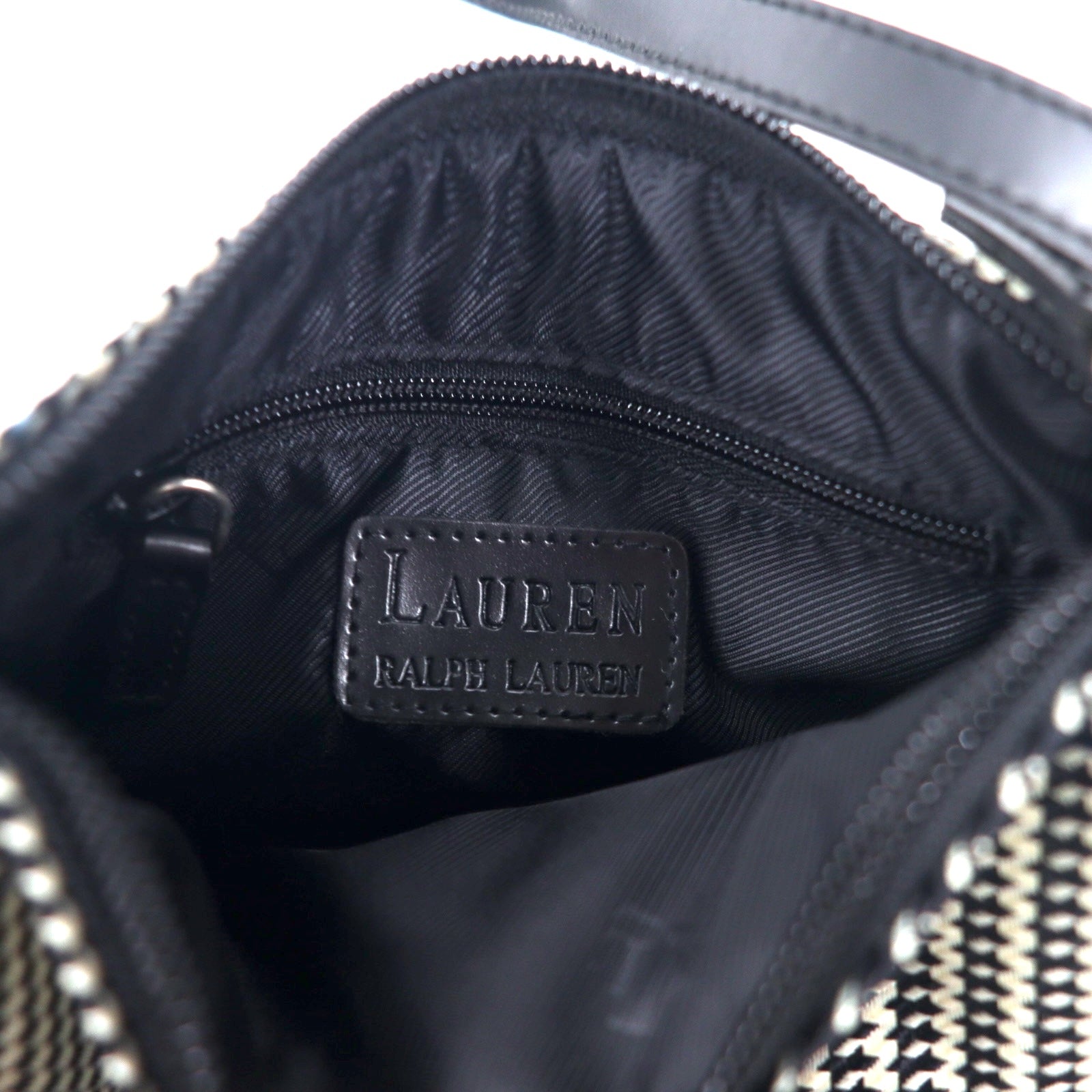 LAUREN RALPH LAUREN ガンクラブチェック ショルダーバッグ ポシェット ホワイト ナイロンキャンバス レザー ロゴプレート 未使用品