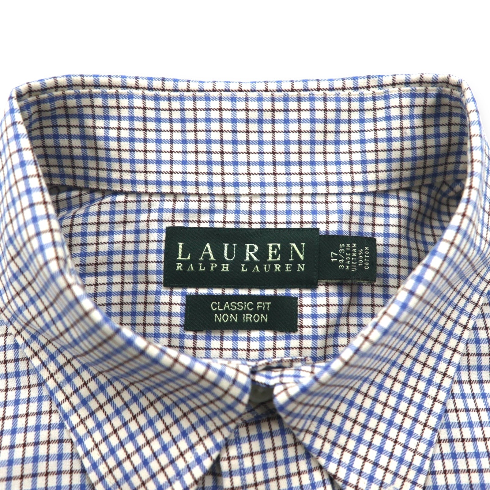 LAUREN RALPH LAUREN ボタンダウンシャツ XL ブルー コットン チェック CLASSIC FIT NON IRON