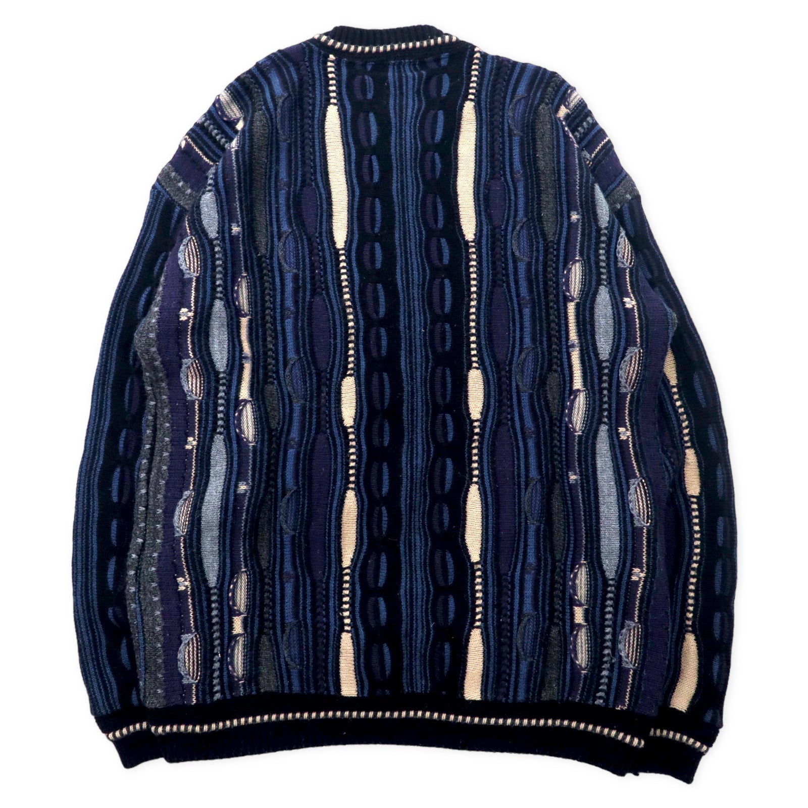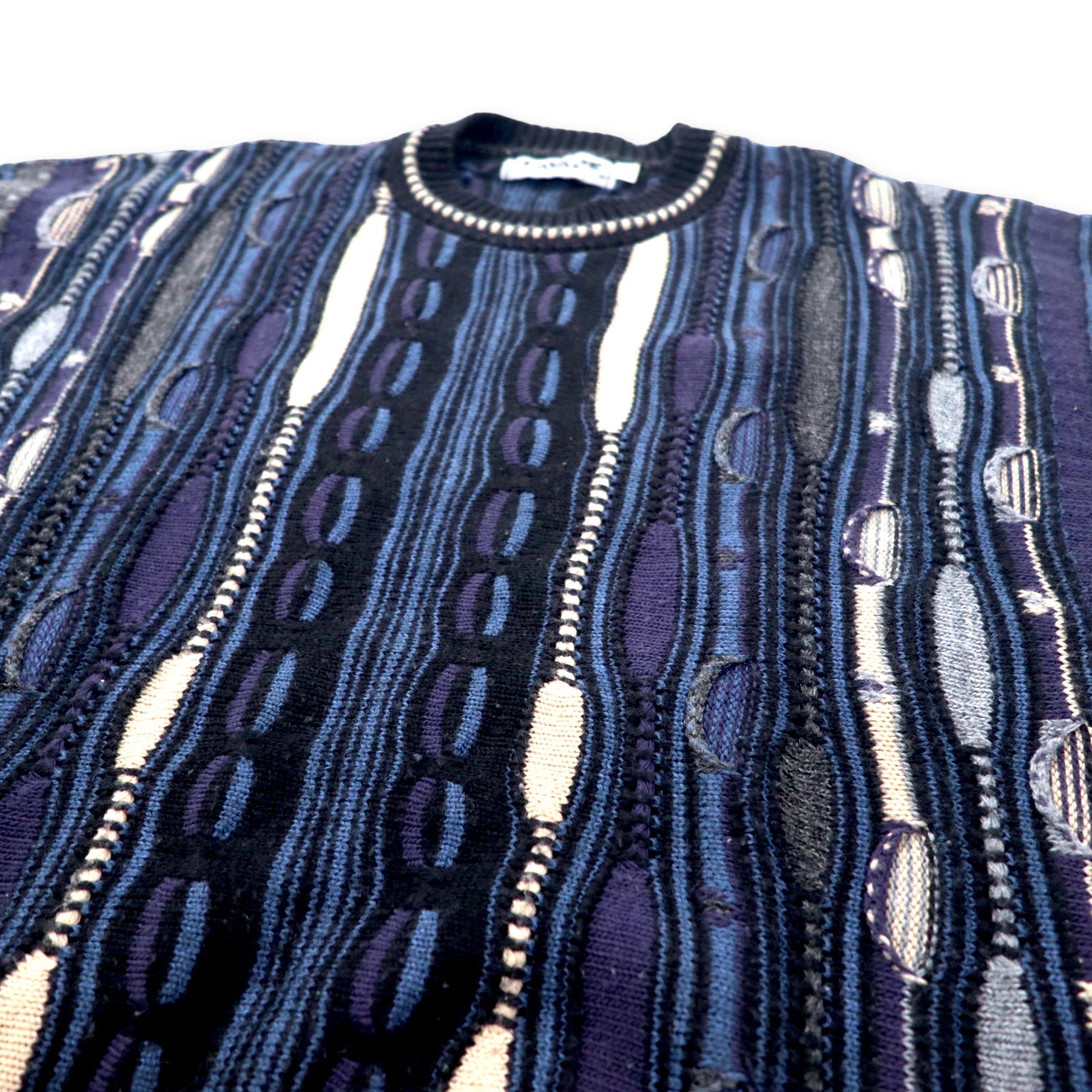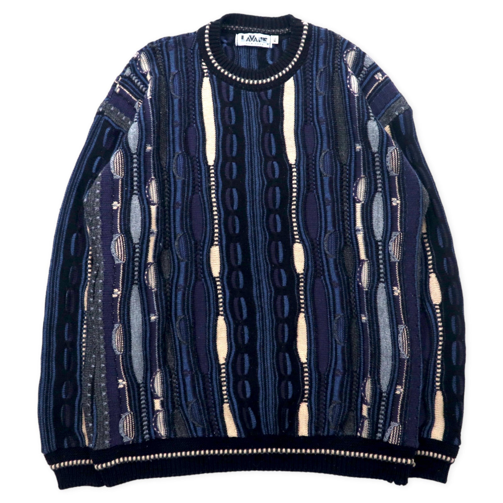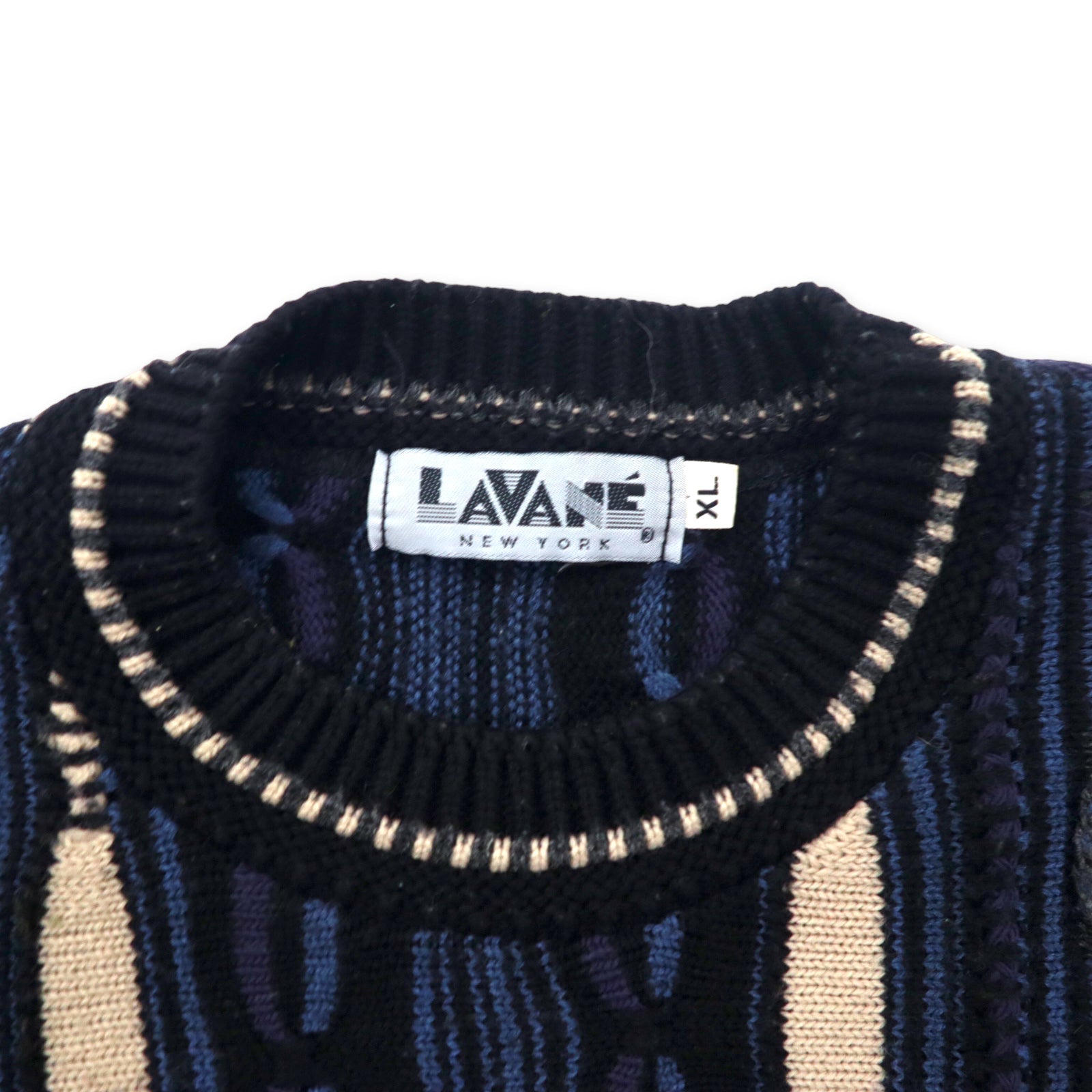 LAVANE USA製 90年代 3Dニット セーター XL ブラック アクリル 総柄 ビッグサイズ