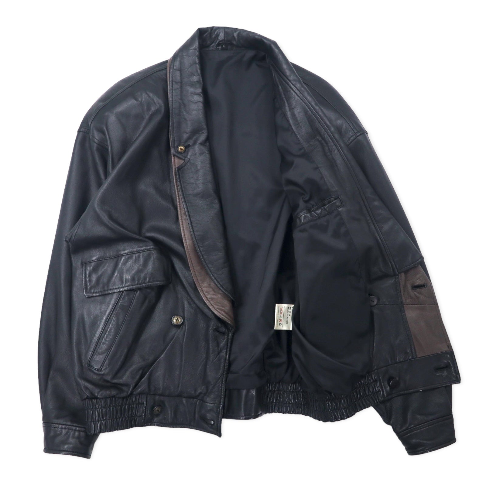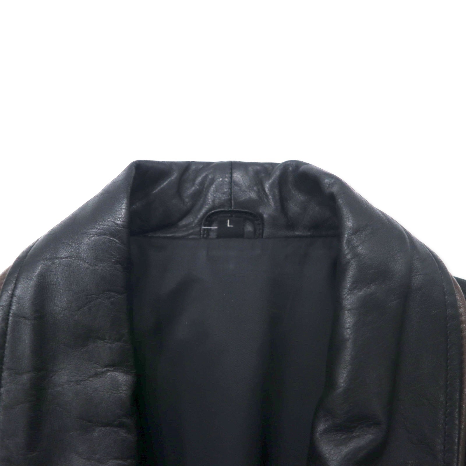 Layered Shawl Collar Leather Jacket レイヤードデザイン ダブル レザージャケット L ブラック 羊革